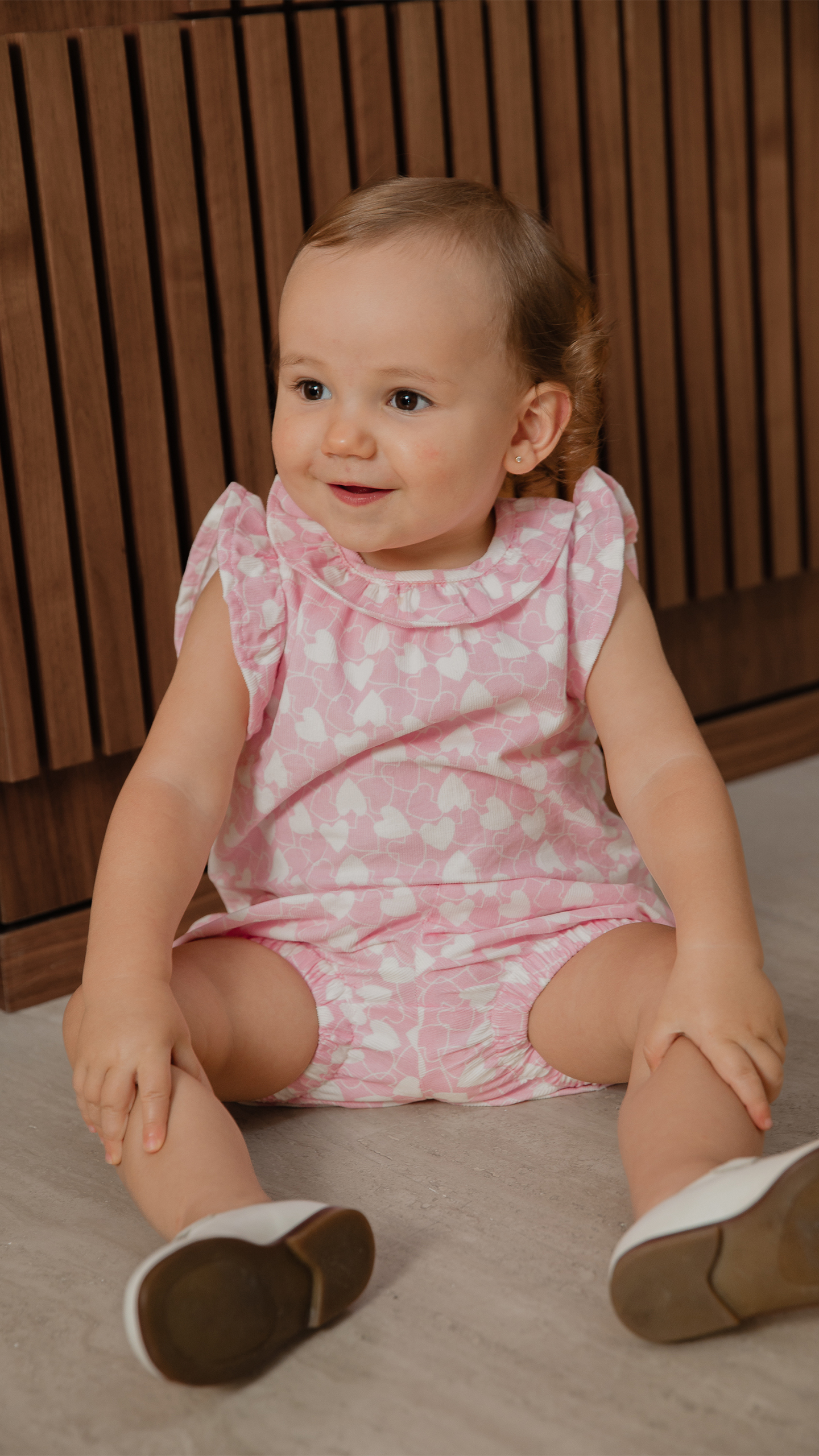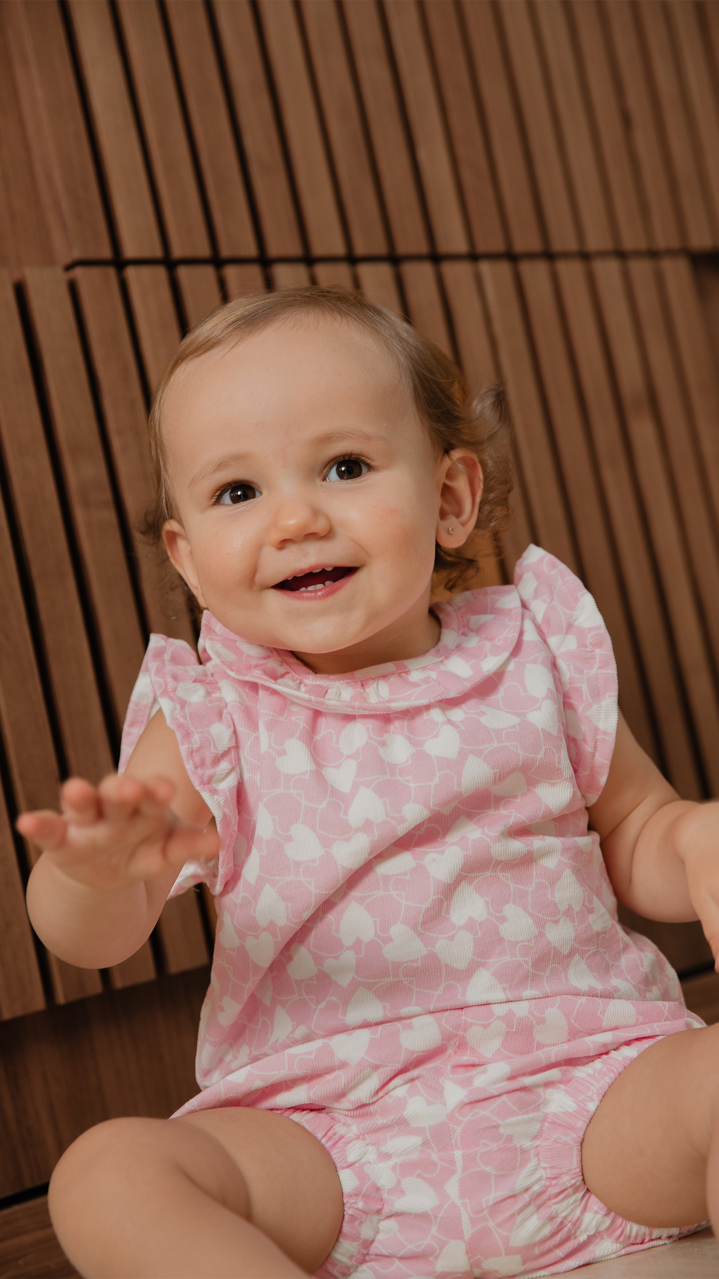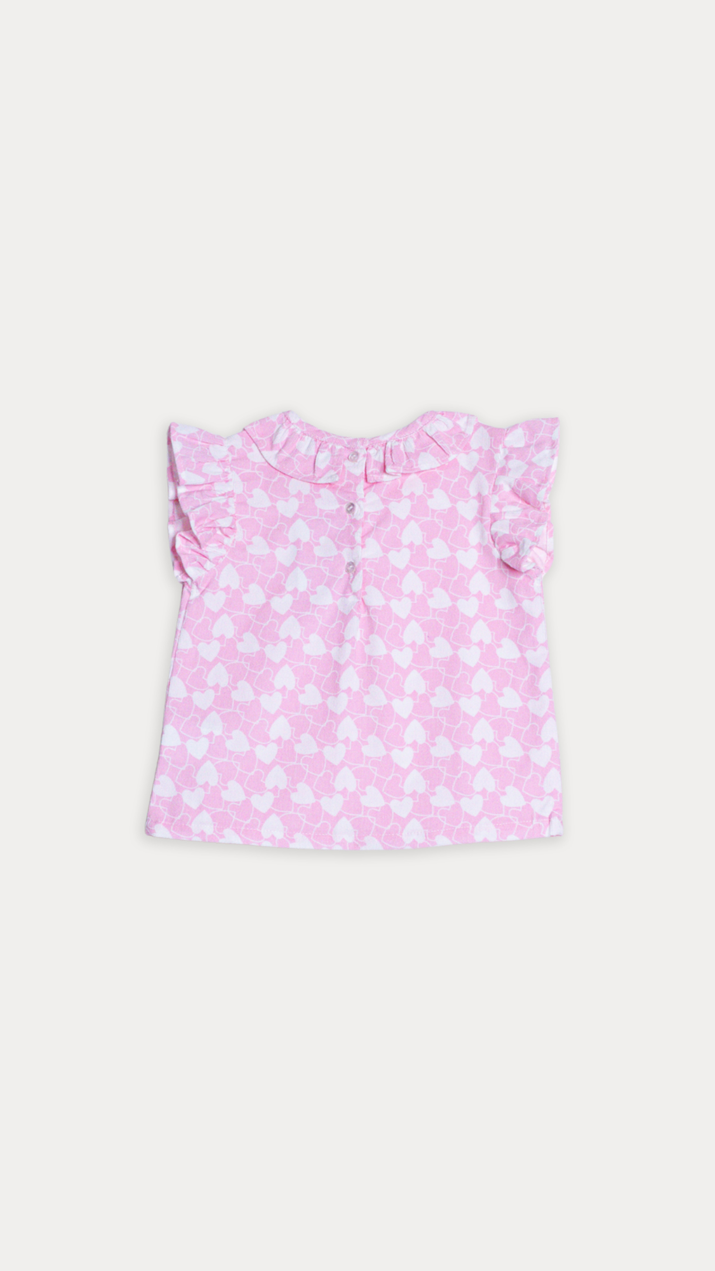 BLUSA DE CORDUROY ROSADA CON ESTAMPADO DE CORAZONES BLANCOS PARA BEBE NIÑA
