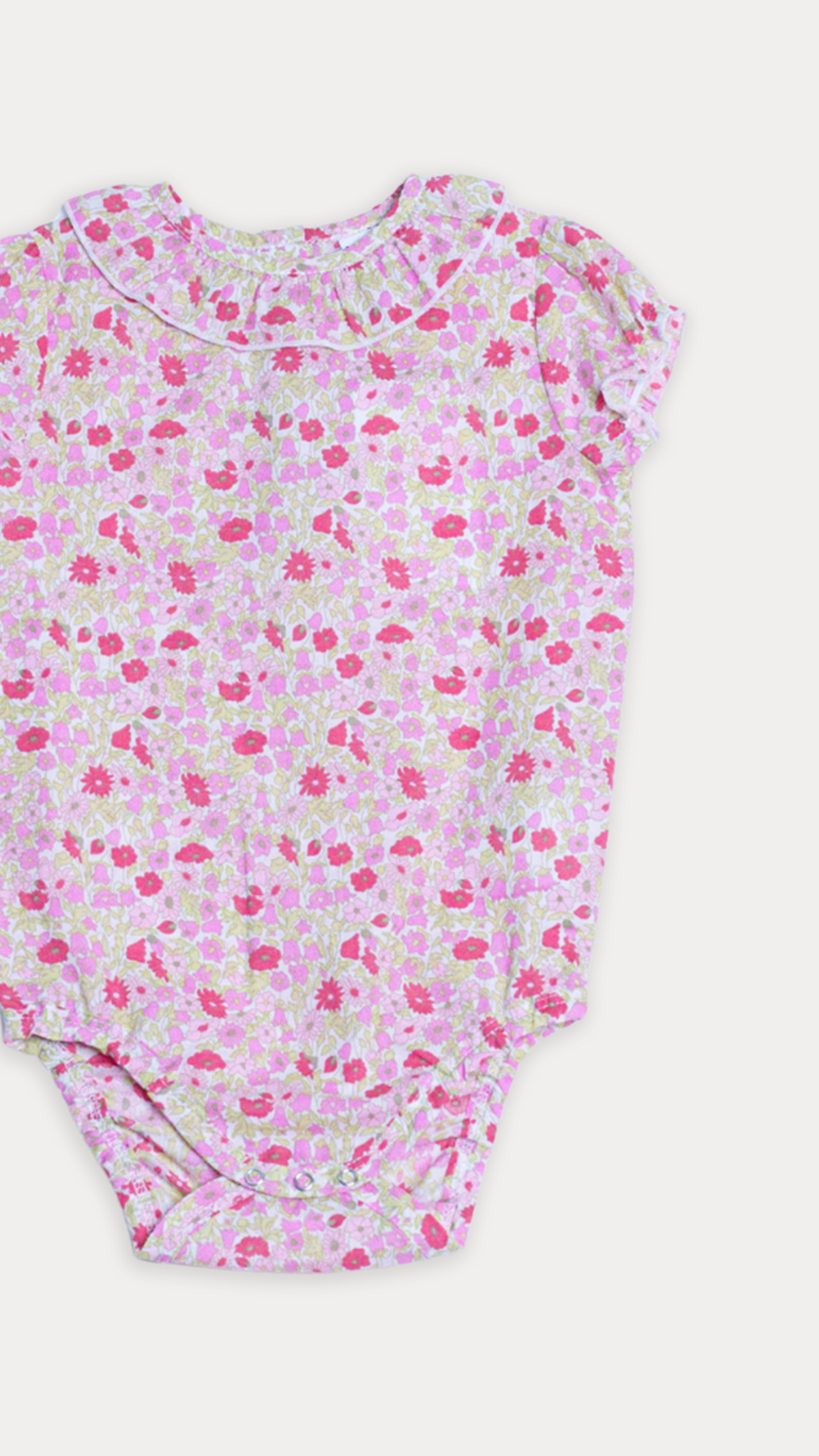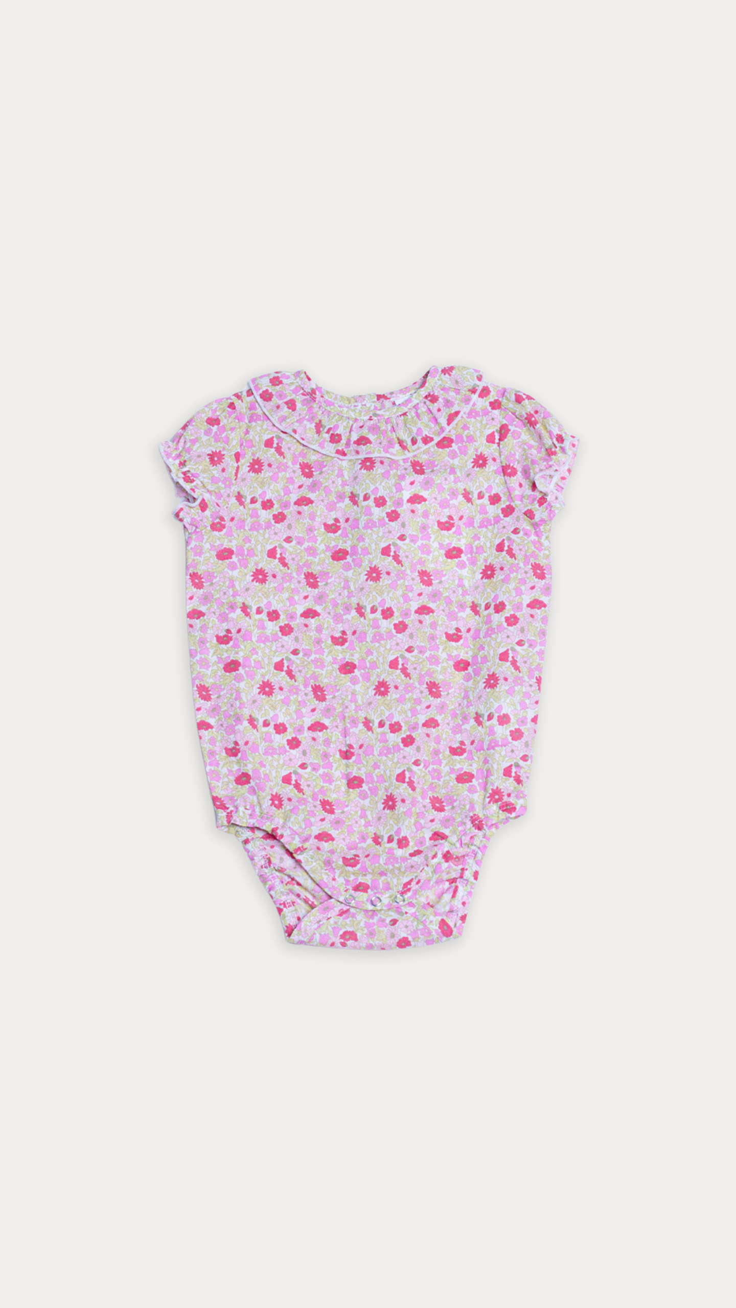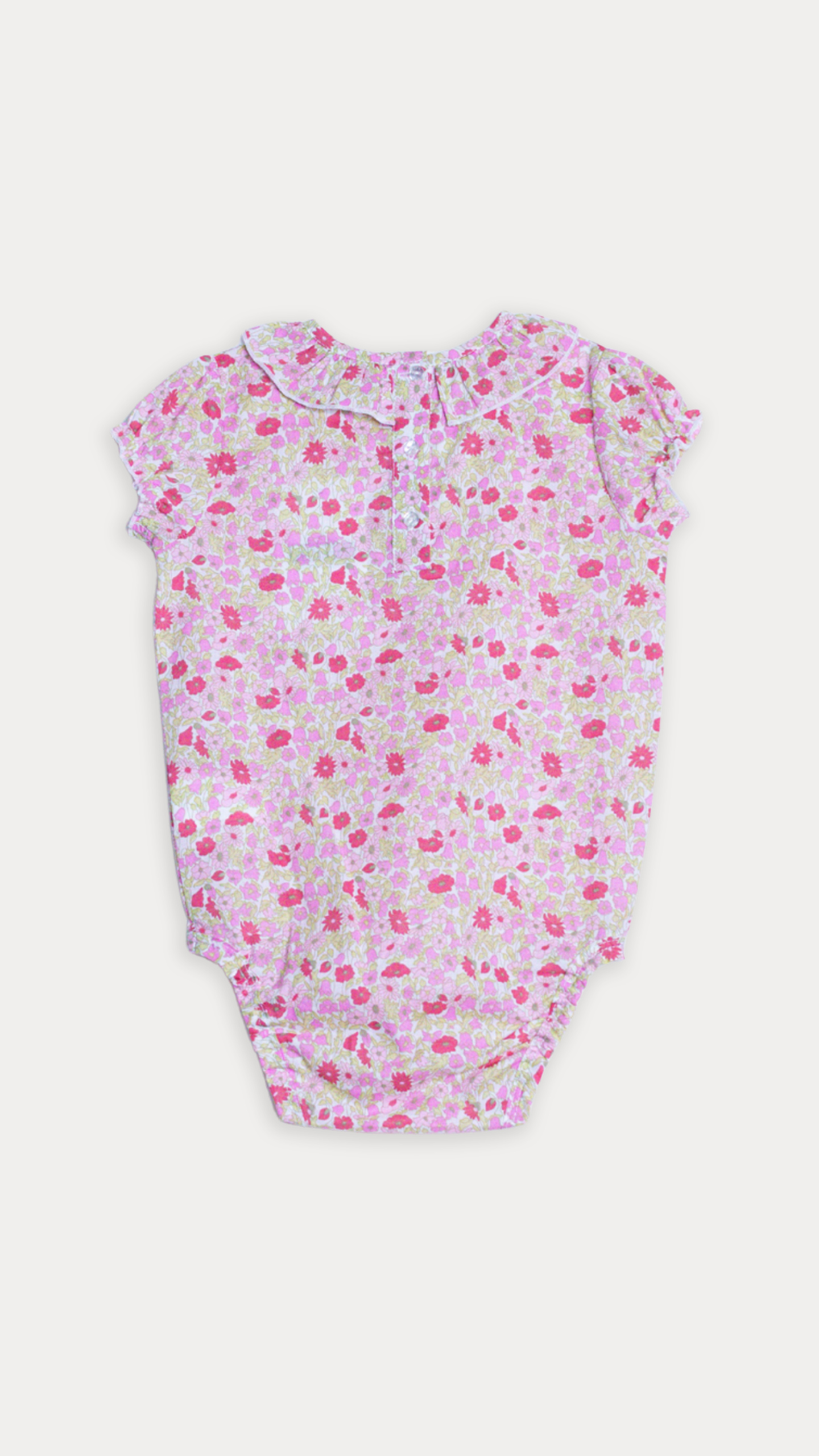 BODY DE POPELINA LIGERA CON ESTAMPADO DE FLORES ROSADAS PARA BEBE NIÑA
