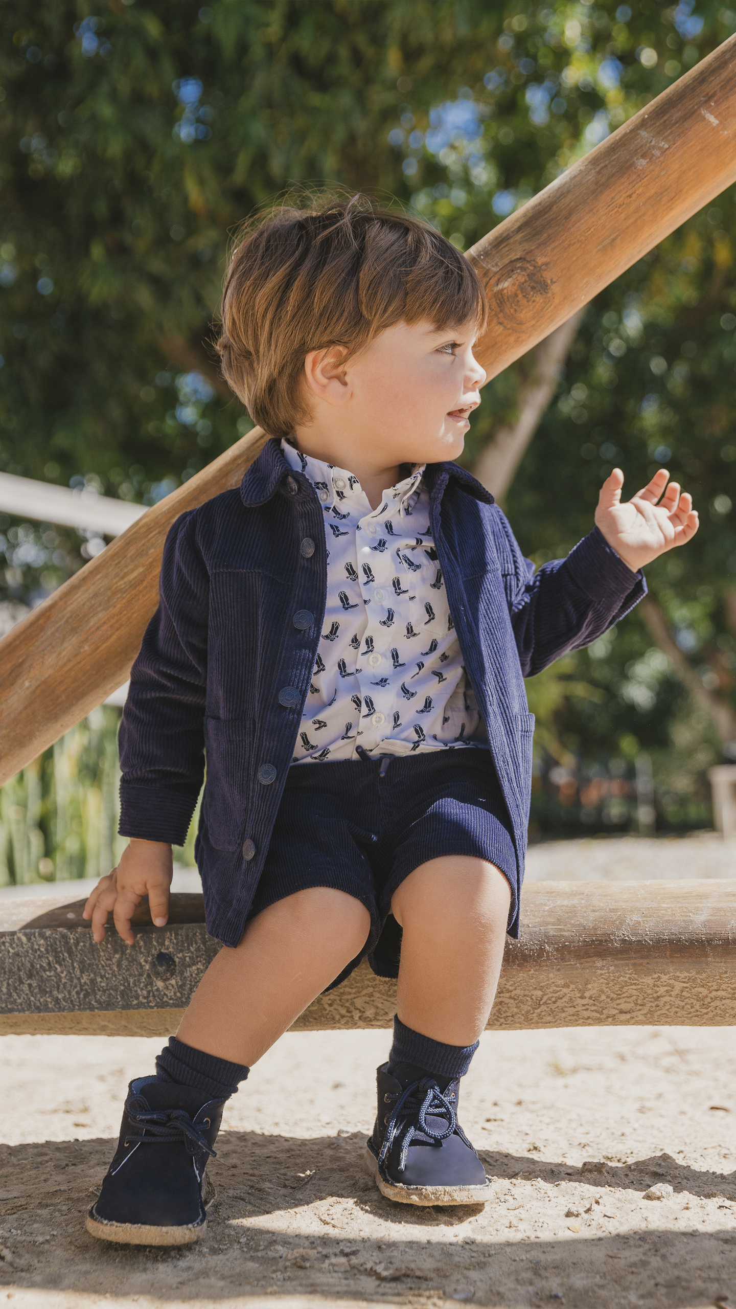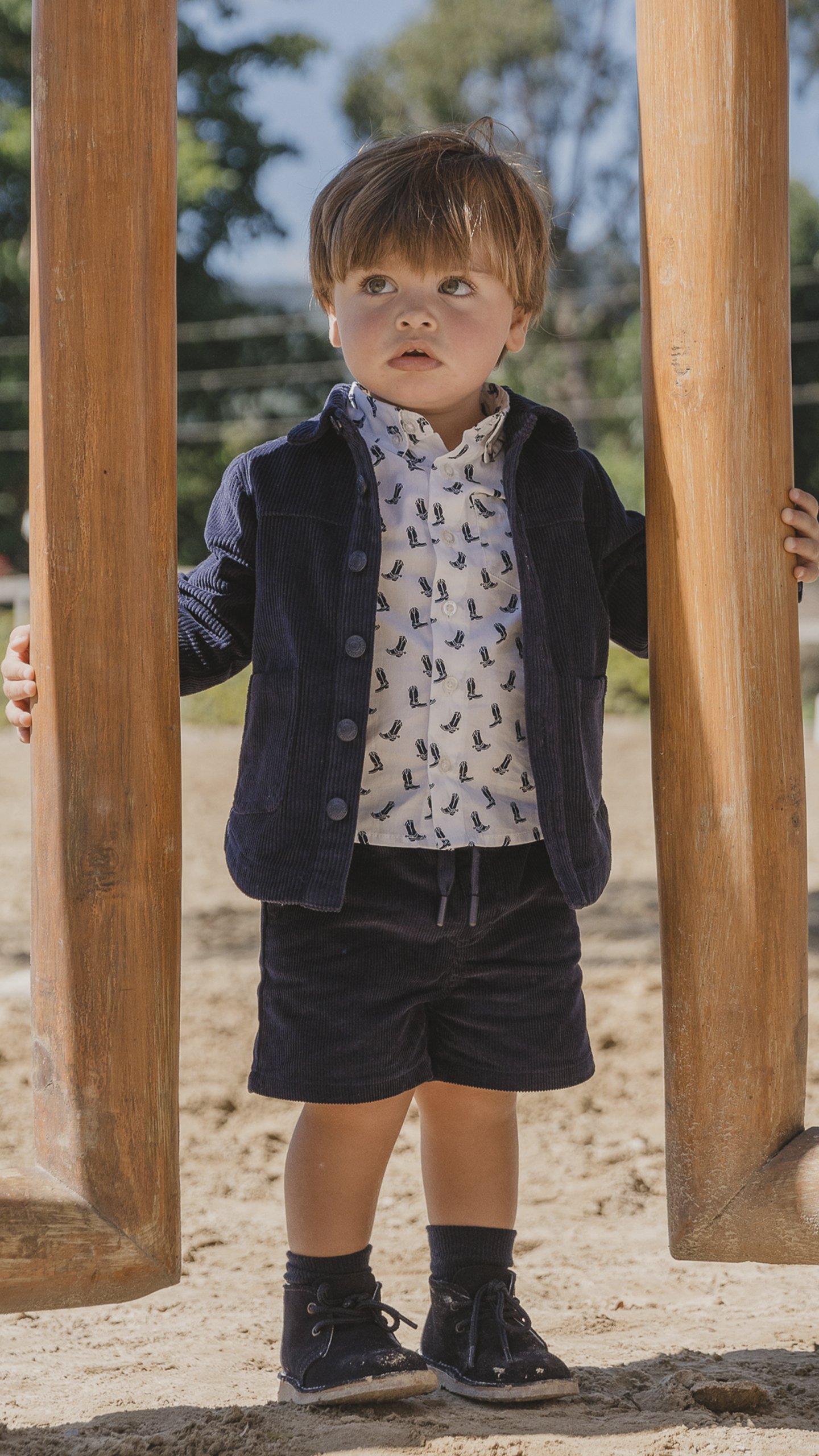 CAMISA DE POPELINA BLANCA CON ESTAMPADO DE BOTAS VAQUERAS PARA BEBE NIÑO