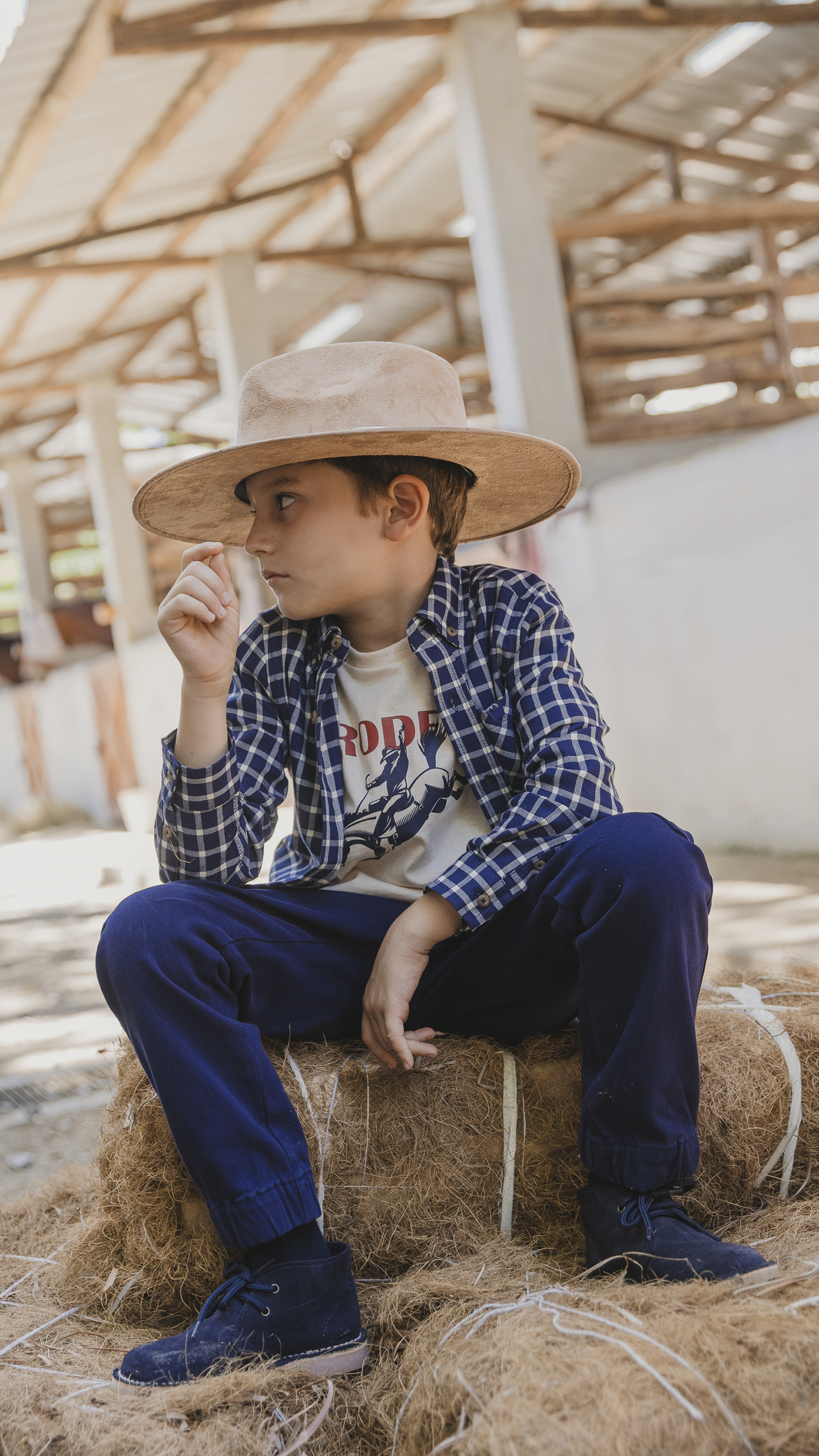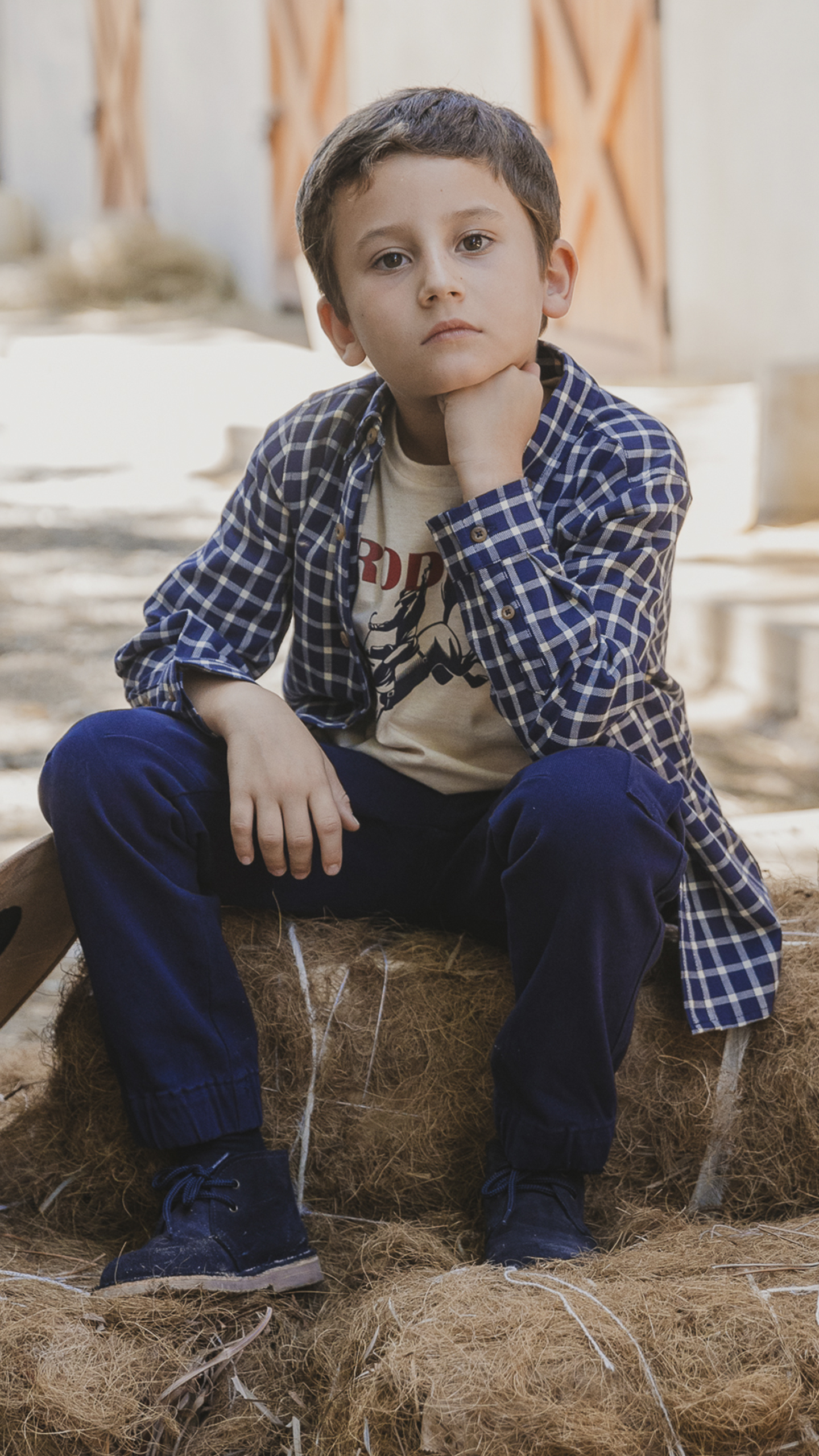 CAMISA DE TWILL MANGA LARGA CON ESTAMPADO DE CUADROS AZUL MARINO Y CREMA PARA NIÑO