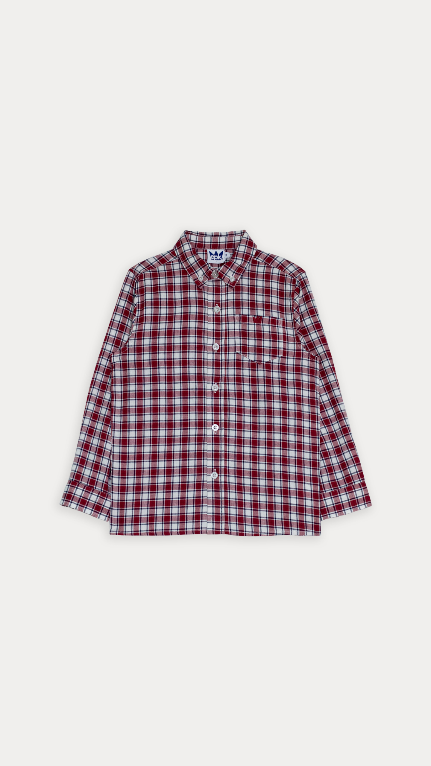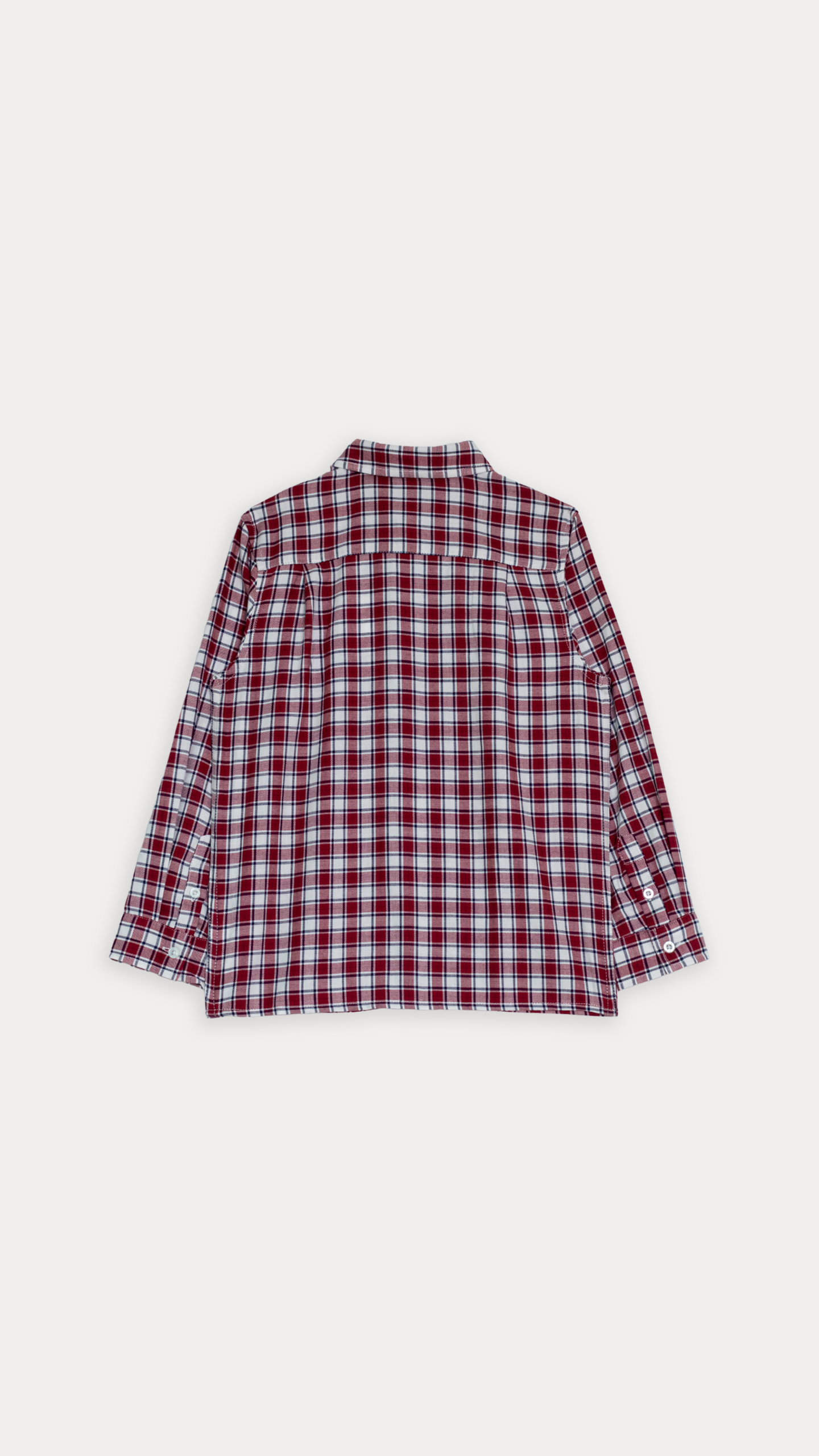 CAMISA DE TWILL CON ESTAMPADO DE CUADROS ROJOS MANGA LARGA PARA NIÑO