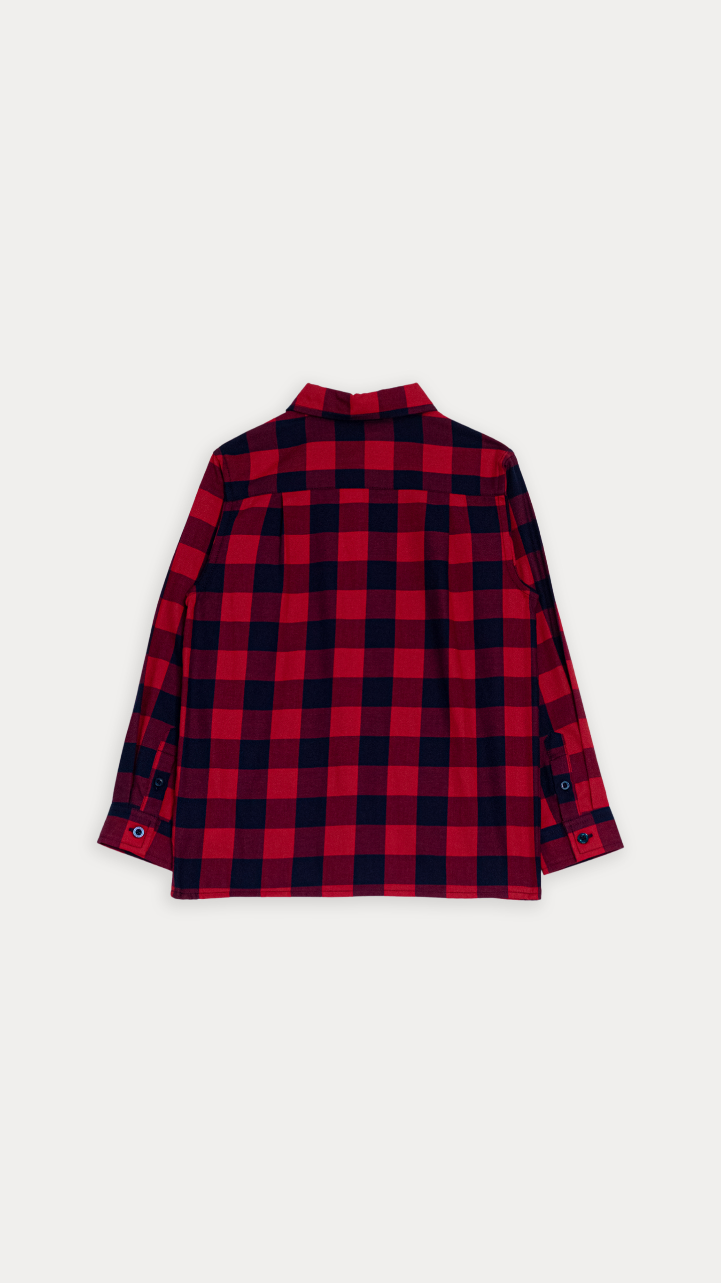 CAMISA DE FLANNEL TWILL CON ESTAMPADO DE CUADROS VINOTINTO Y AZUL PARA NIÑO