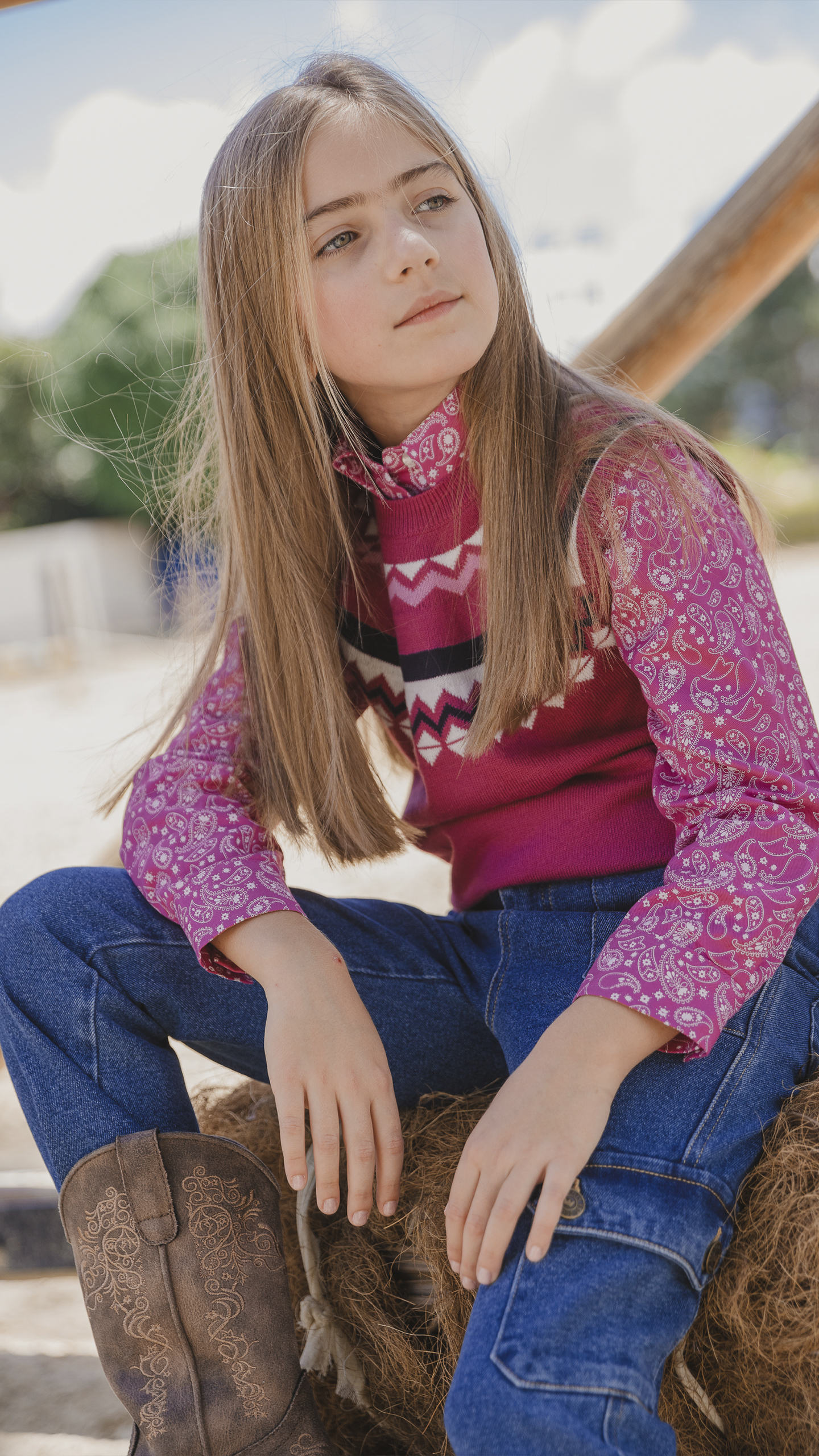 CAMISA DE FLANNEL TWILL FUCSIA CON ESTAMPADO DE BACTERIAS BLANCO PARA NIÑA