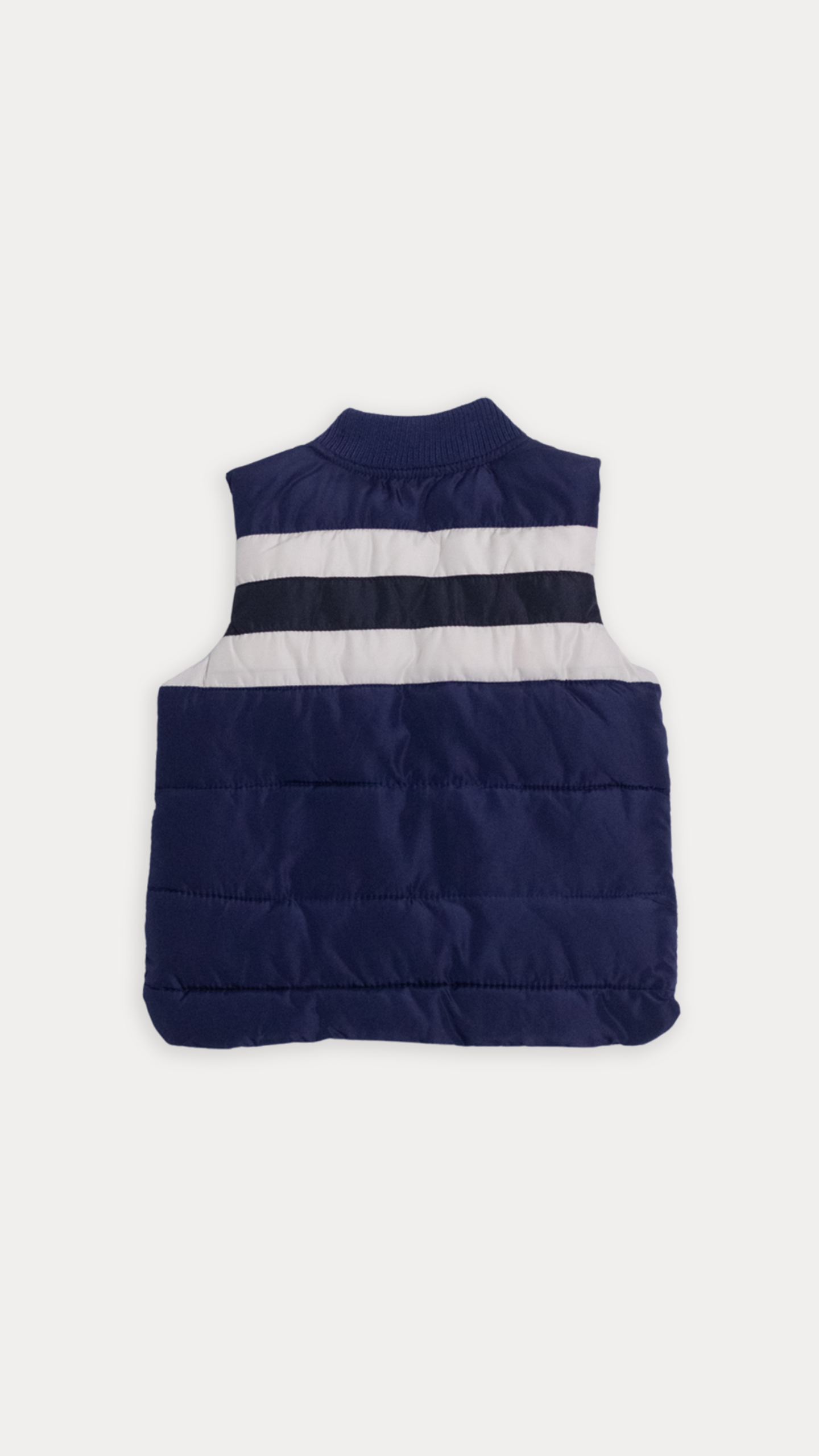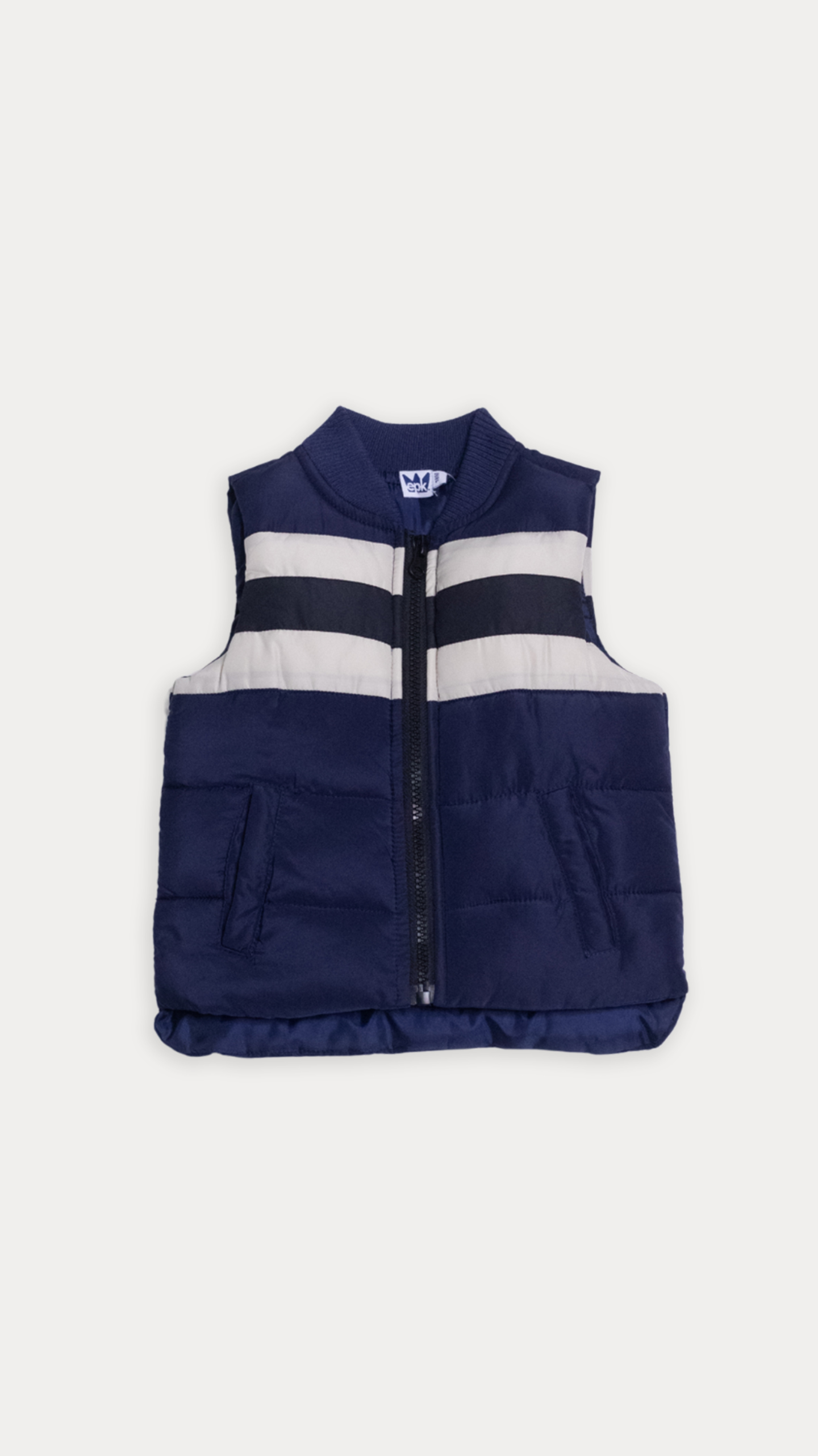 CHALECO ACOLCHADO AZUL MARINO Y DETALLE EN NEGRO Y ARENA