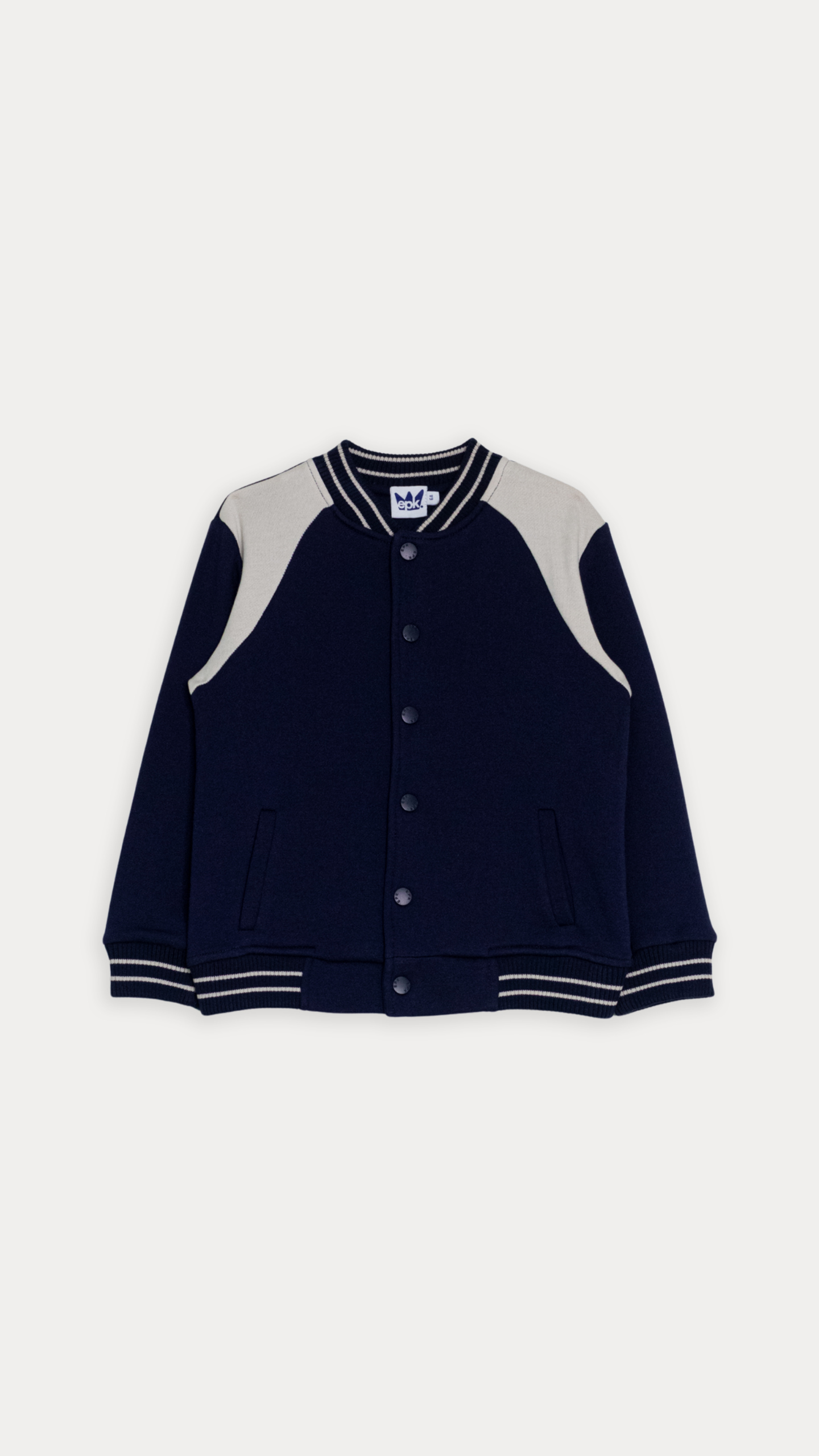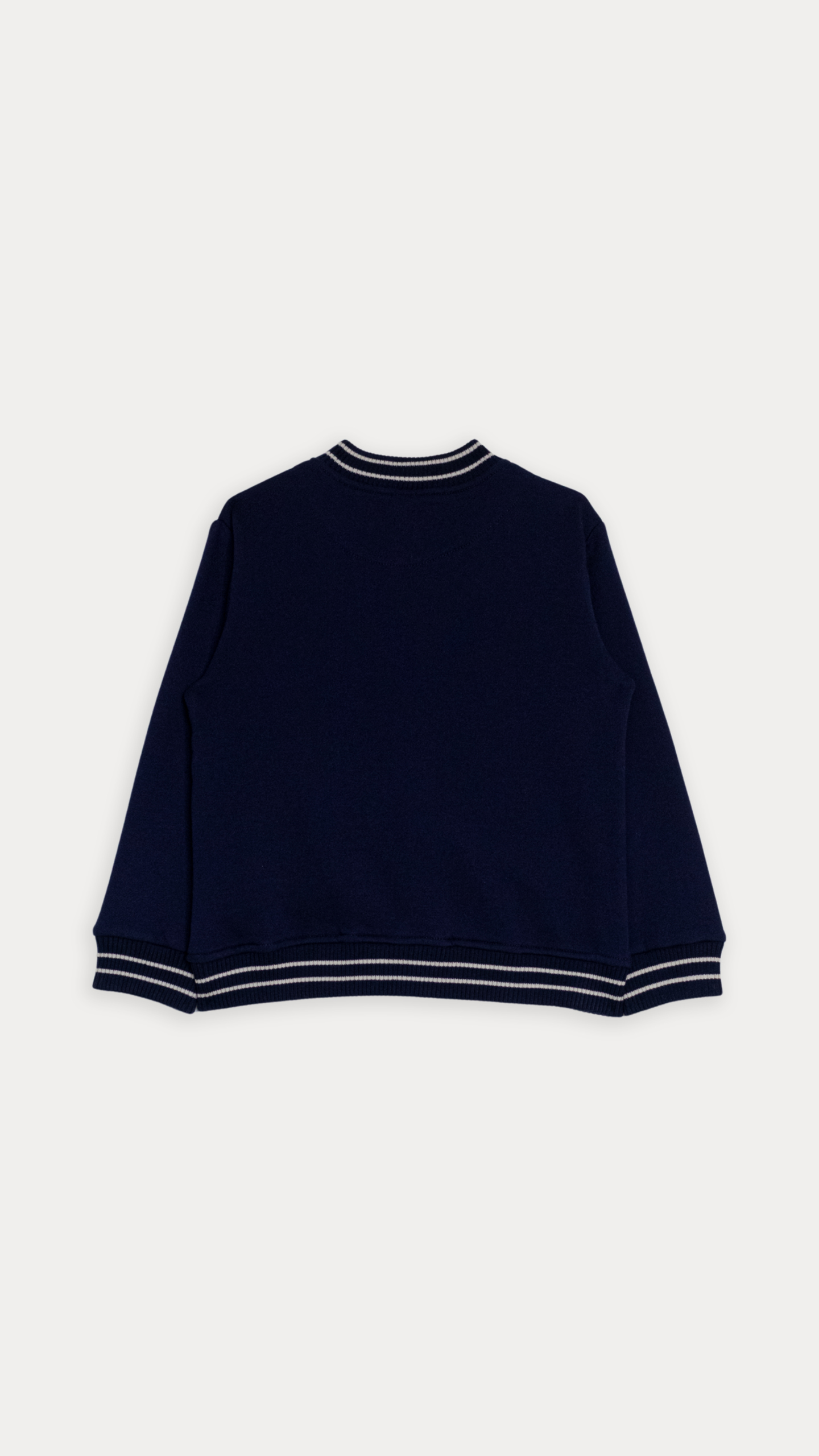 CHAQUETA DE TELA GRUESA AZUL MARINO CON DETALLES EN CREMA PARA NIÑO