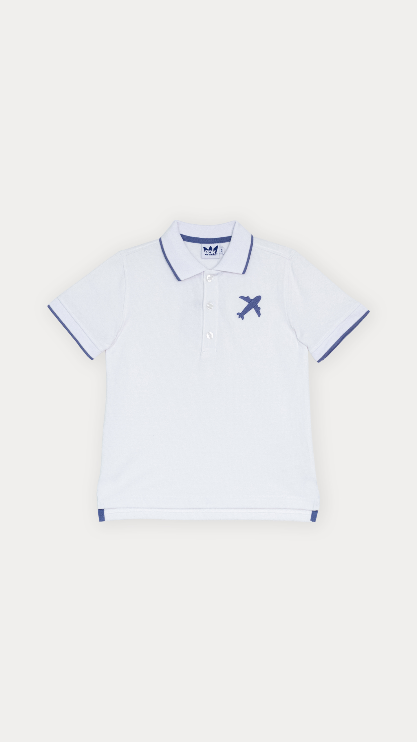 CHEMISE DE PIQUÉ BLANCO CON BORDADO DE AVIÓN PARA NIÑO