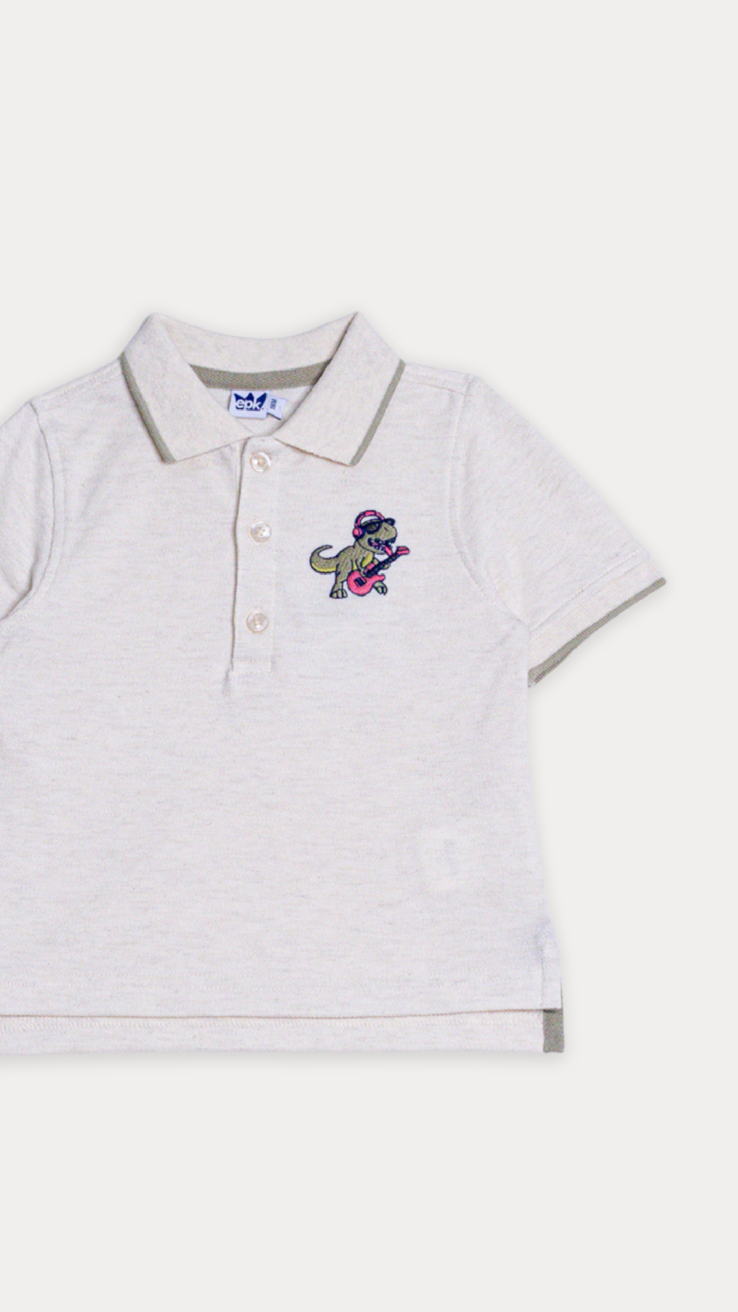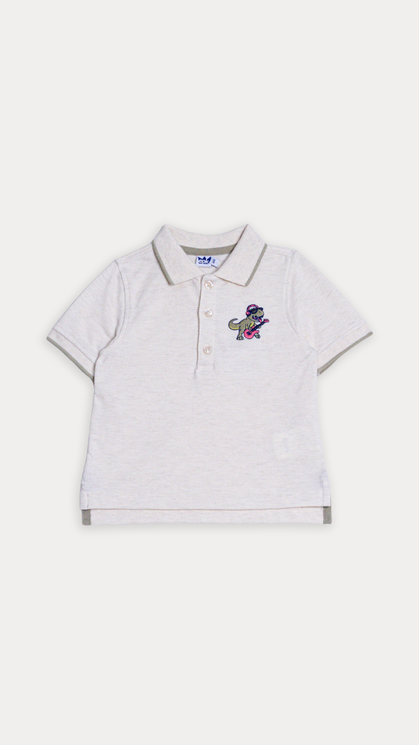 CHEMISE DE PIQUÉ CREMA CON BORDADO DE DINOSAURIO PARA BEBE NIÑO