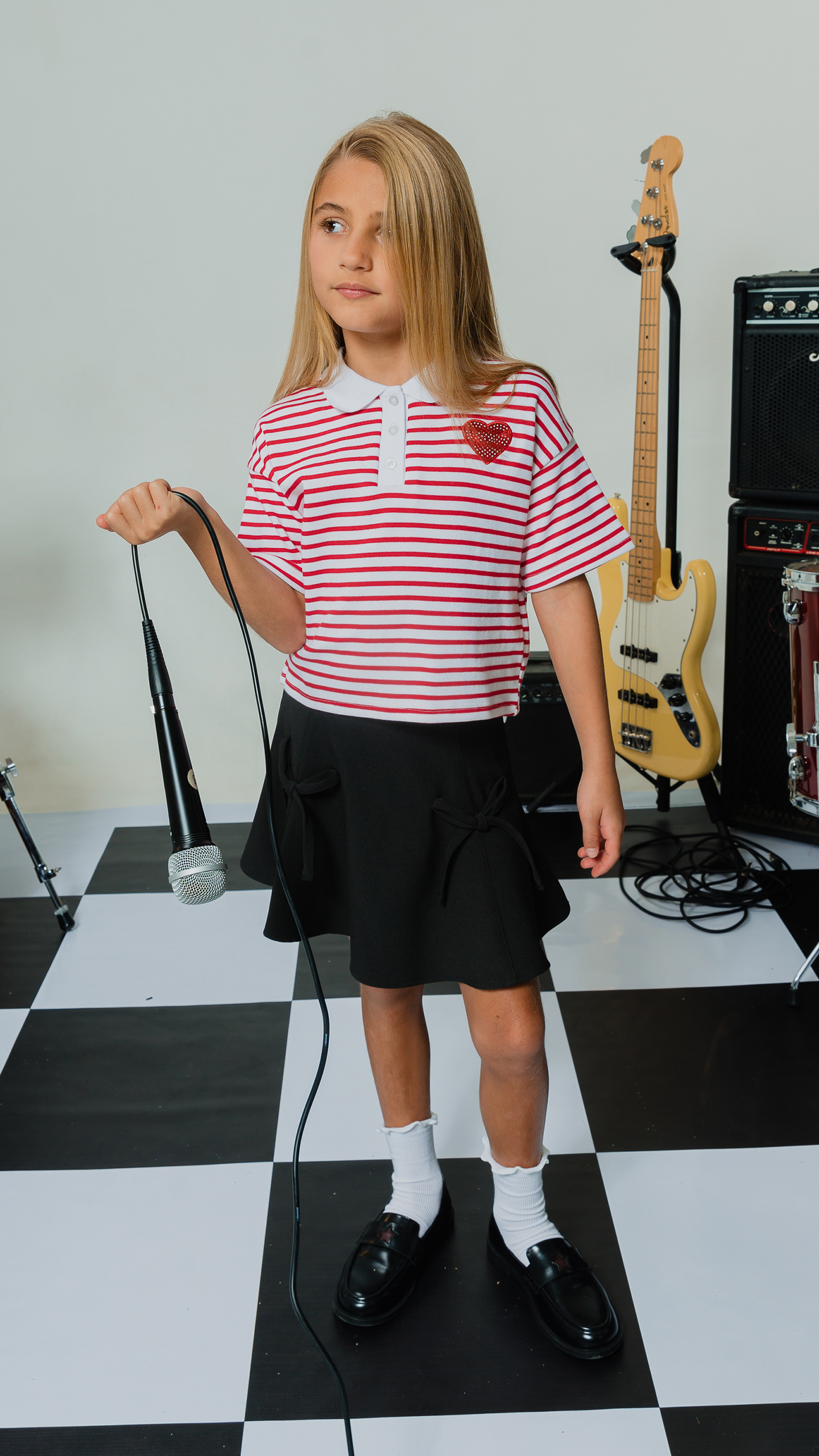 CHEMISE DE ALGODÓN CON ESTAMPADO DE RAYAS BLANCAS Y ROJAS Y PARCHE DE CORAZÓN CON LENTEJUELAS PARA NIÑA