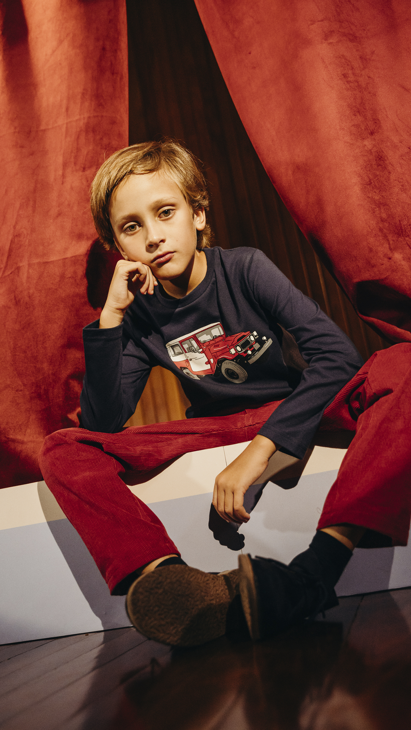 FRANELA DE ALGODÓN AZUL MARINO CON GRÁFICO DE JEEP PARA NIÑO