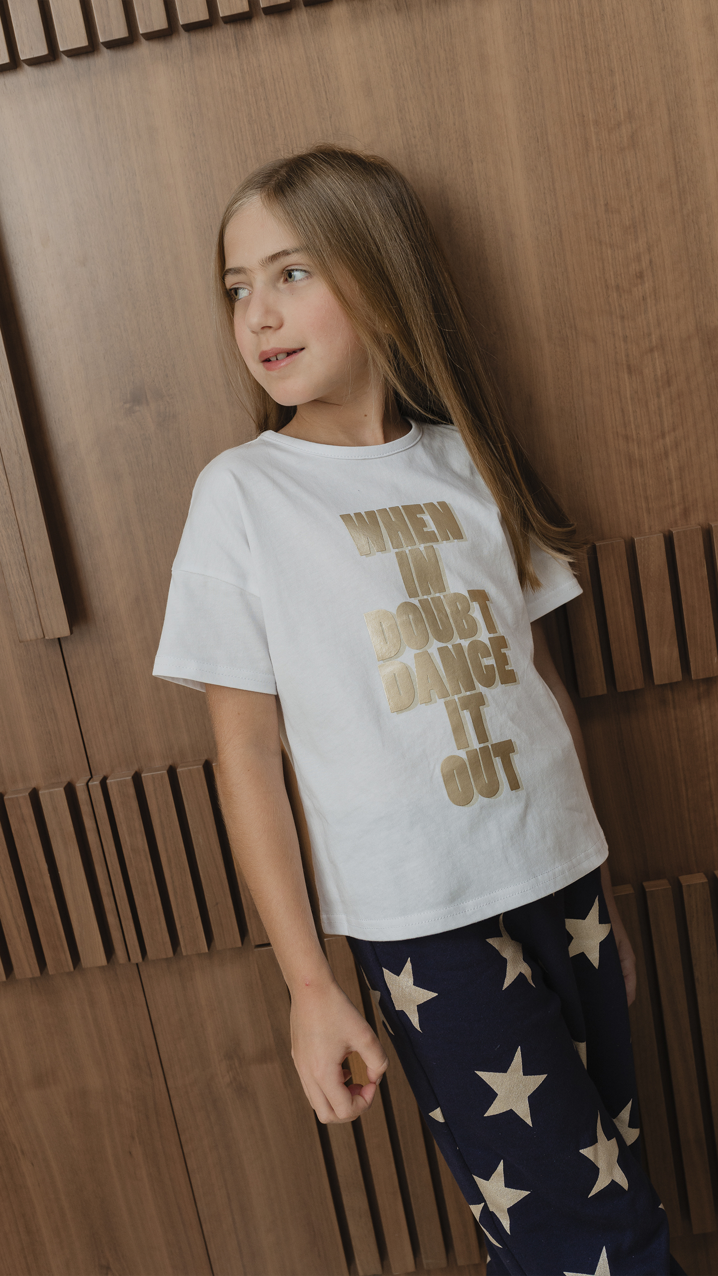 FRANELA DE ALGODÓN BLANCA CON FRASE METALIZADA PARA NIÑA