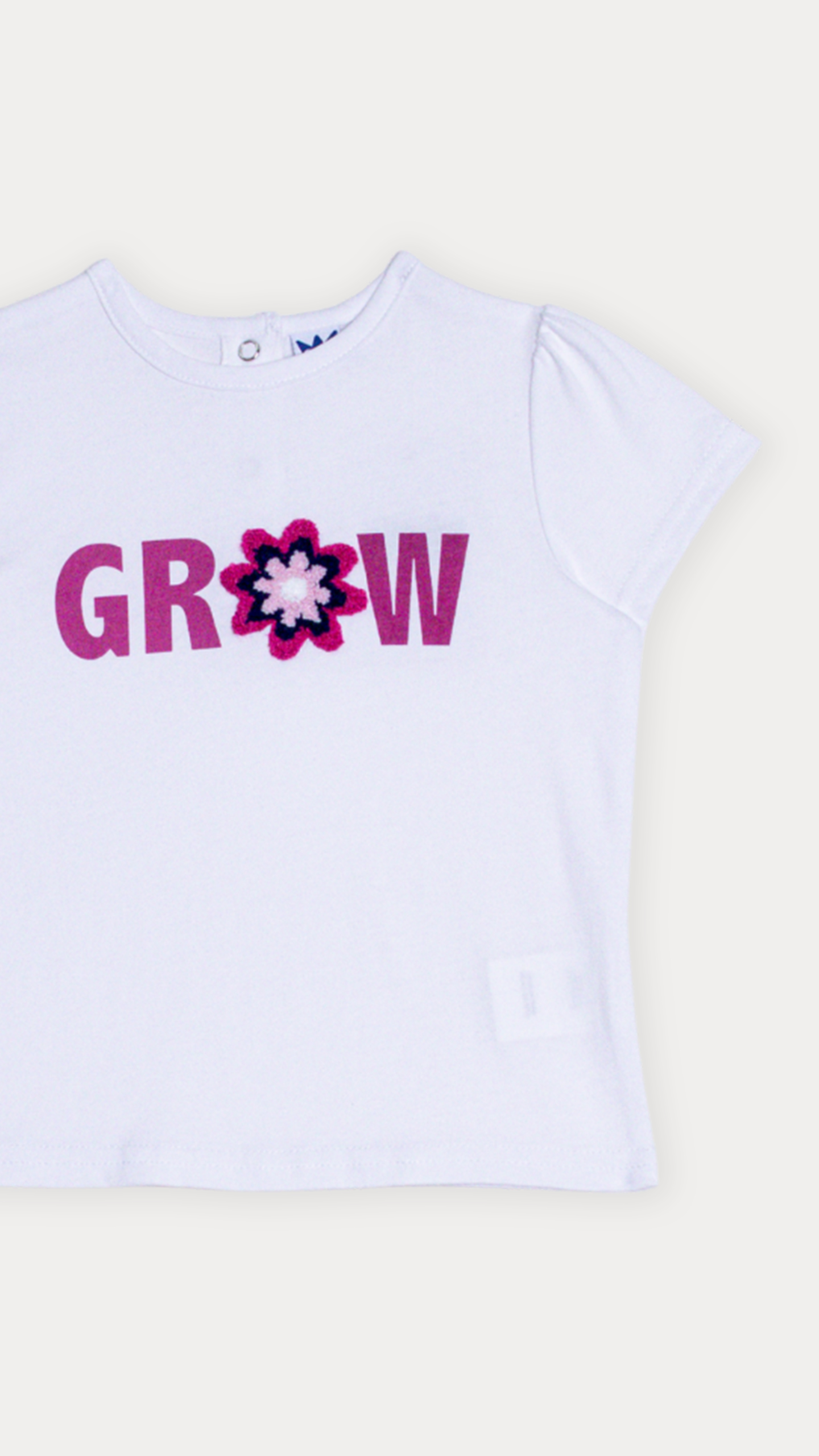 FRANELA DE ALGODÓN BLANCA CON GRAFICO Y TEXTURA PARA BEBE NIÑA