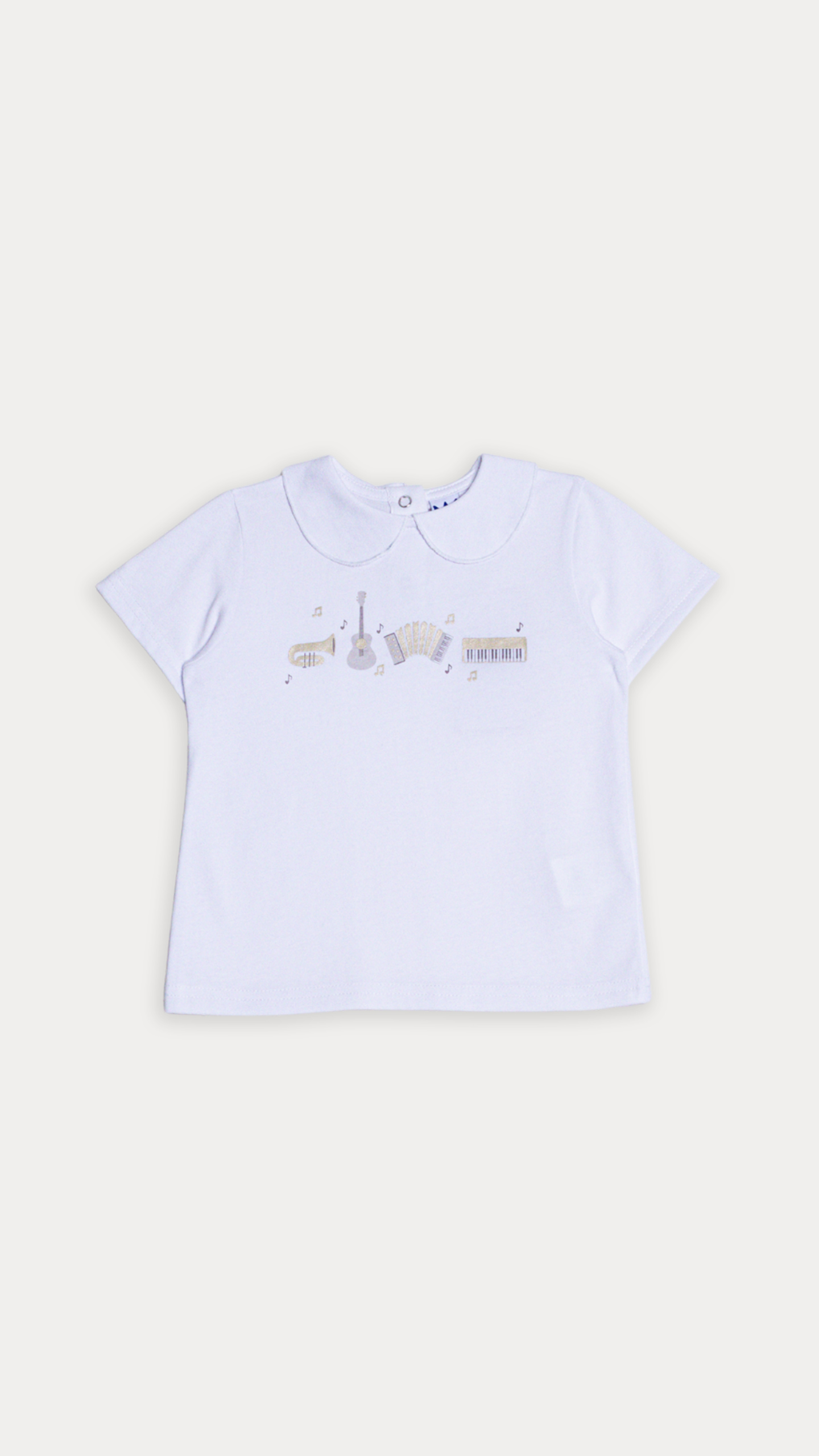 FRANELA DE ALGODÓN BLANCO CON GRAFICO METALICO PARA BEBE NIÑA