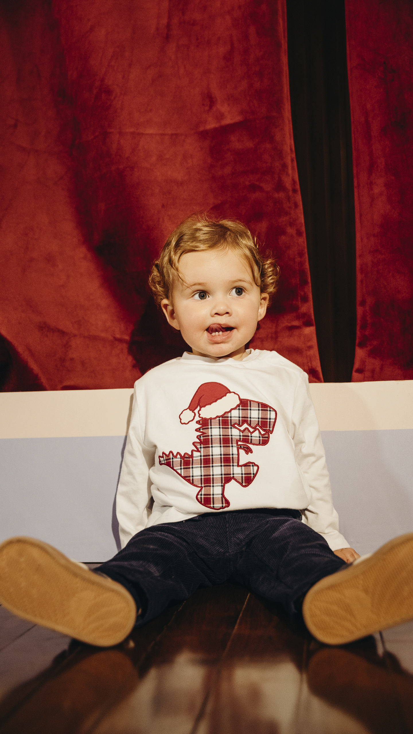 FRANELA MANGA LARGA DE ALGODÓN BLANCO CON GRAFICO DE DINOSAURIO PARA BEBE NIÑO