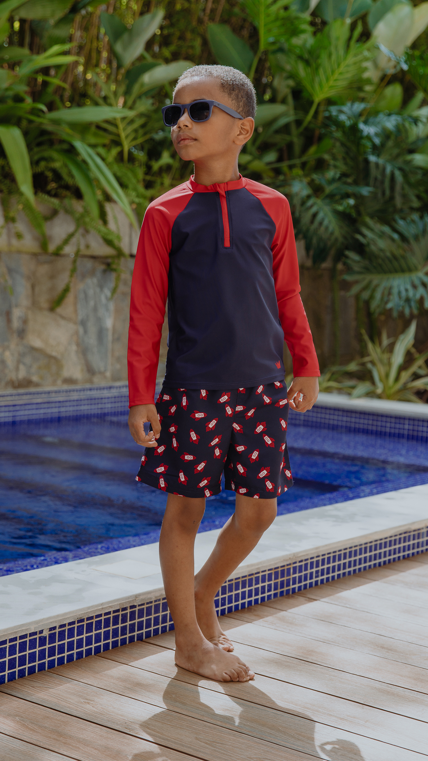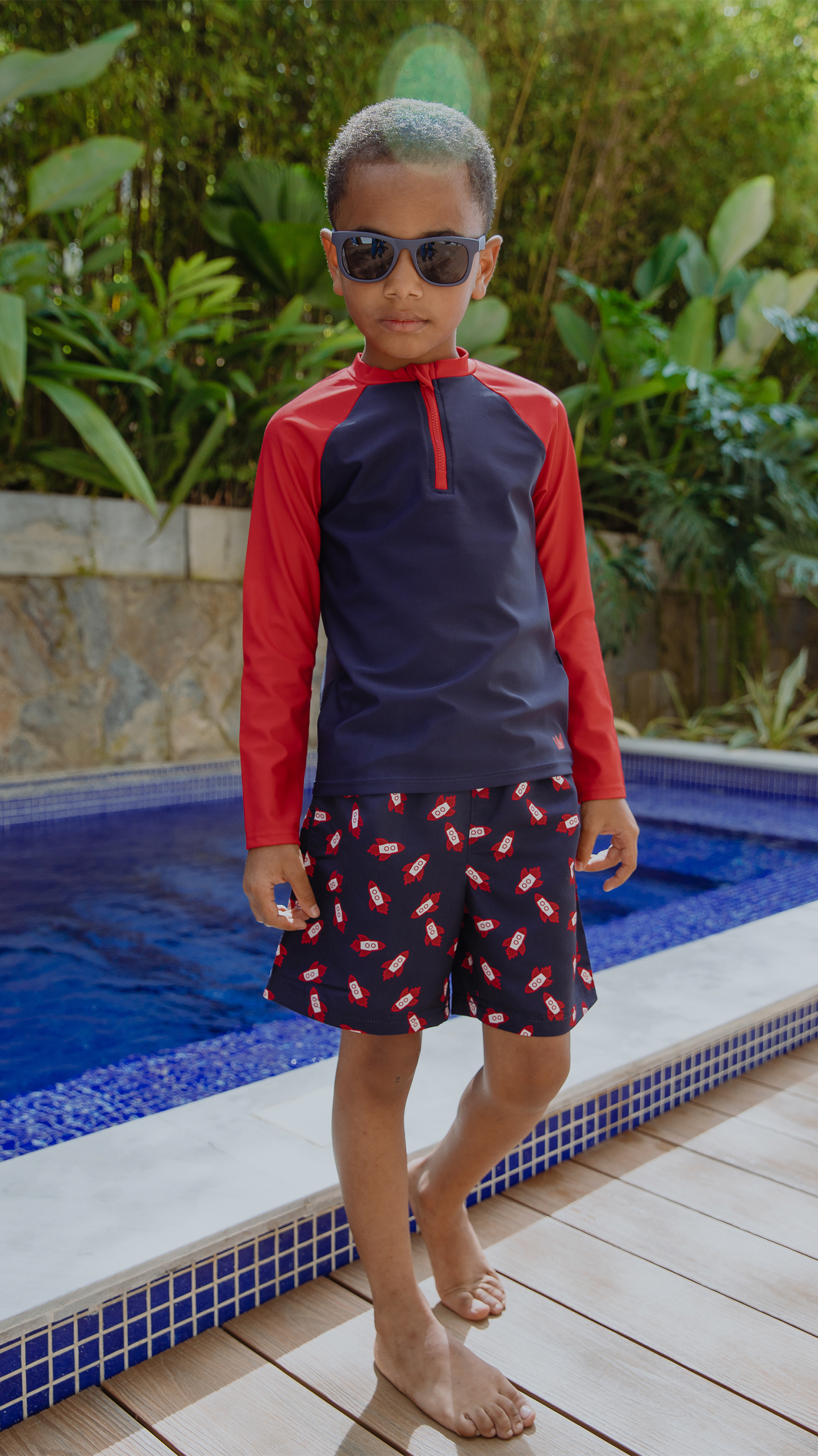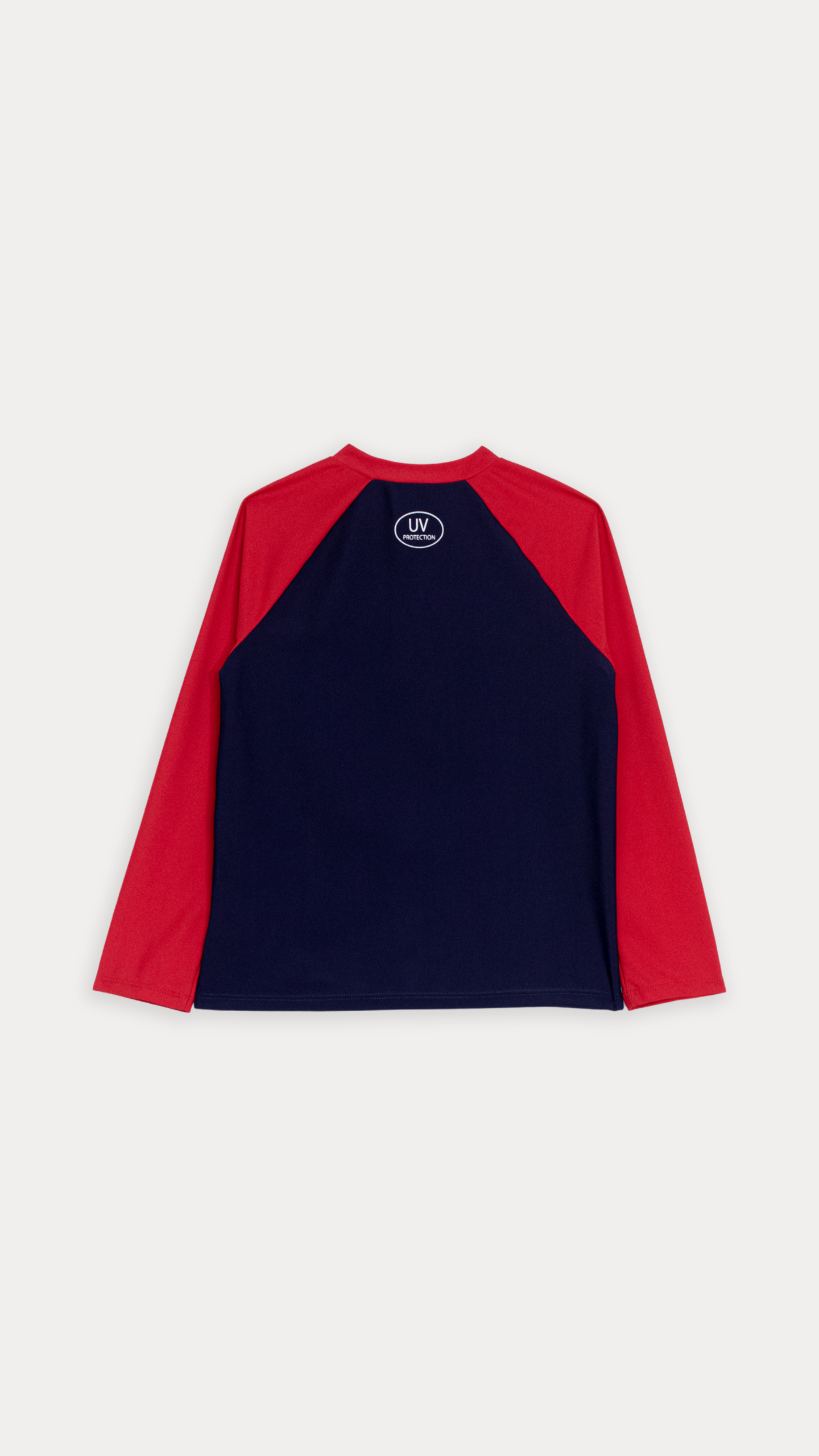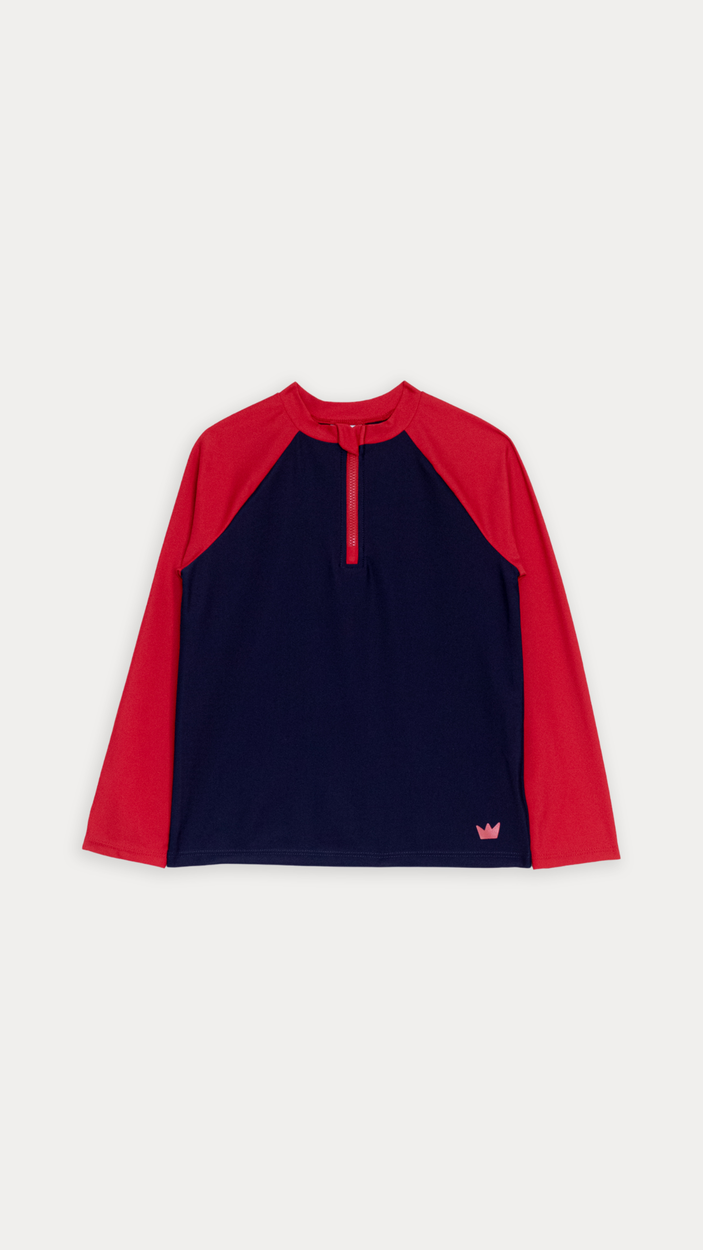 FRANELA DE AGUA AZUL MARINO CON MANGAS LARGAS EN ROJO PARA NIÑO