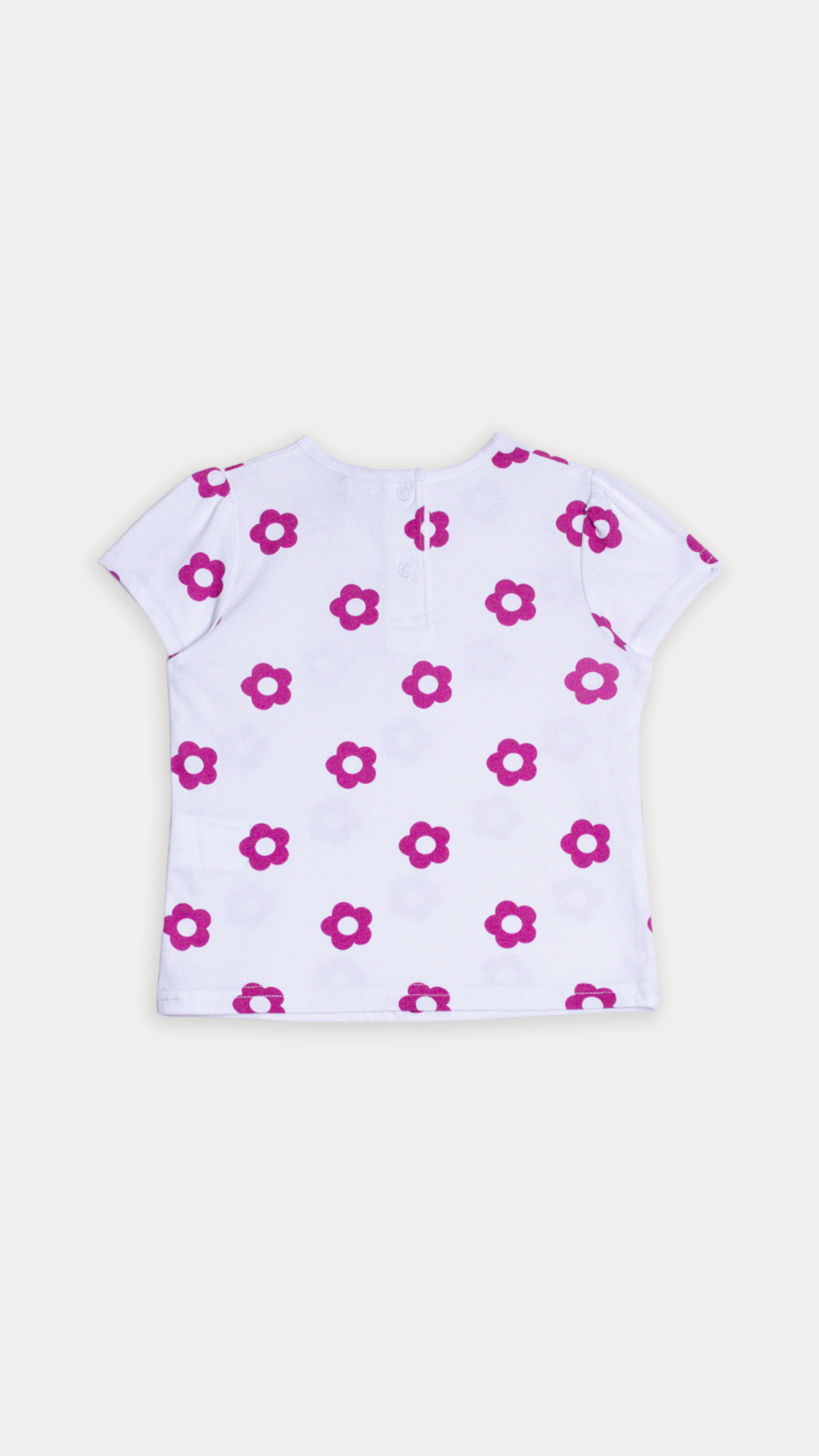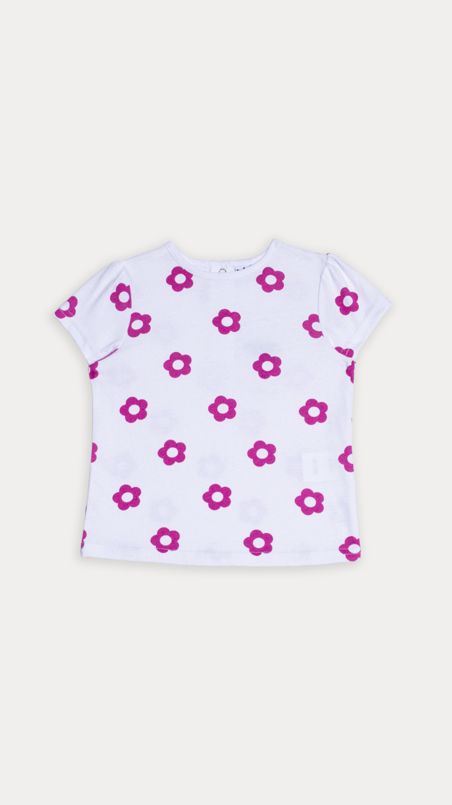 FRANELA DE ALGODÓN BLANCO CON ESTAMPADO DE FLORES FUCSIA PARA BEBE NIÑA