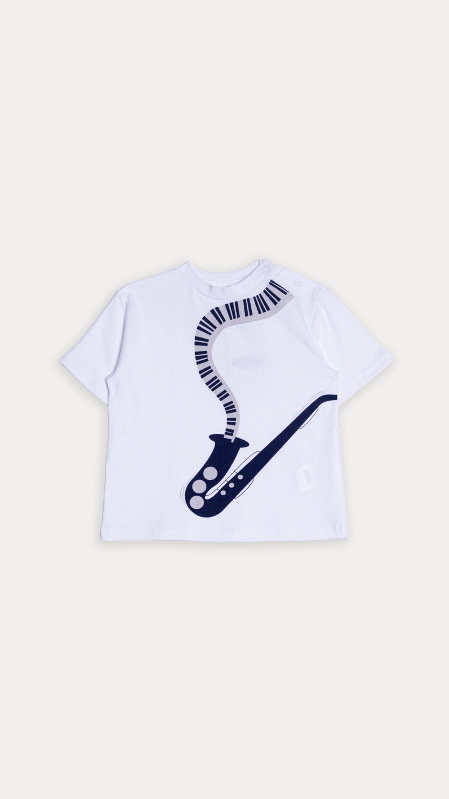 FRANELA DE ALGODÓN BLANCO CON GRÁFICO DE SAXOFÓN PARA BEBE NIÑO
