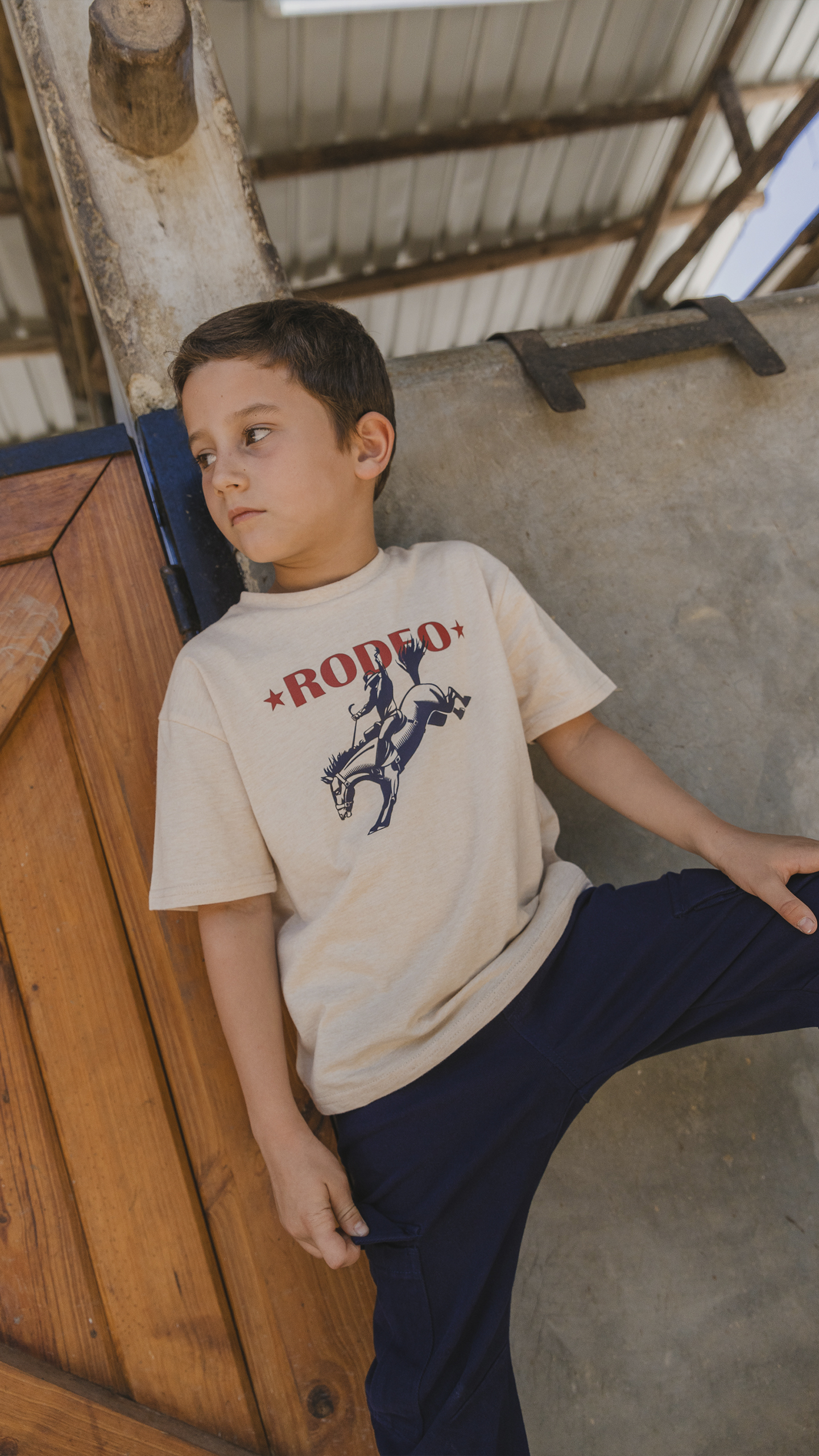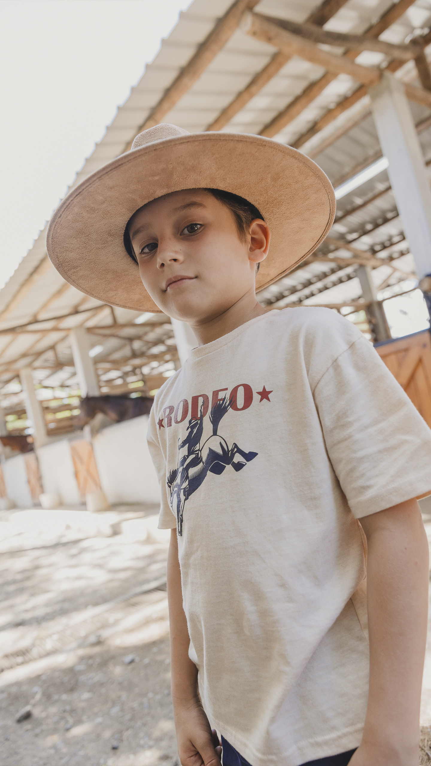 FRANELA DE ALGODÓN AMARILLO CLARO CON GRÁFICO VAQUERO PARA NIÑO