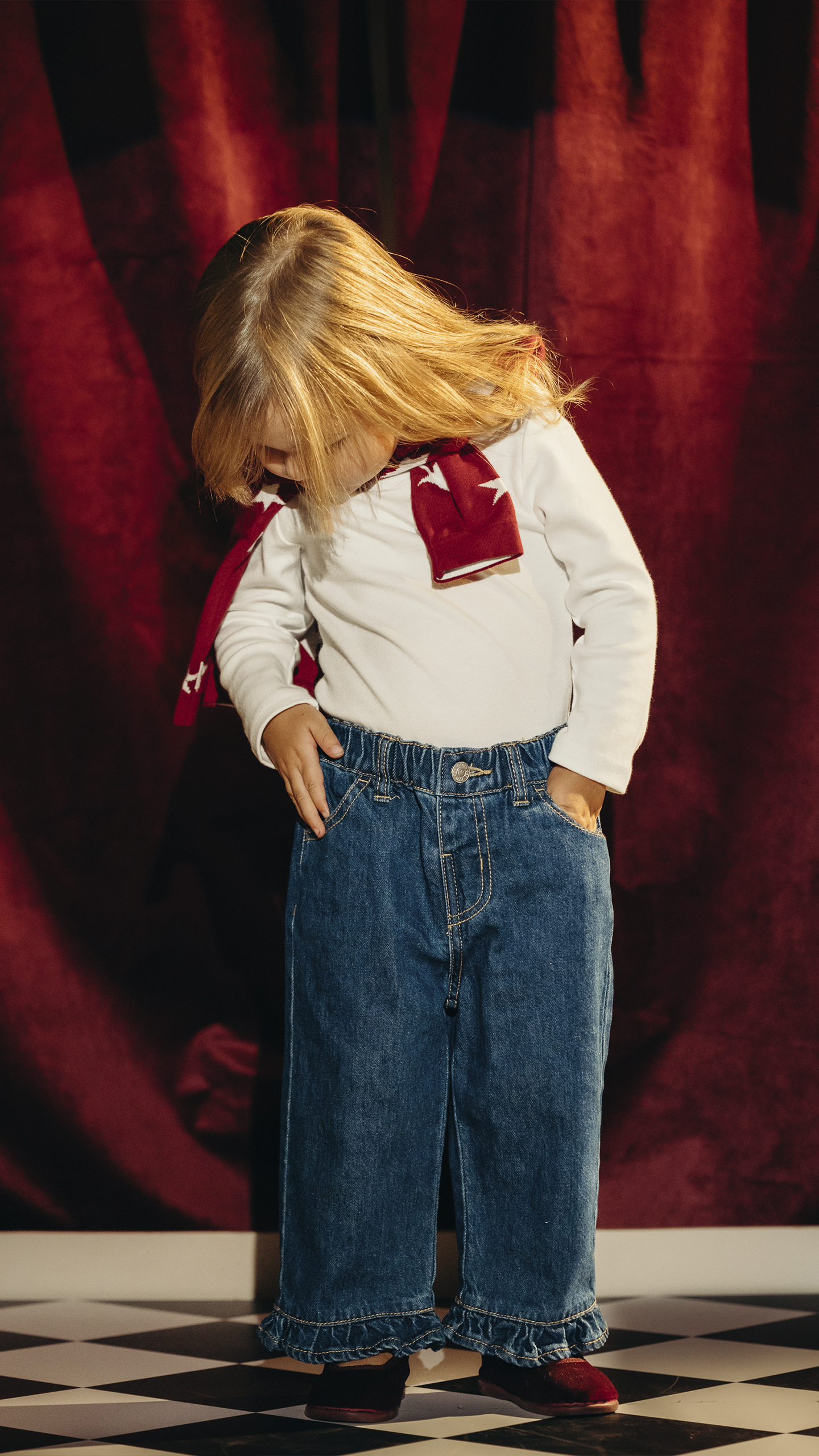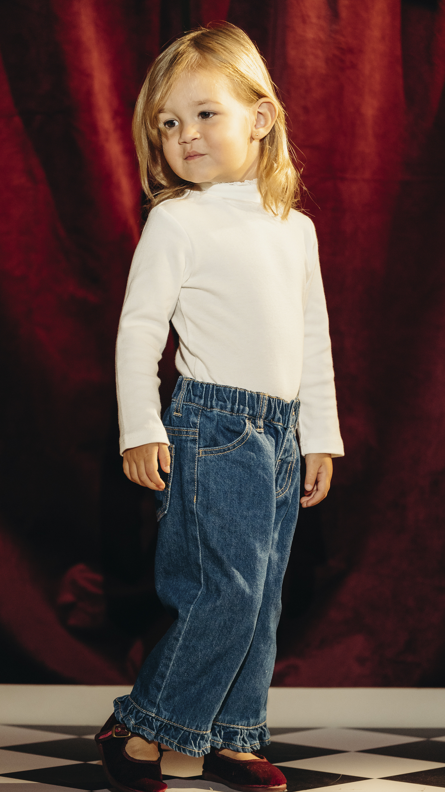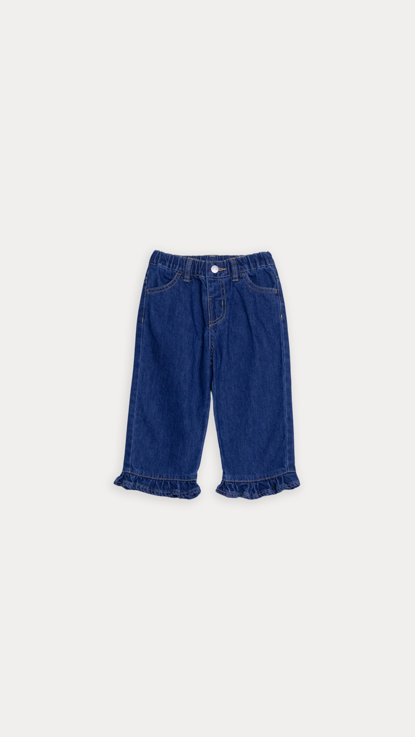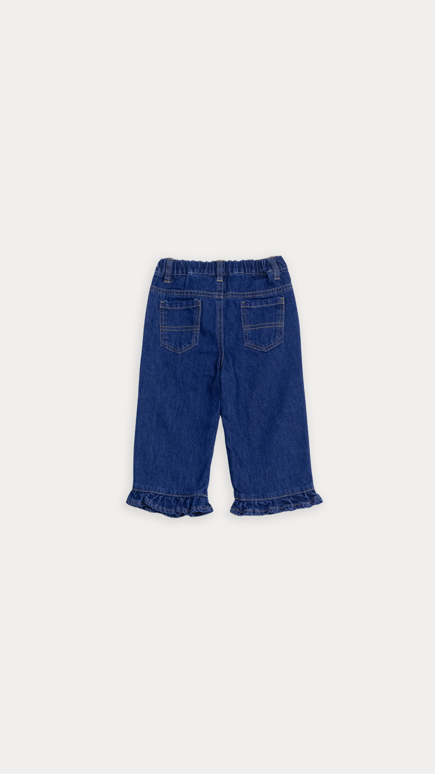 JEAN AZUL OSCURO CON VOLANTES PARA BEBE NIÑA