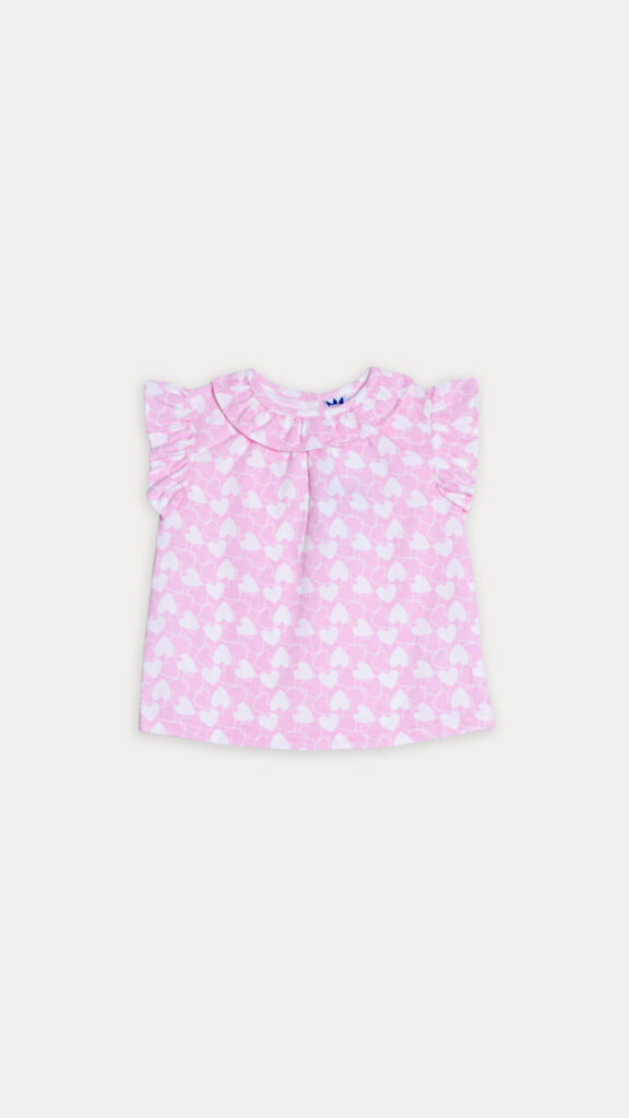JEAN AZUL CLARO CON ESTAMPADO DE CORAZONES ROSADOS PARA BEBE NIÑA