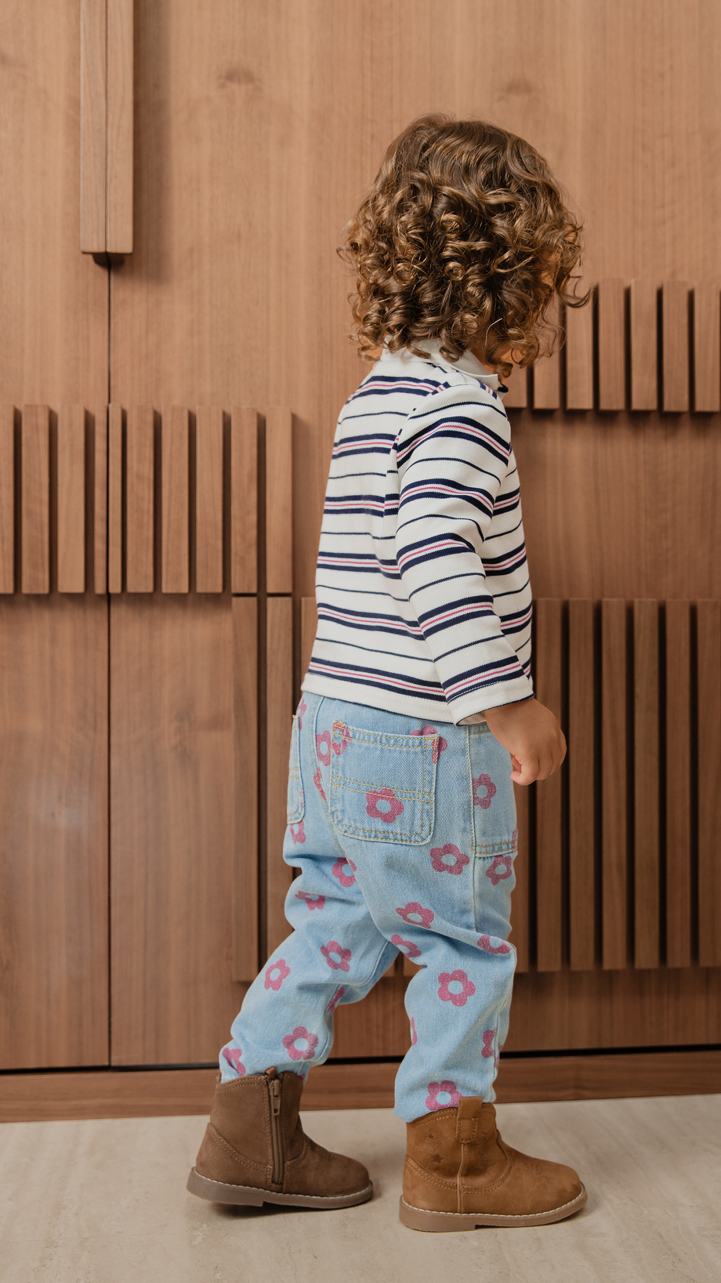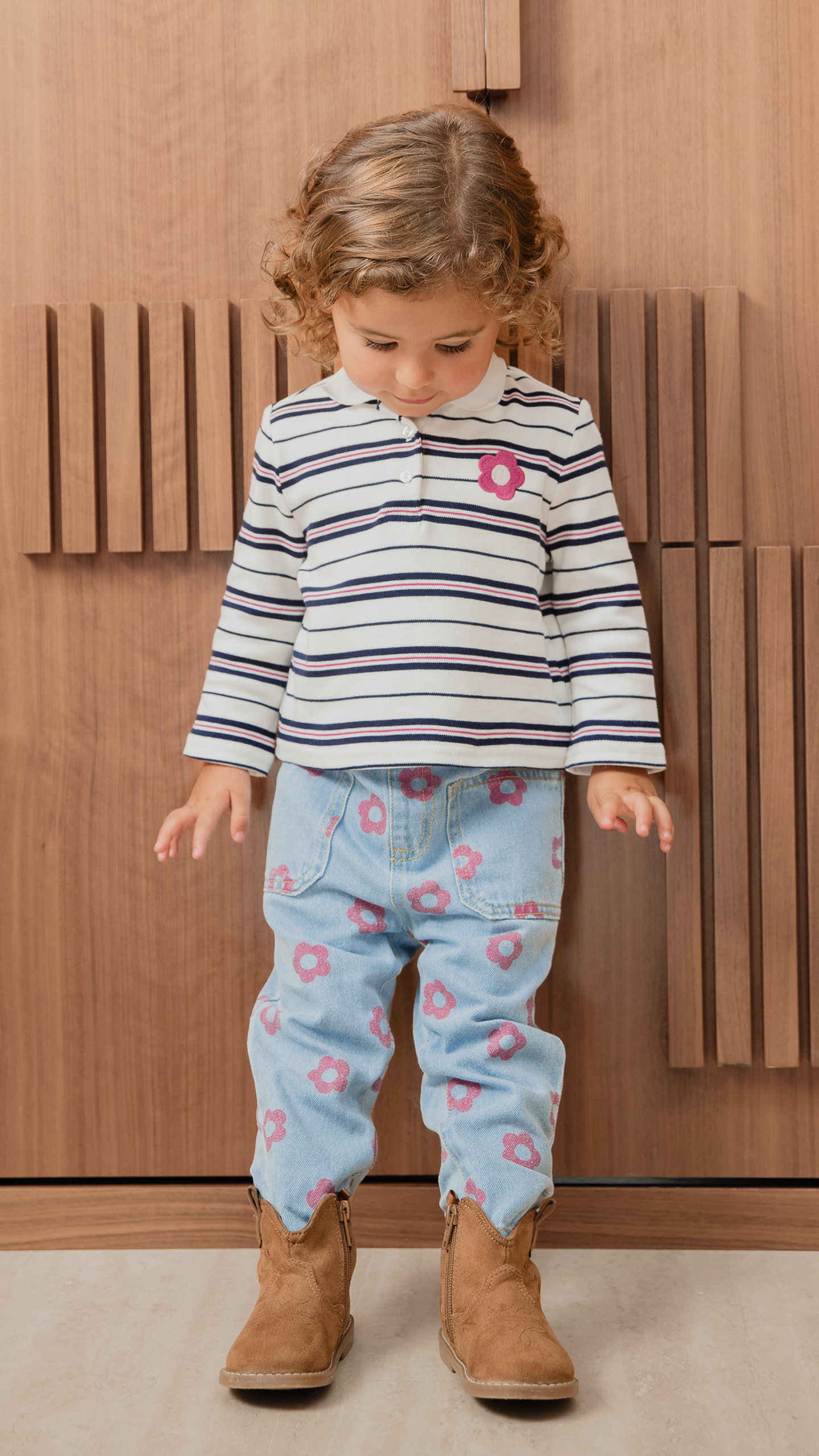 JEAN AZUL CLARO CON ESTAMPADO DE FLORES FUCSIA PARA BEBE NIÑA