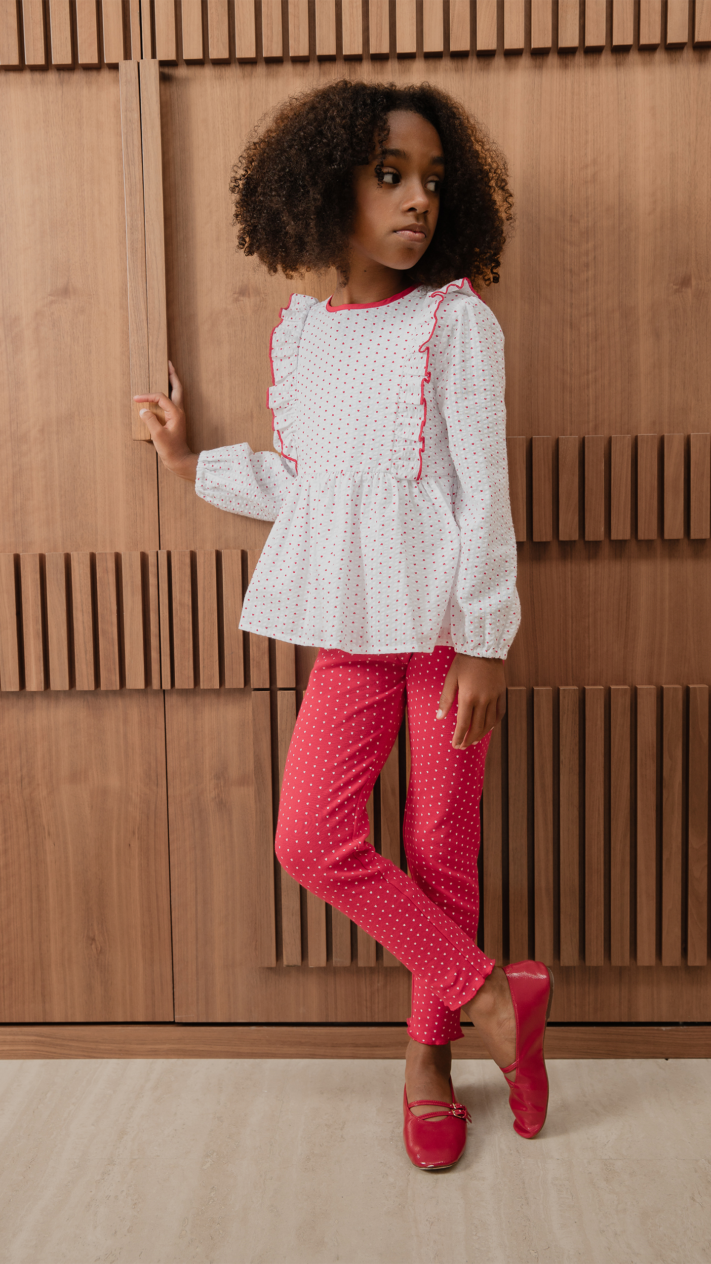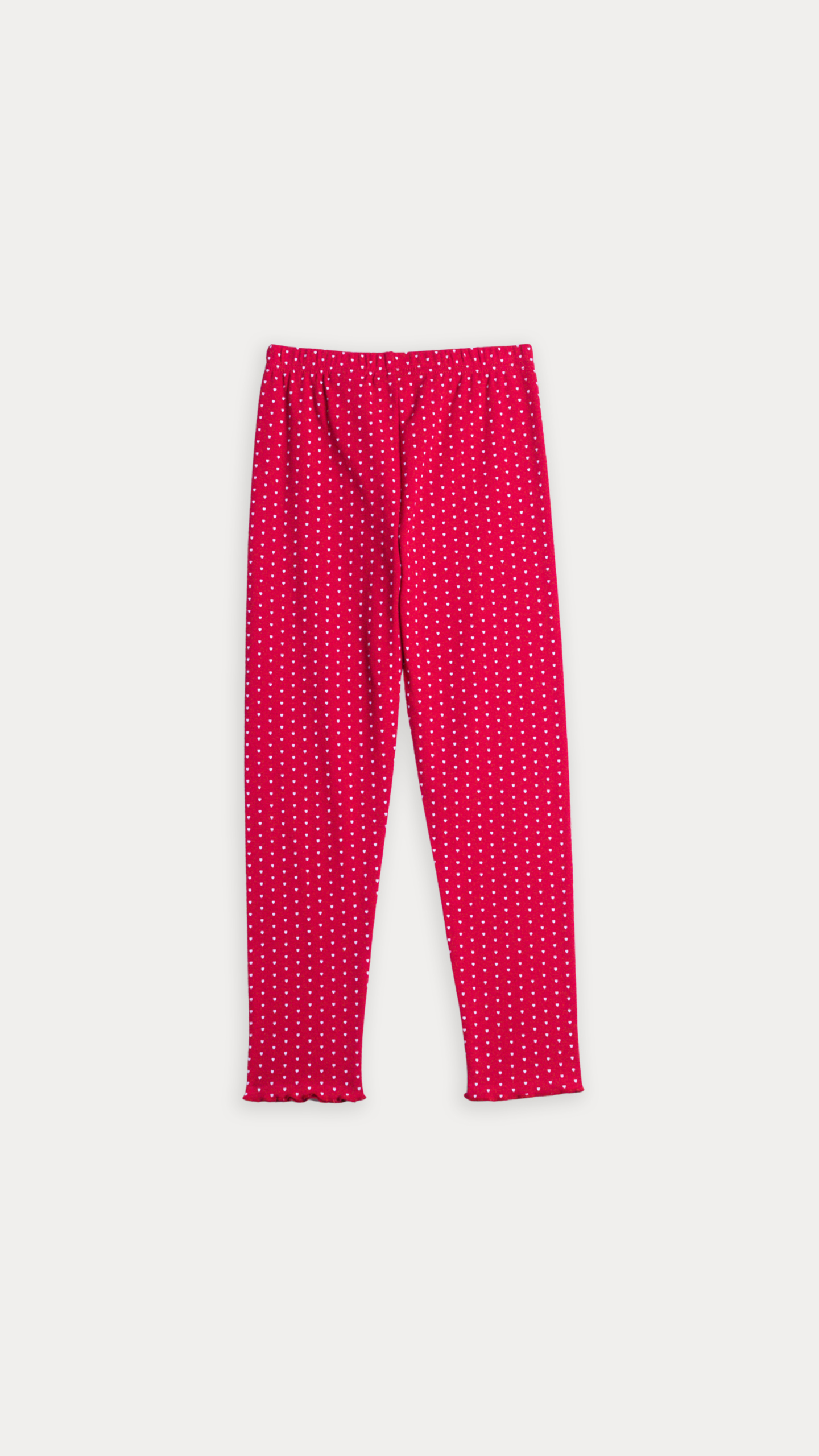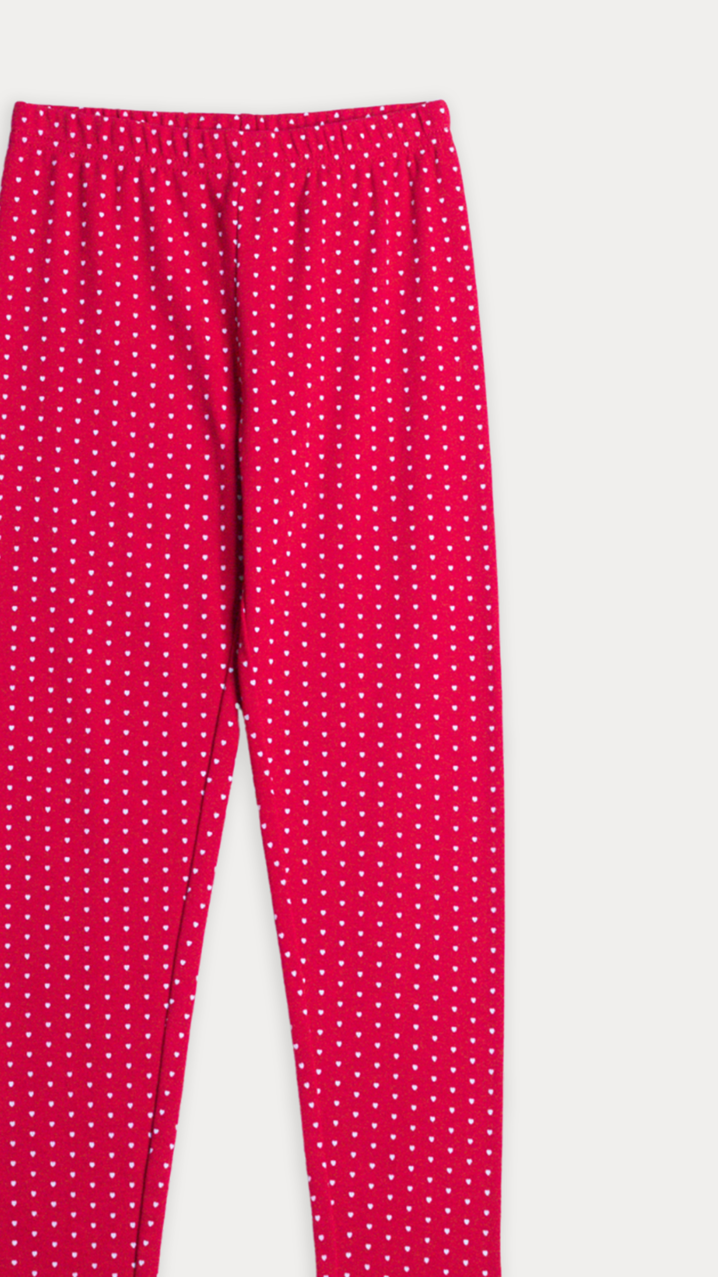 LEGGING DE ALGODÓN ROJO CON ESTAMPADO DE CORAZONES BLANCOS PARA NIÑA
