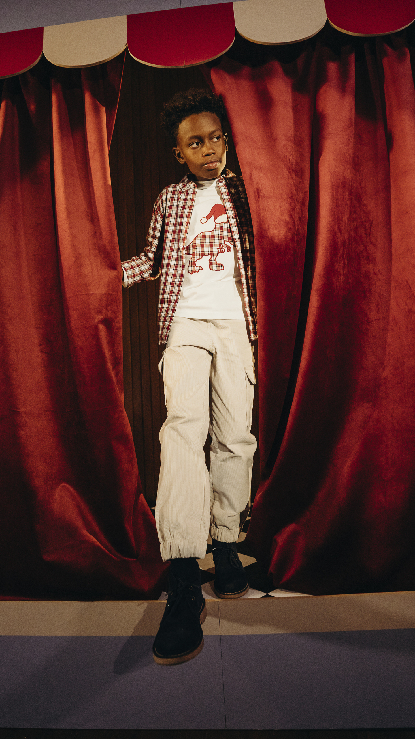 PANTALÓN CARGO DE CORDUROY ARENA CON ELÁSTICO EN LA CINTUA PARA NIÑO