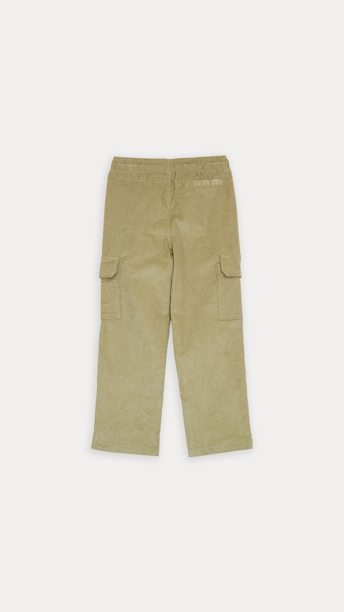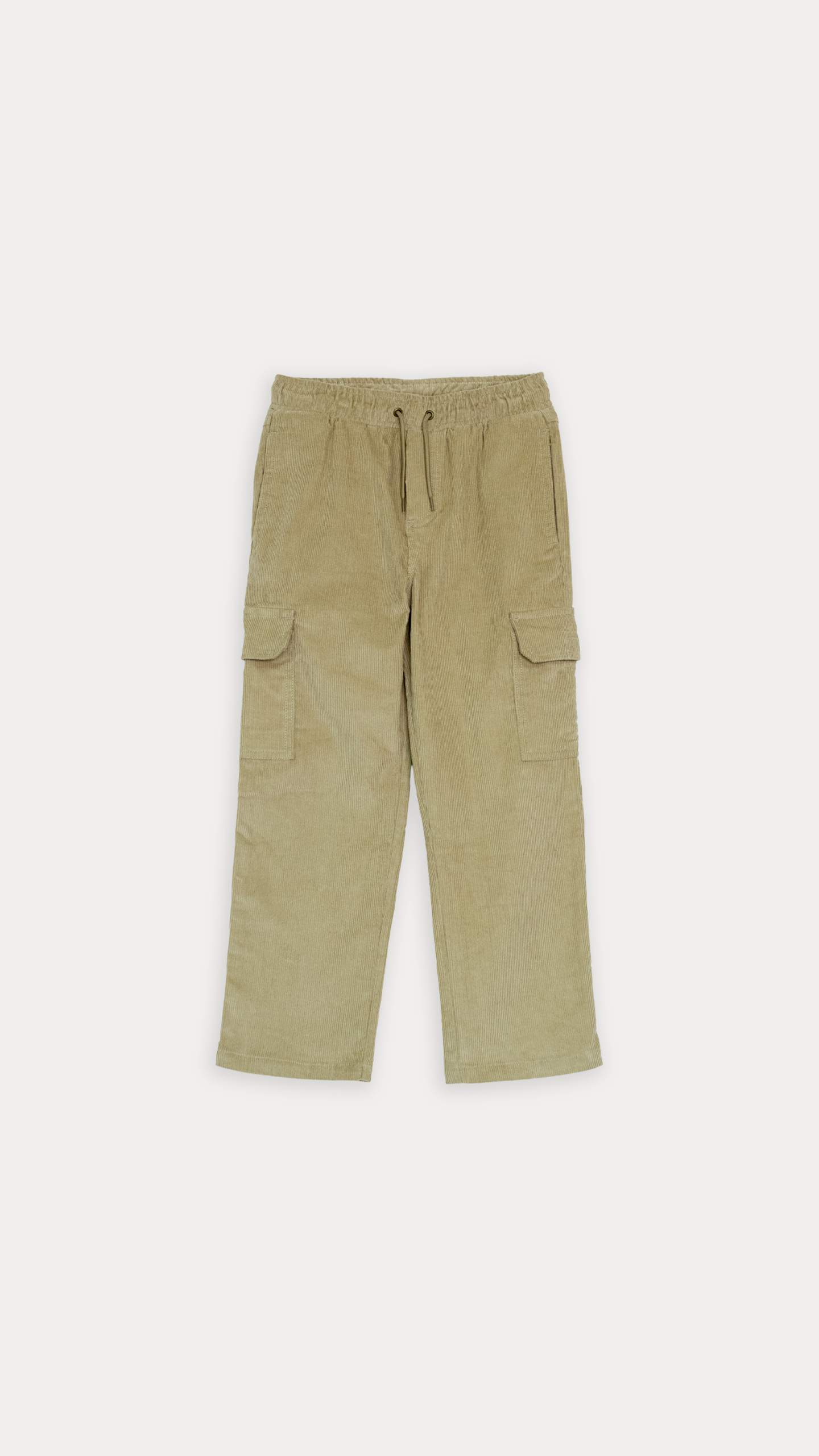 PANTALÓN CARGO DE CORDUROY BEIGE CON ELÁSTICO EN LA CINTURA PARA NIÑO