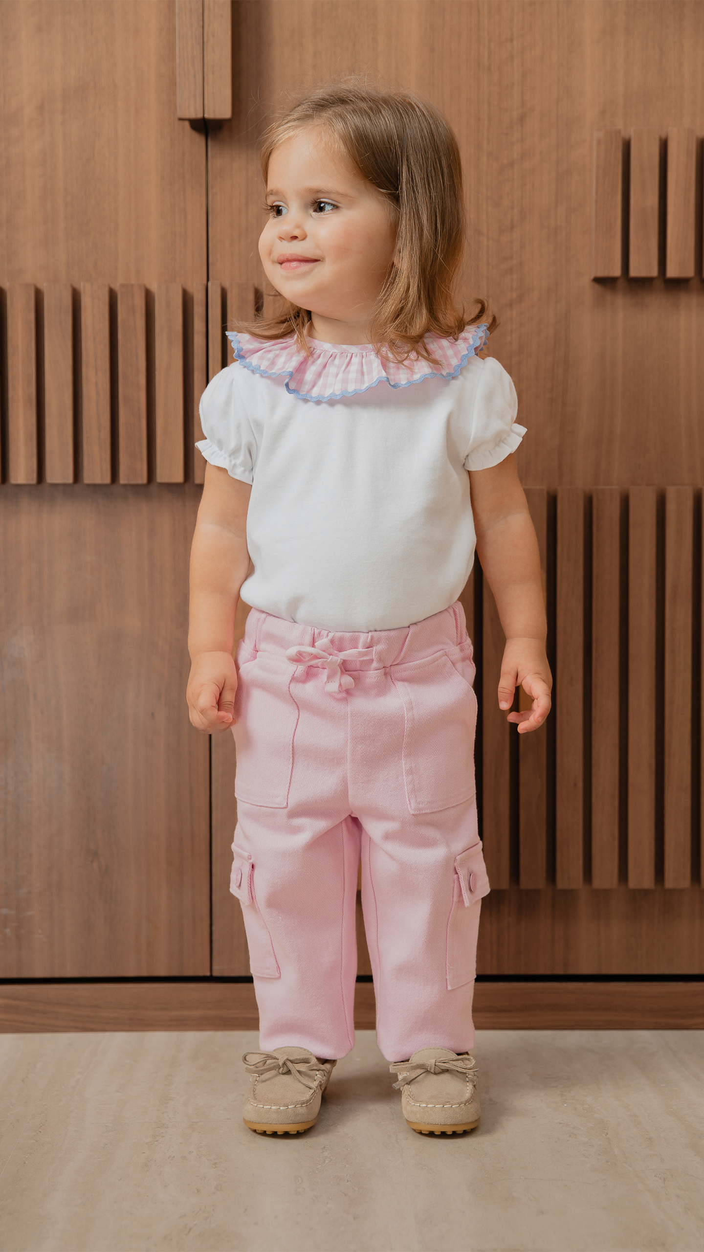 PANTALÓN CARGO DE TWILL ROSADO CON ELÁSTICO EN LA CINTURA PARA BEBE NIÑA
