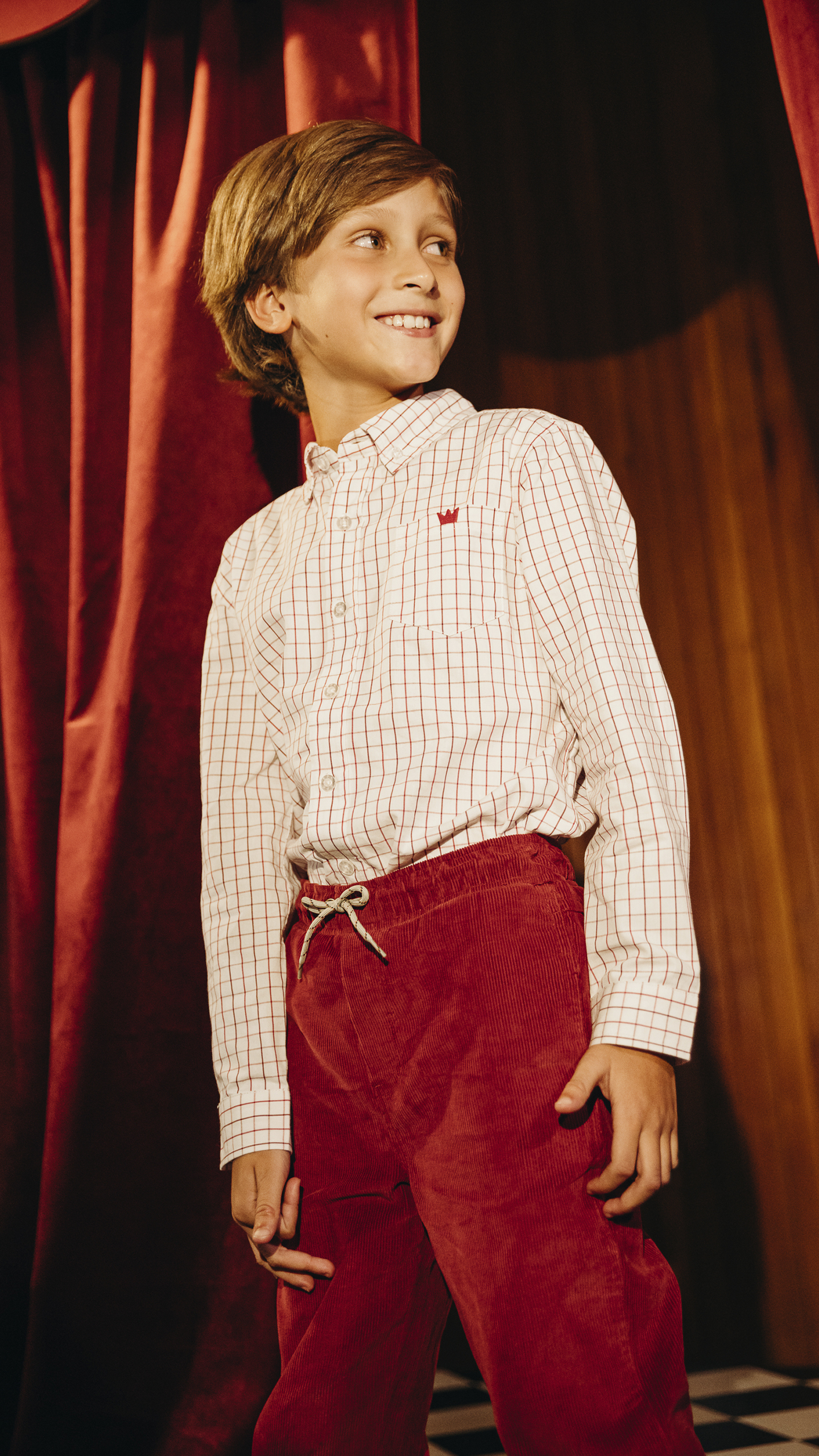 PANTALÓN DE CORDUROY ROJO CON CORDONES