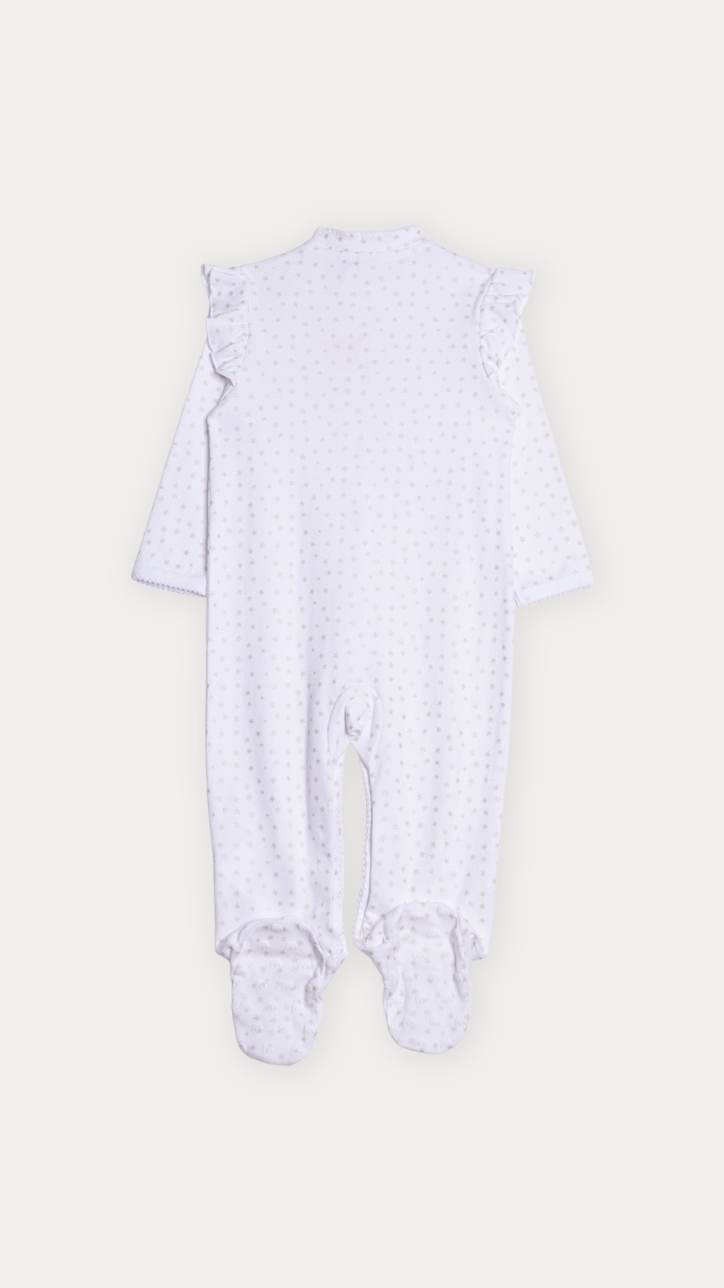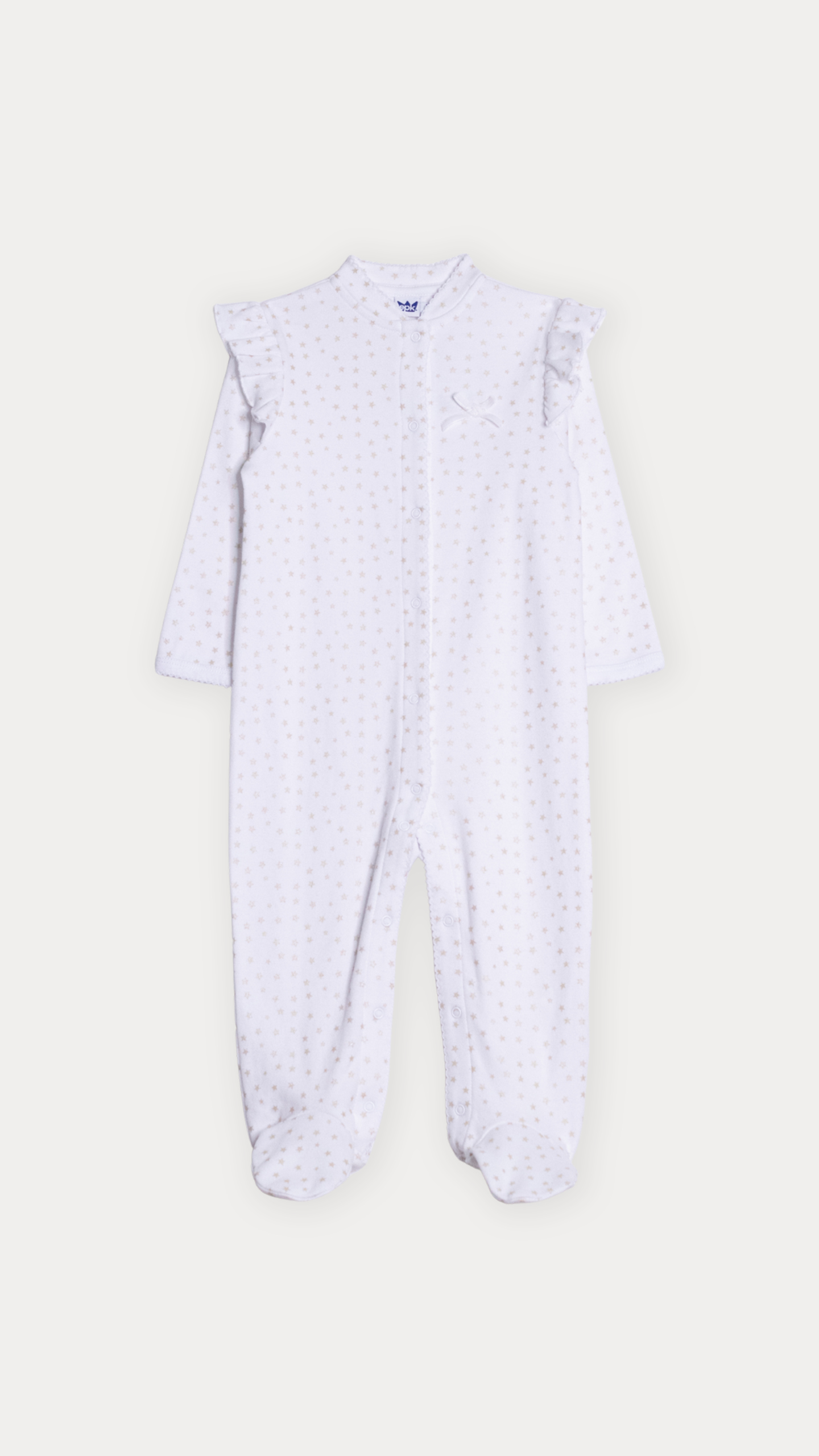 PIJAMA DE ALGODÓN CREMA CON ESTAMPADO DE ESTRELLAS DORADAS PARA BEBE NIÑA