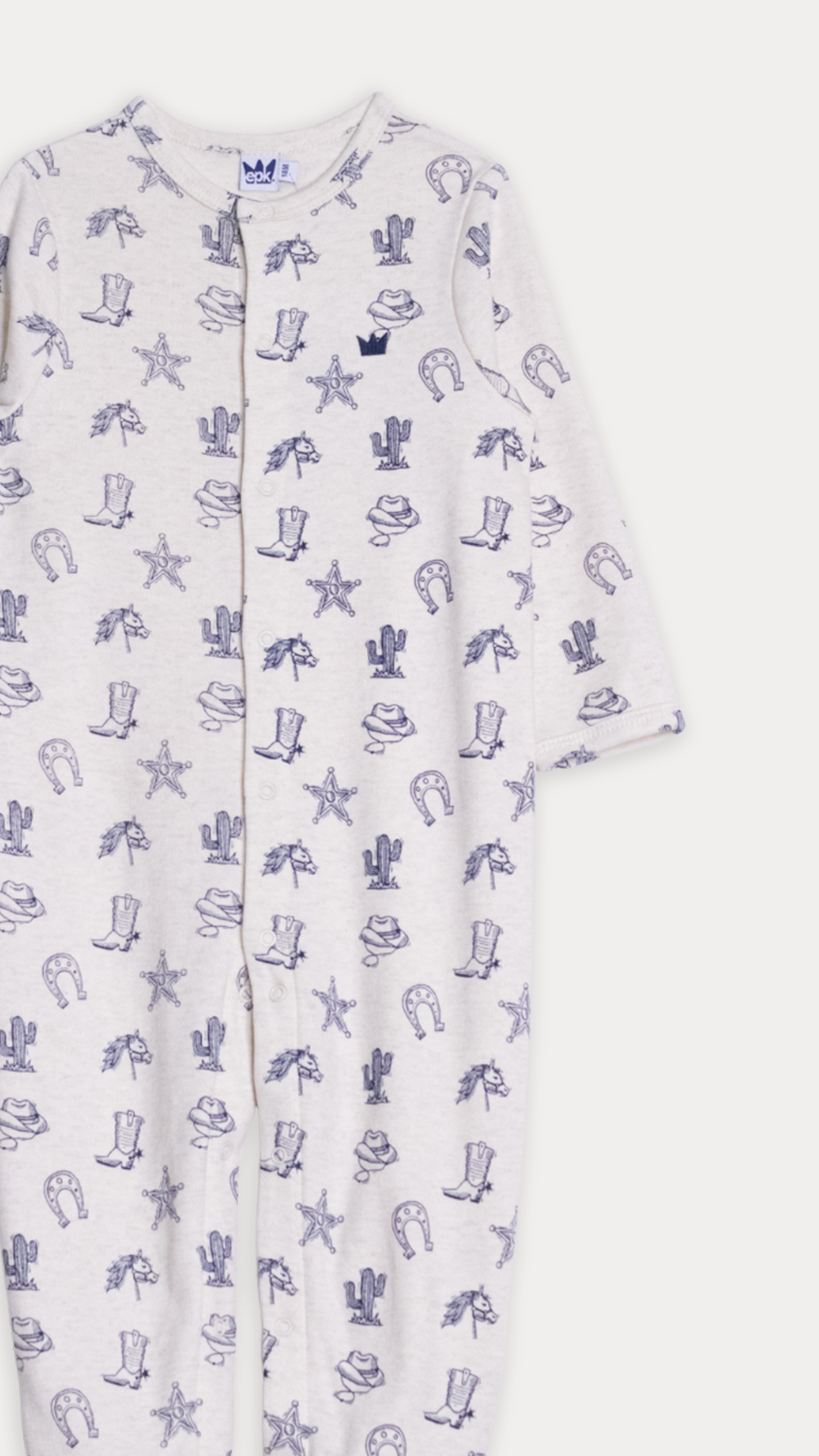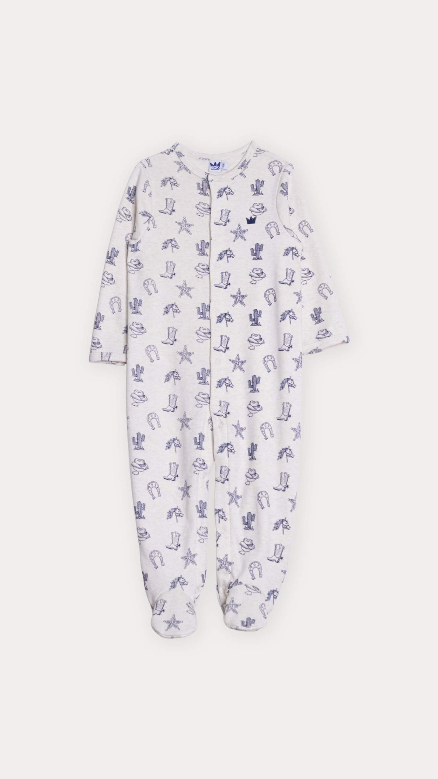 PIJAMA DE ALGODÓN CREMA CON ESTAMPADO VAQUERO EN AZUL MARINO PARA BEBE NIÑO