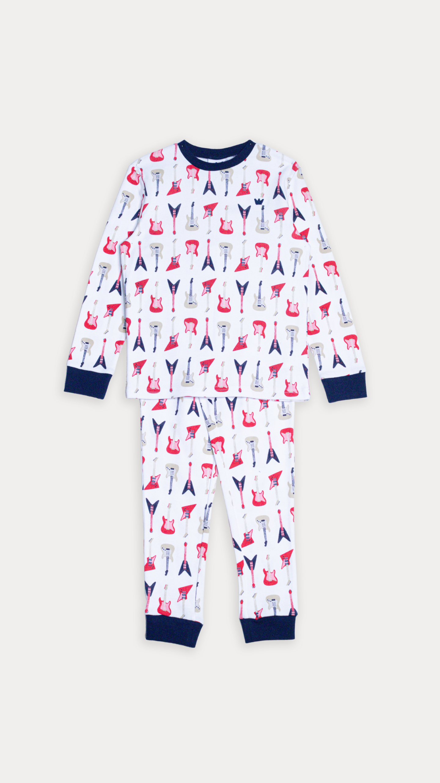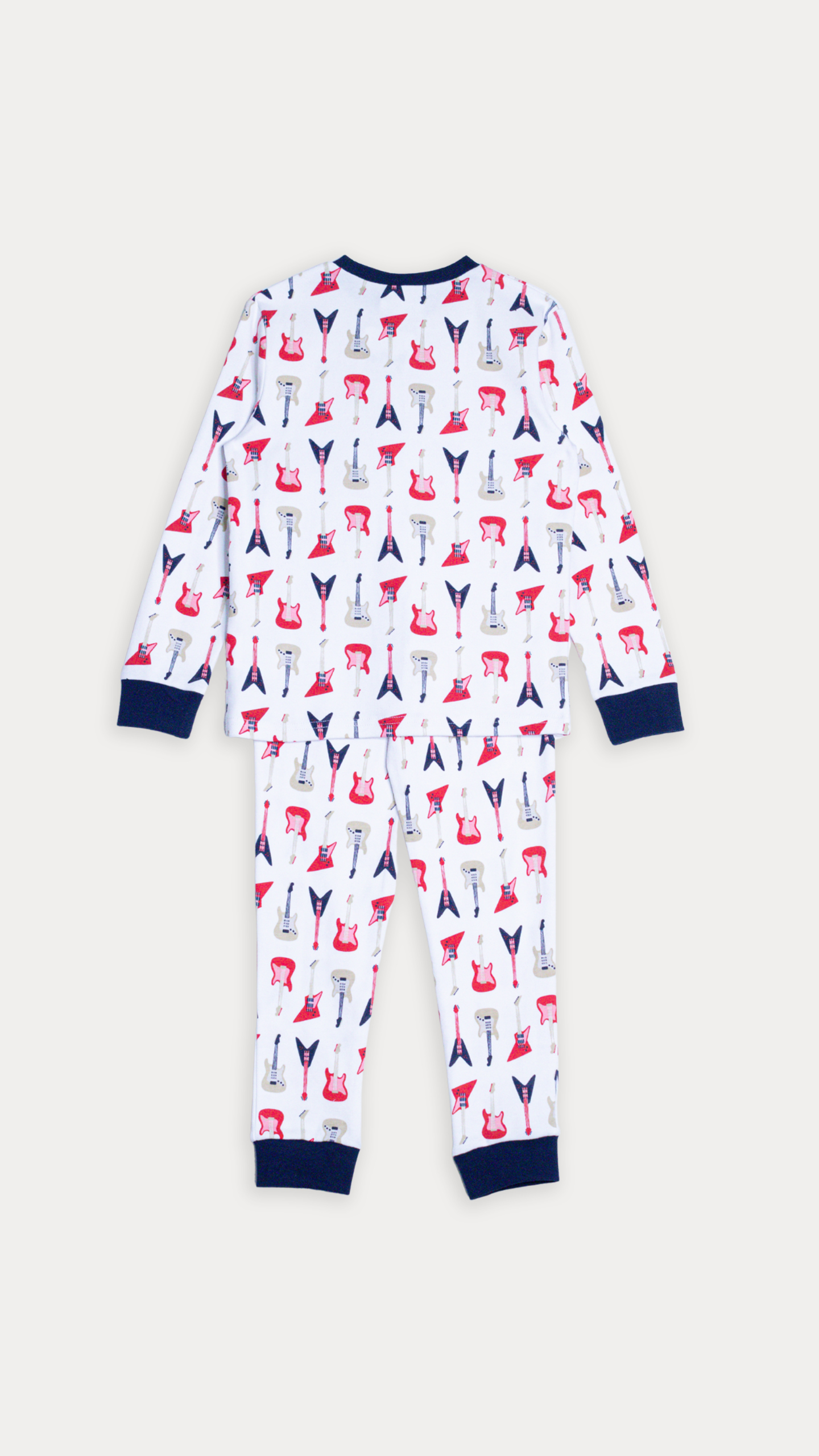 PIJAMA DE ALGODÓN BLANCO CON ESTAMAPADO DE GUITARRAS PARA NIÑO