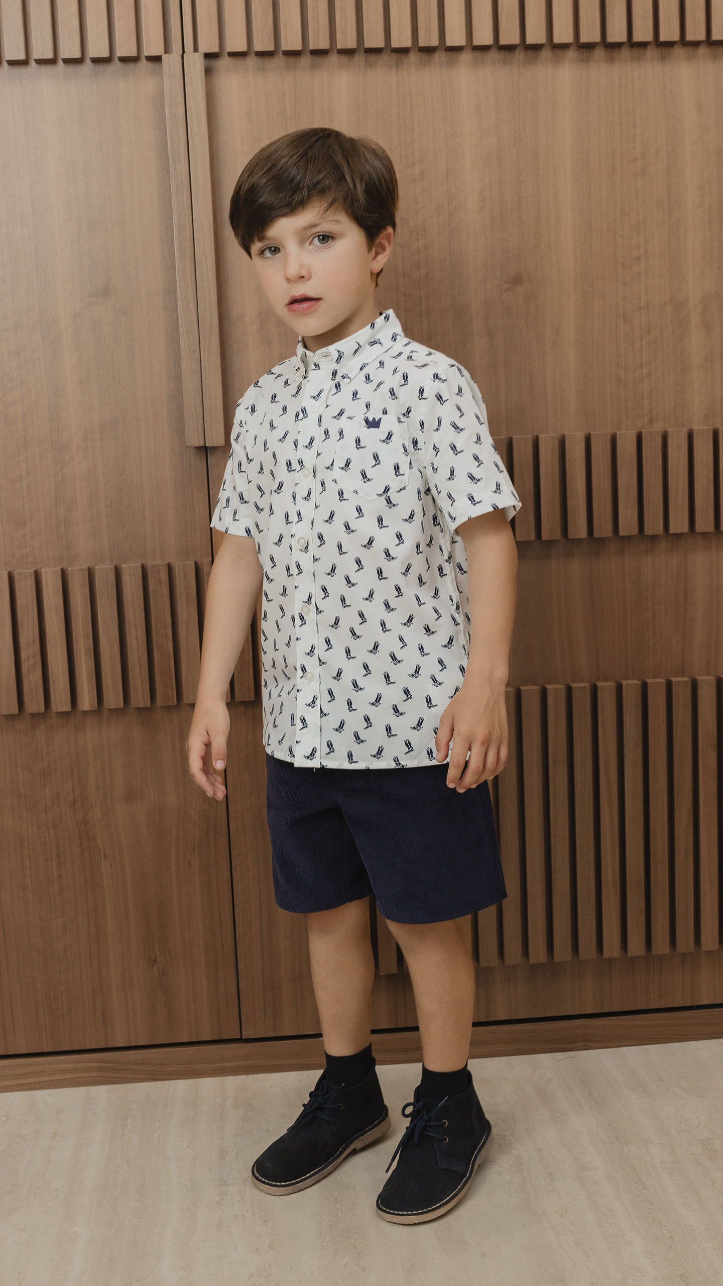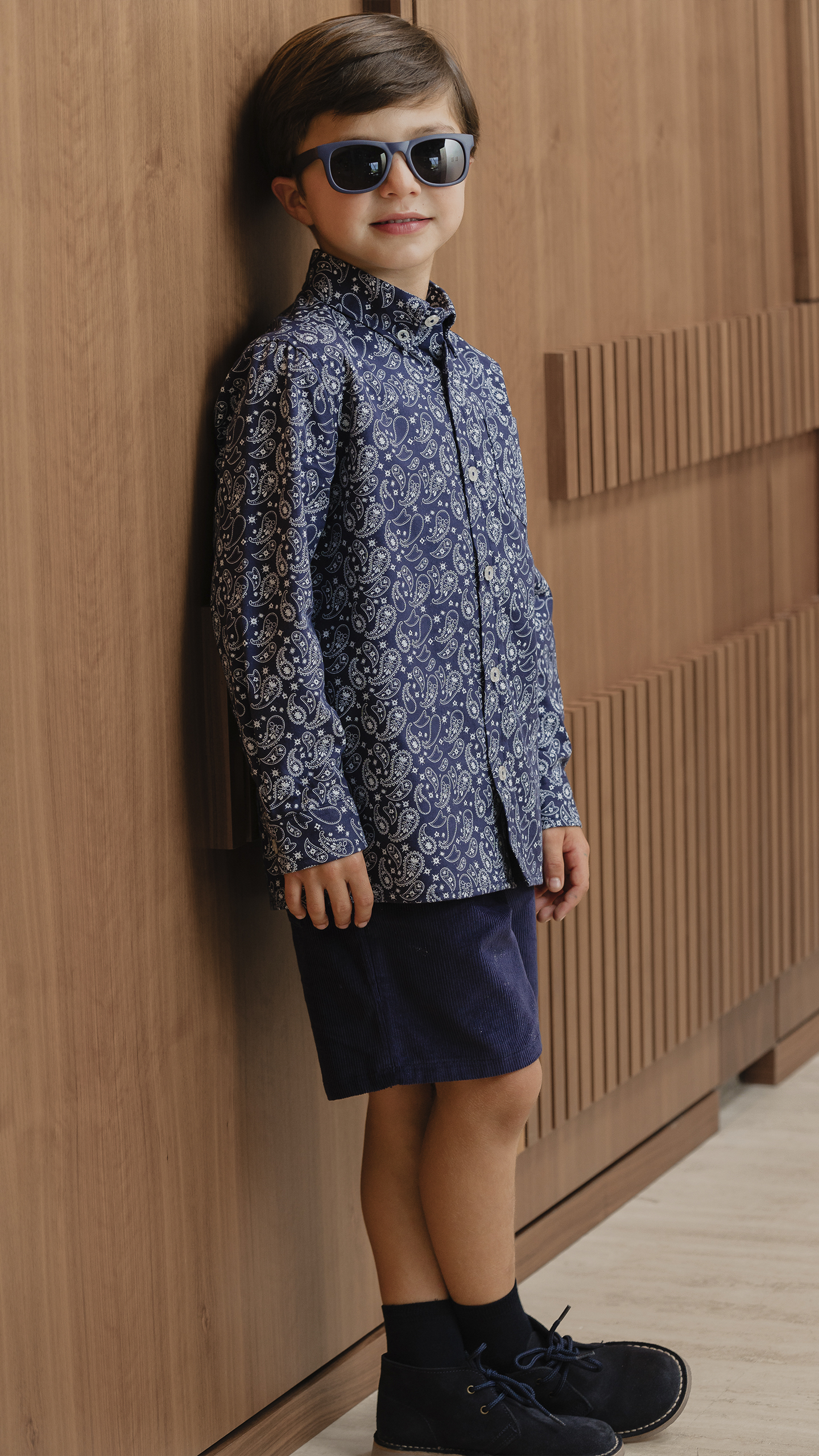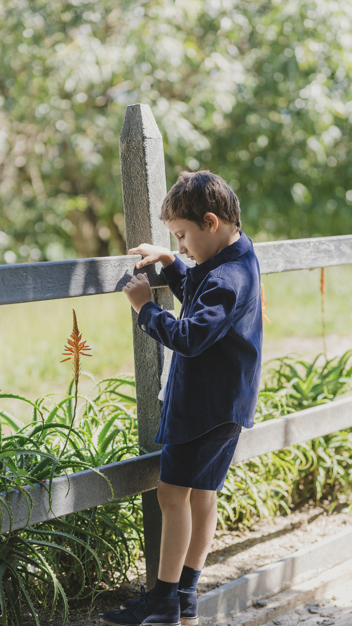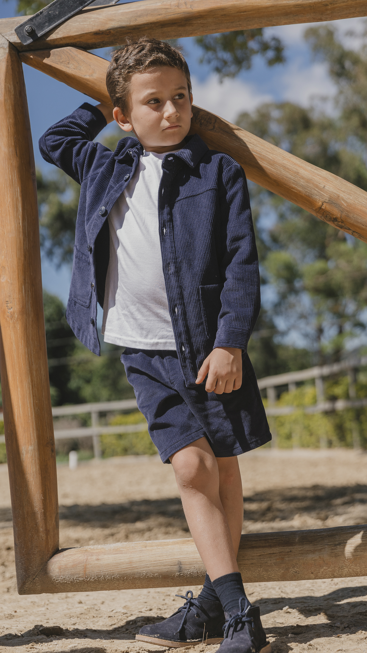 SHORT DE CORDUROY AZUL OSCURO CON ELÁSTICO EN LA CINTURA