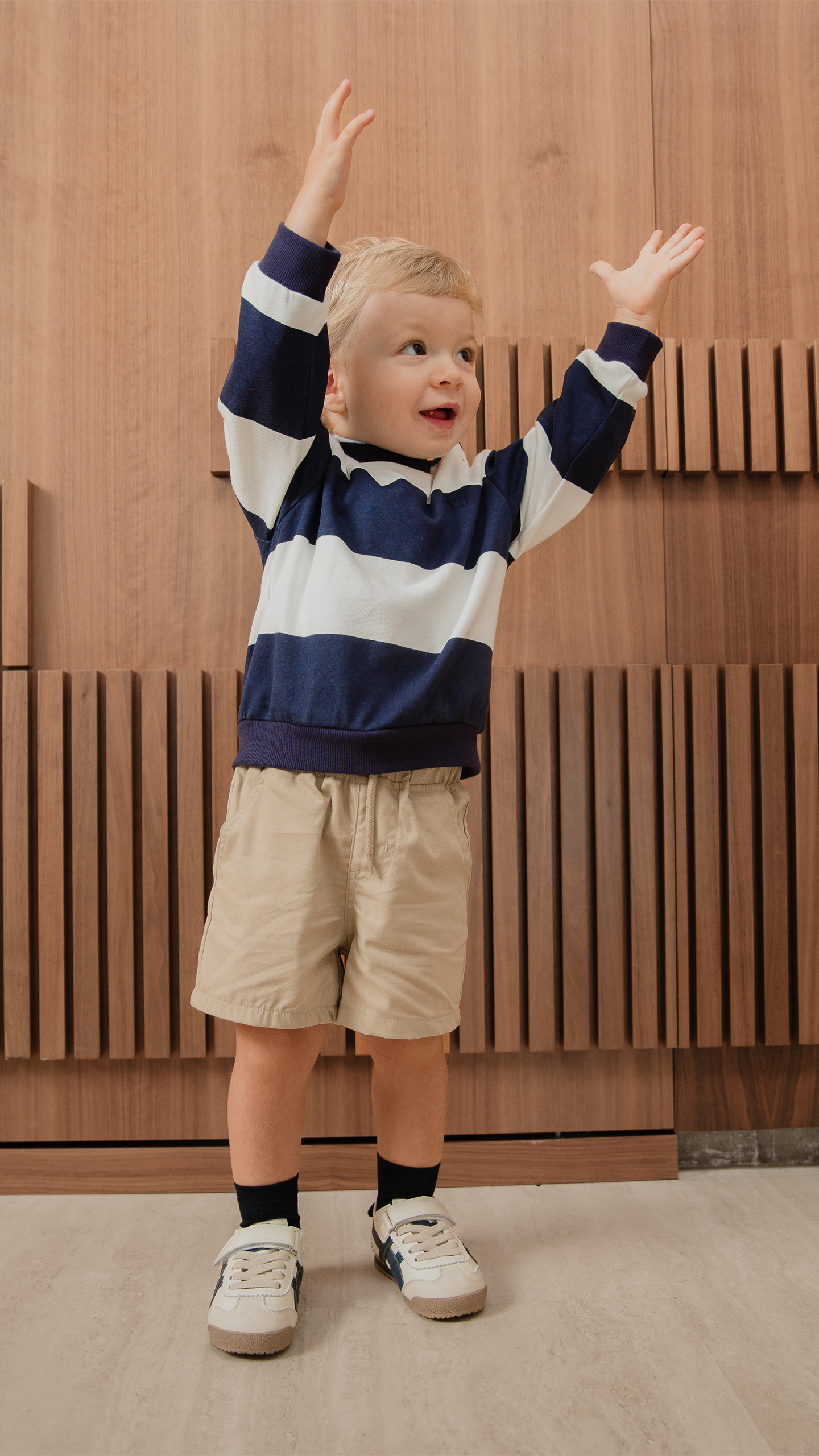 SHORT DE TWILL BEIGE CON ELÁSTICO EN LA CINTURA PARA BEBE NIÑO