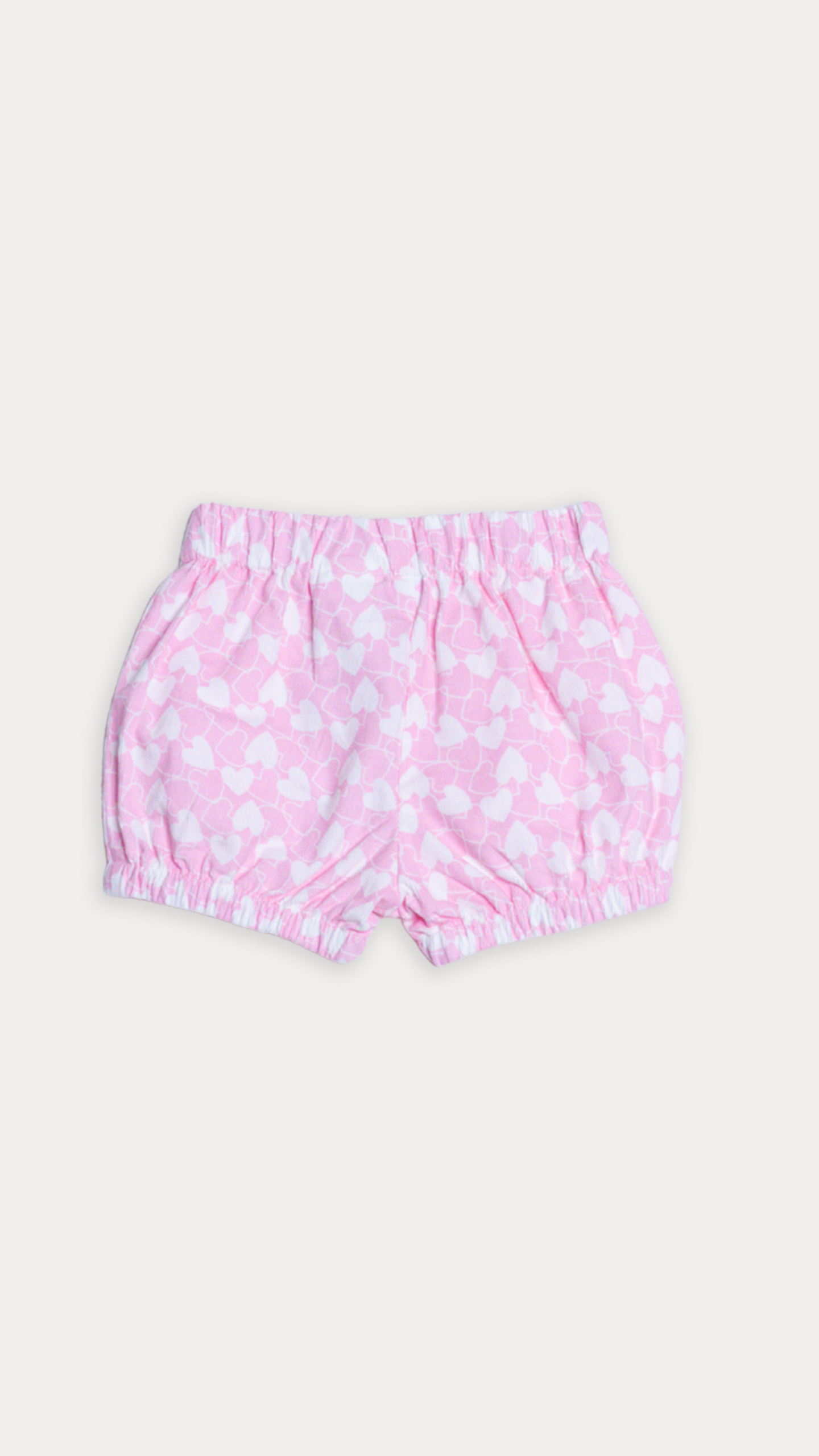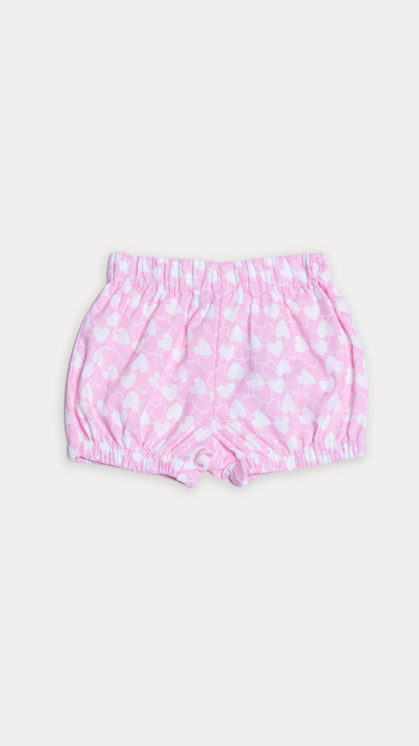 SHORT DE CORDUROY ROSADOS CON ESTAMPADO DE CORAZONES BLANCOS PARA BEBE NIÑA
