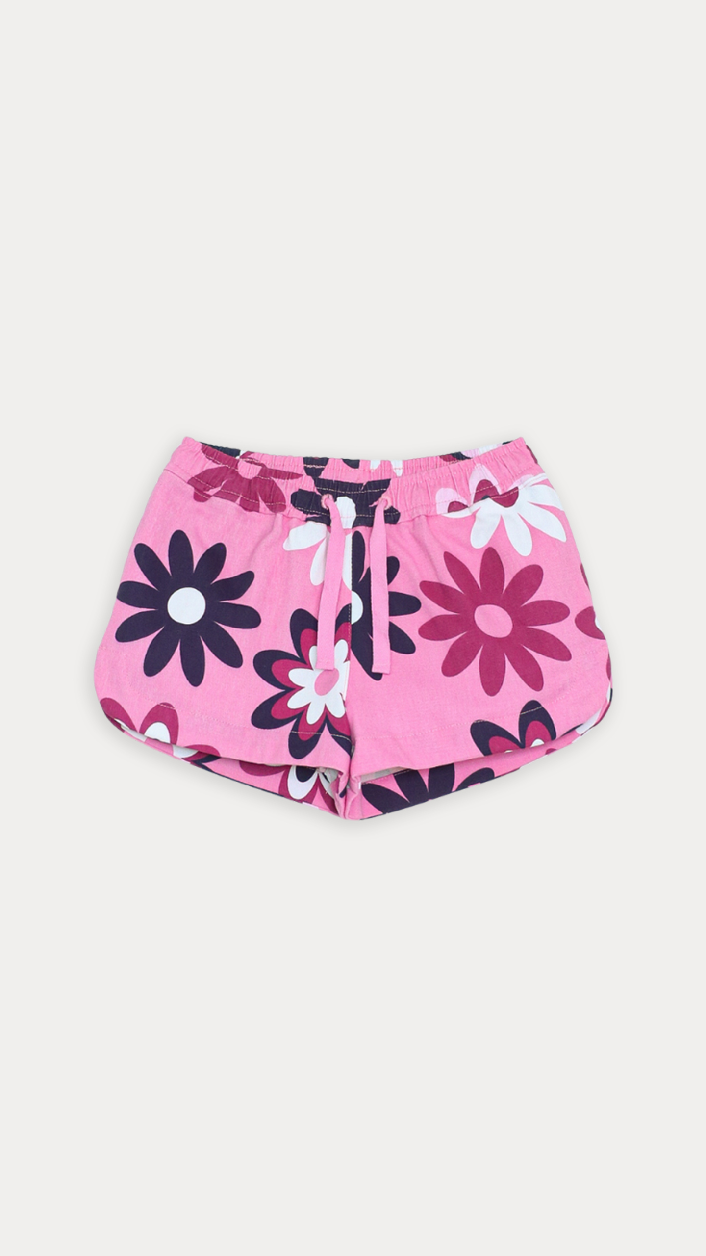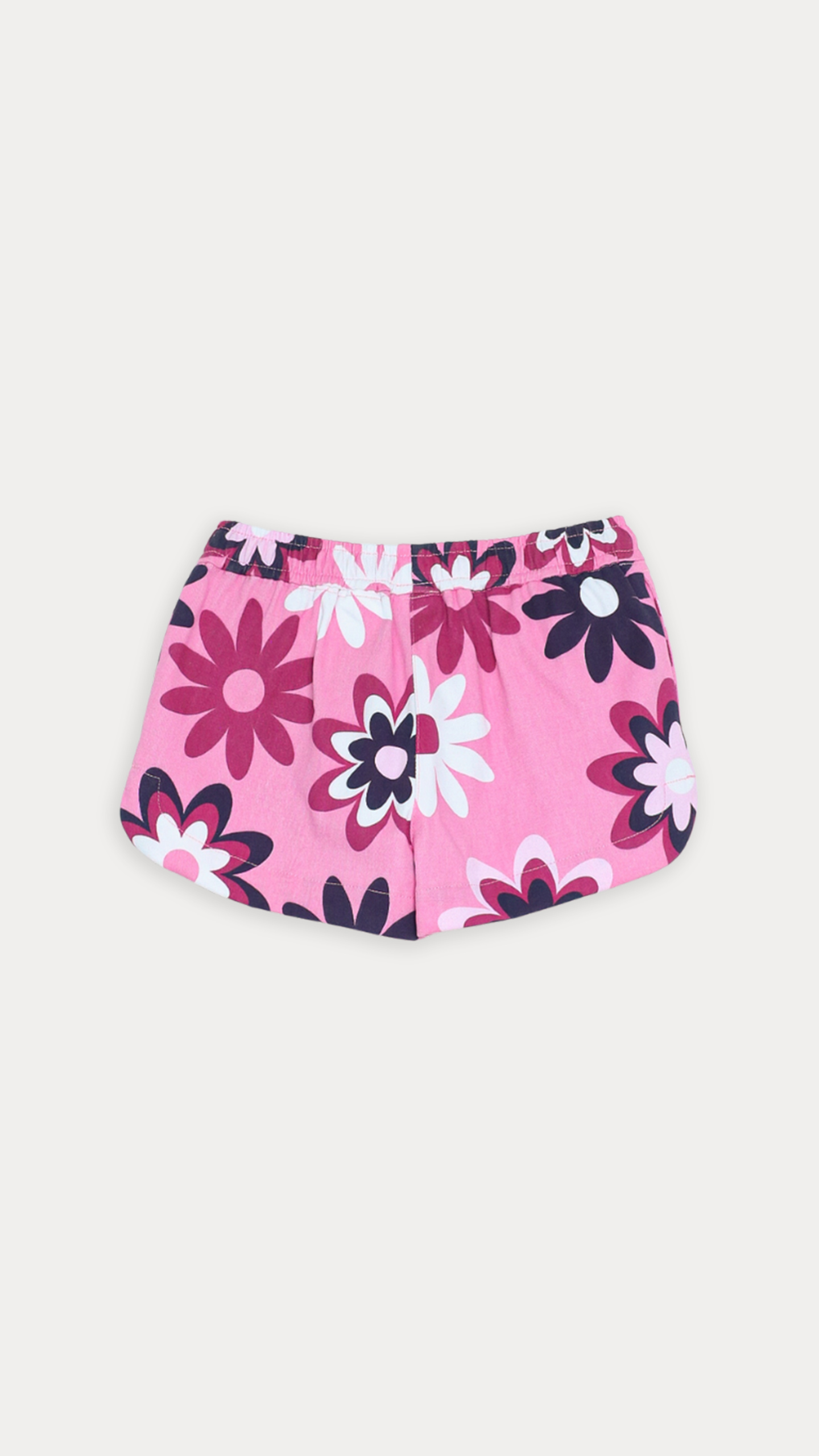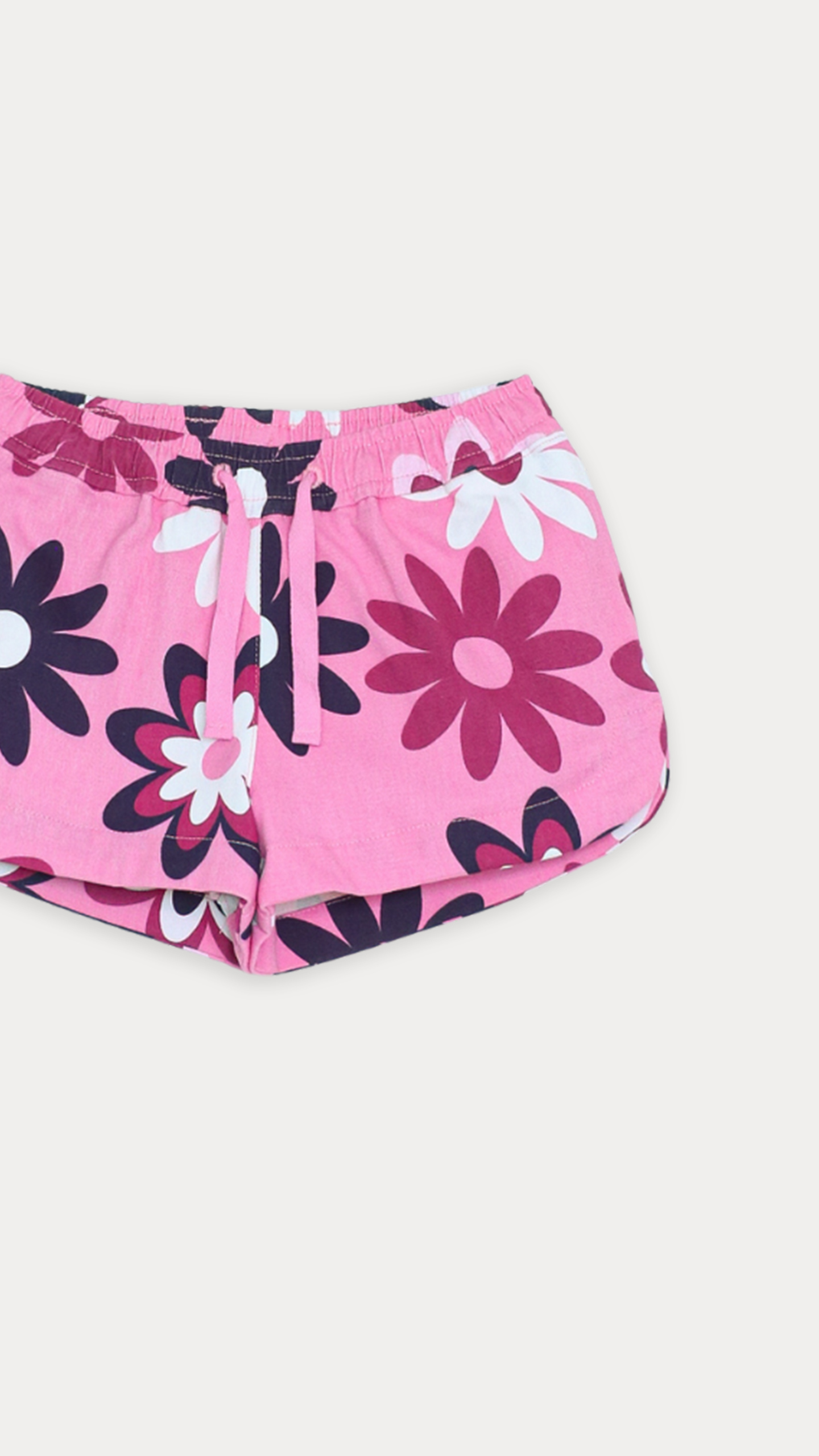 SHORT DE TWILL ROSADO CON ESTAMPADO DE FLORES GRANDES PARA NIÑA