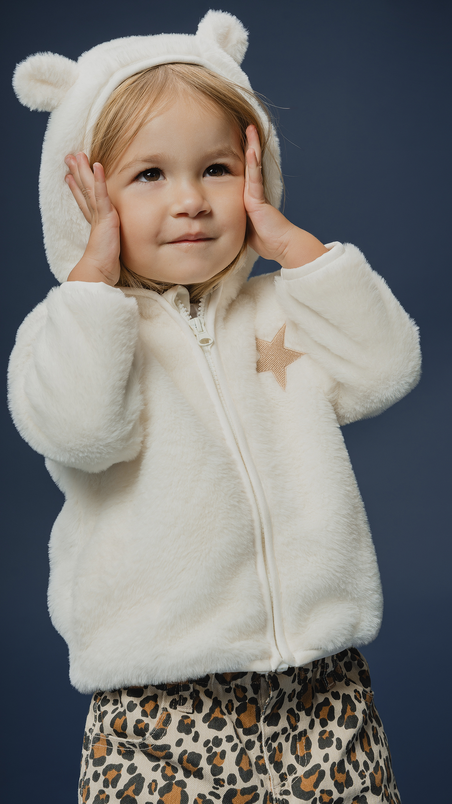 SUETER DE FELPA CREMA CON BORDADO DE ESTRELLA DORADO METÁLICO Y CIERRE PARA BEBE NIÑA