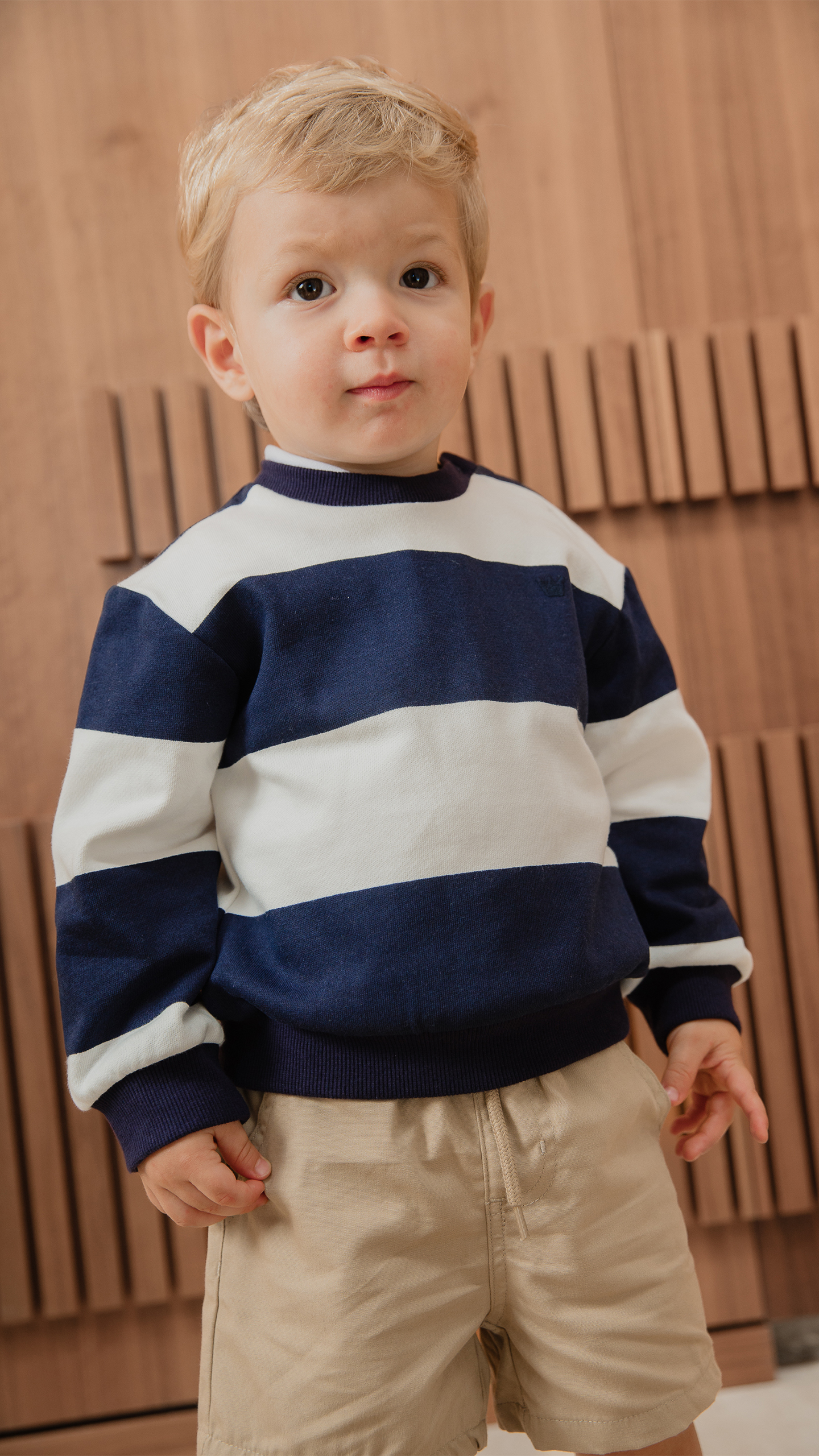 SUÉTER DE ALGODÓN CON ESTAMPADO DE RAYAS AZUL MARINO Y CREMA PARA BEBE NIÑO