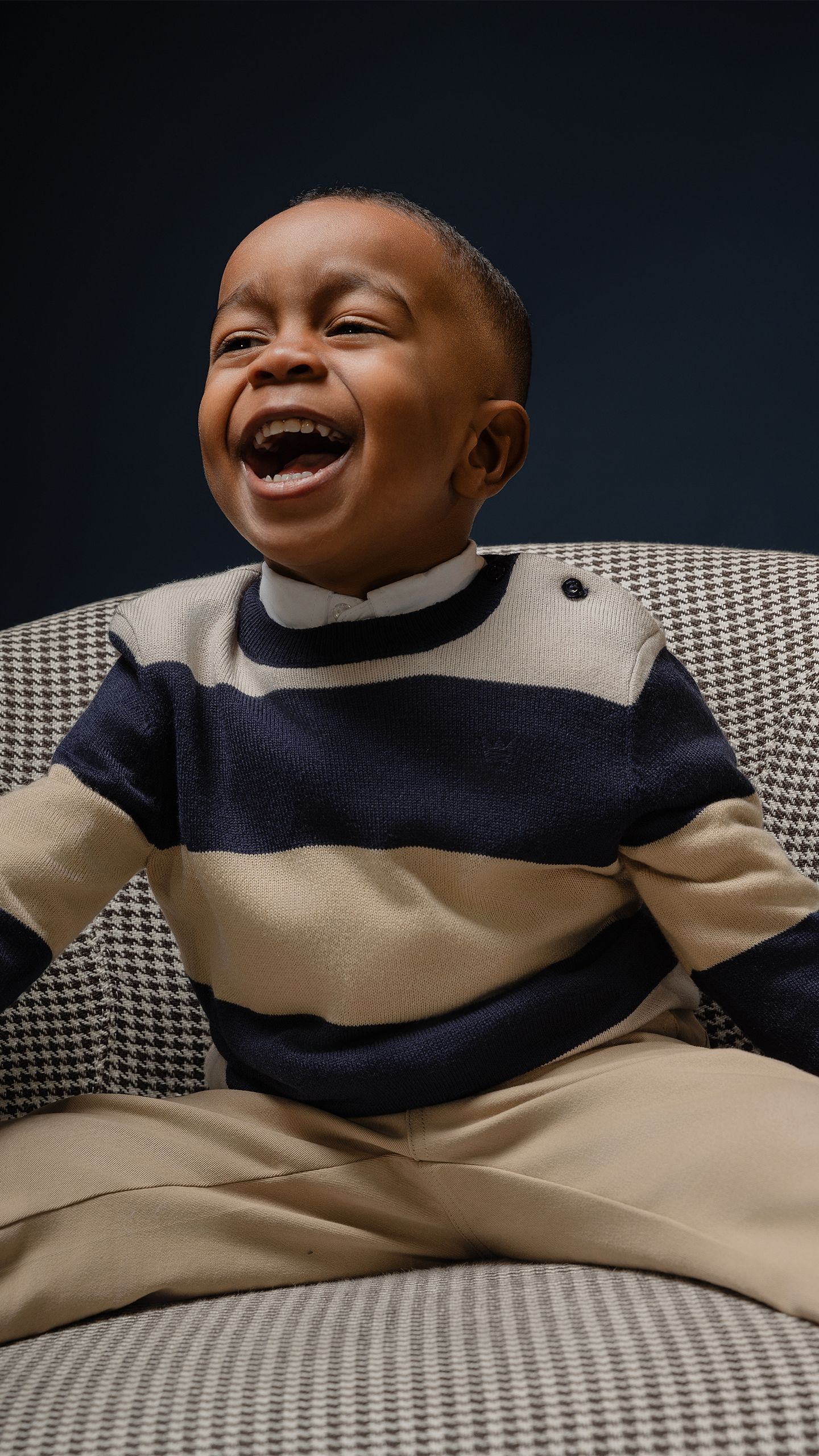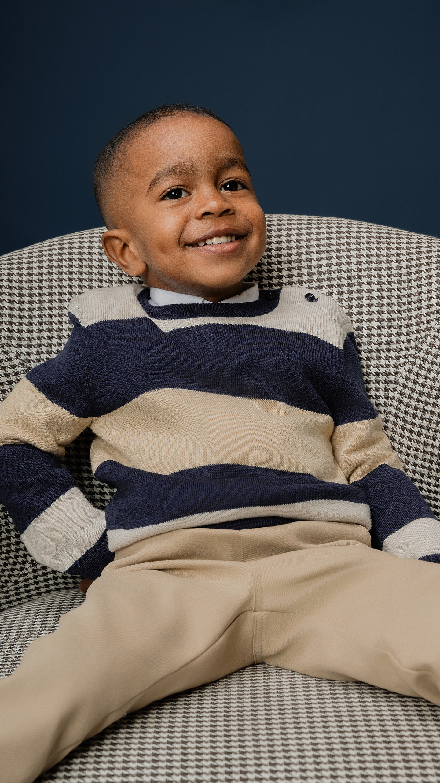 SUÉTER TEJIDO DE RAYAS AZUL, ARENA Y BIEGE PARA BEBE NIÑO