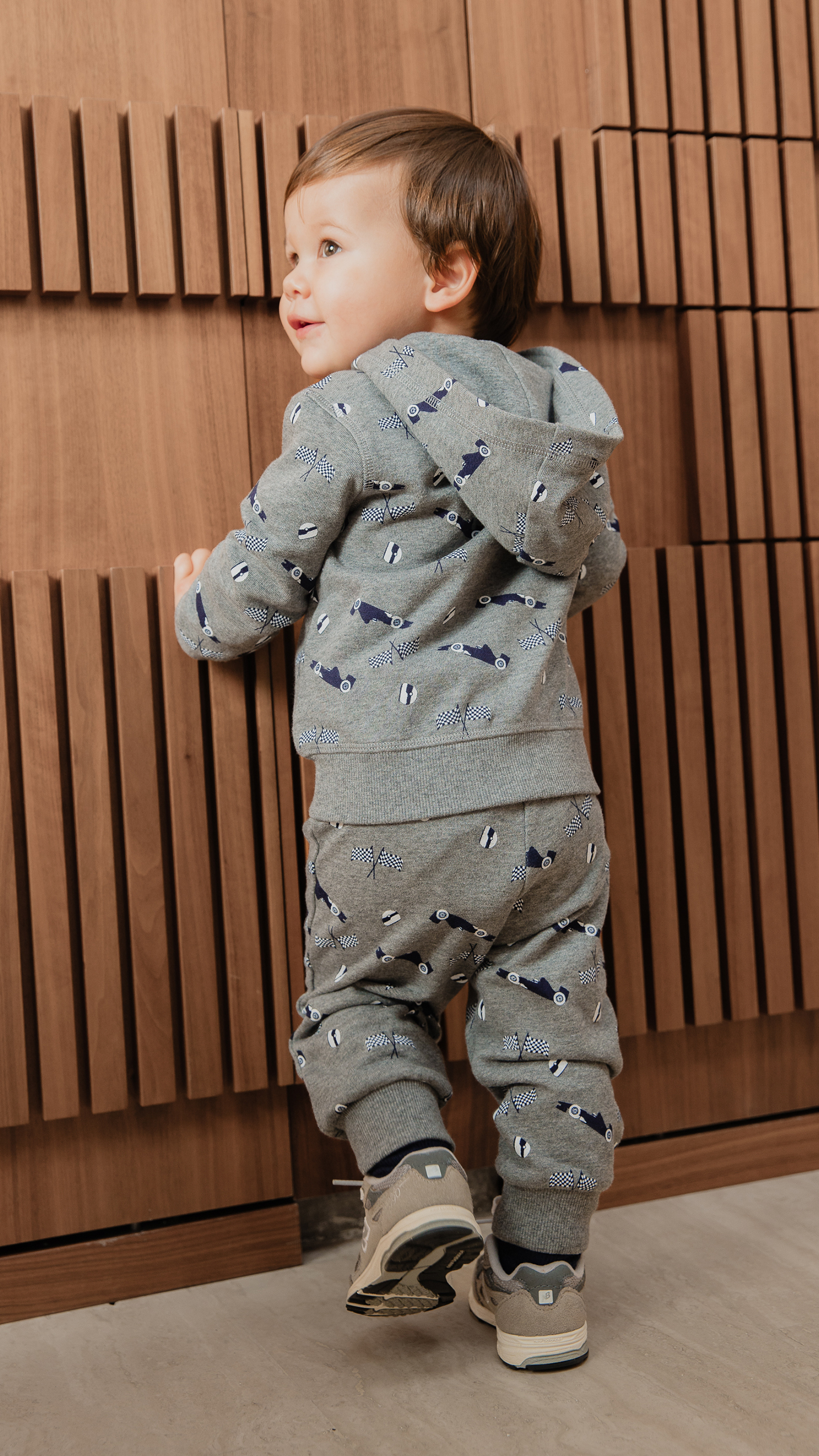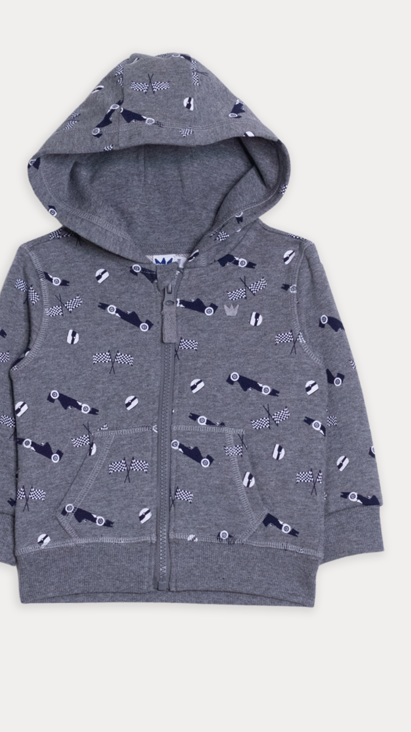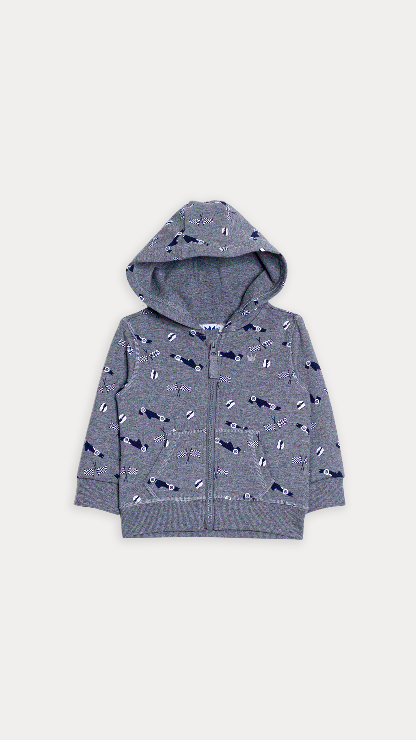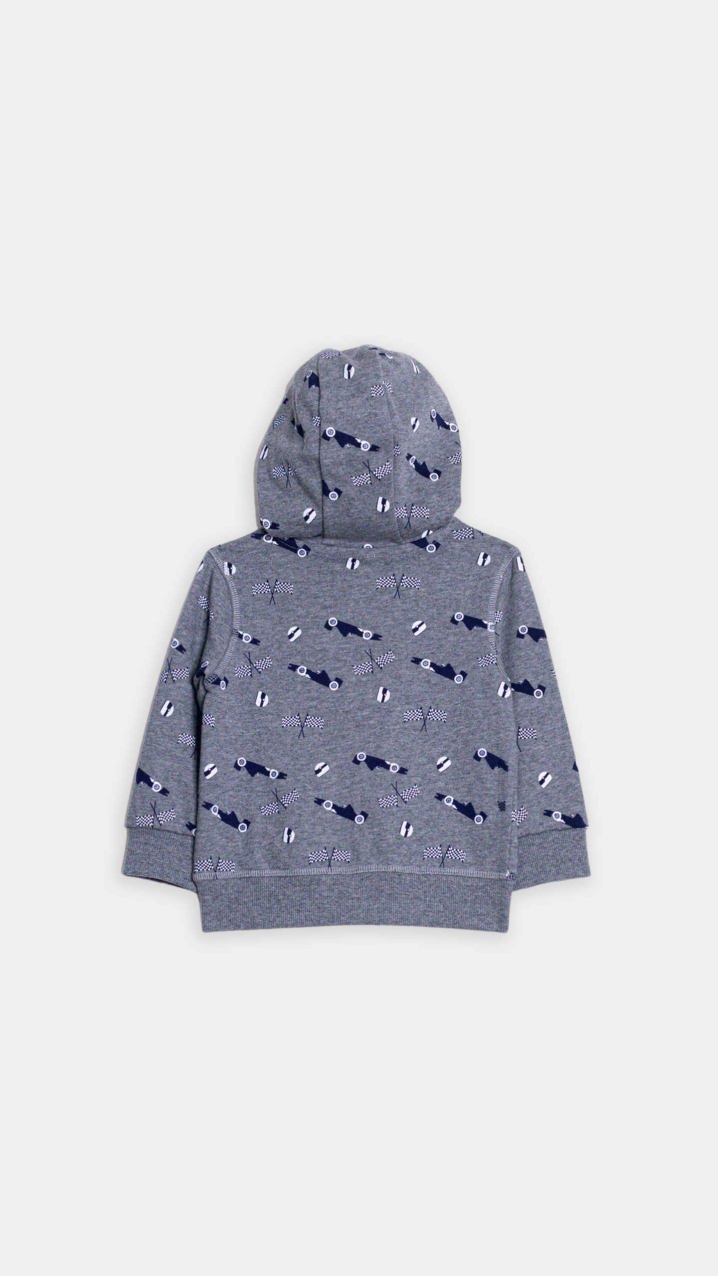SUÉTER DE ALGODÓN GRIS CLARO CON ESTAMPADO DE CARRITOS PARA BEBE NIÑO