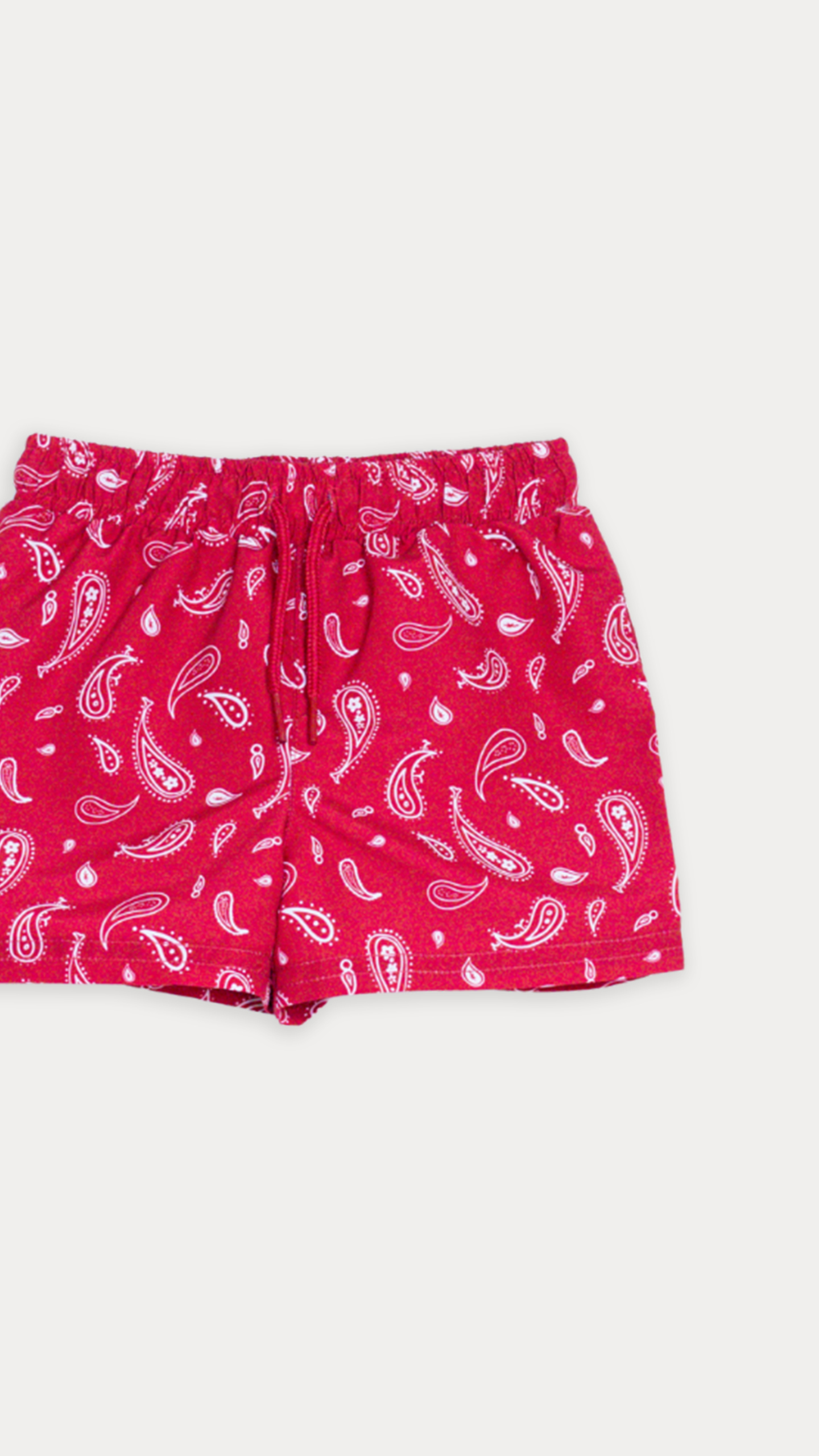 TRAJE DE BAÑO ROJO CON ESTAMPADO DE BACTERIAS BLANCAS PARA NIÑO