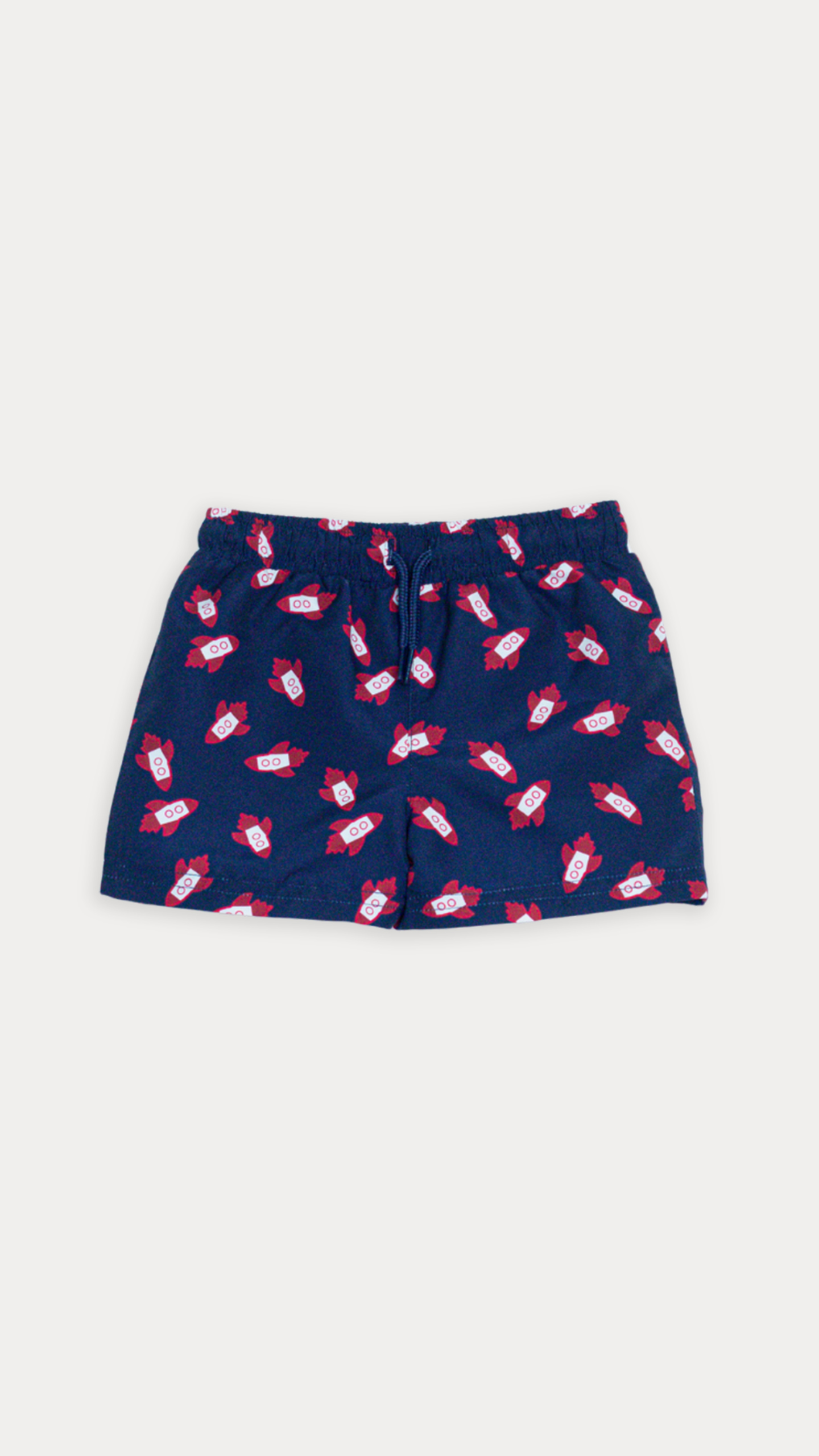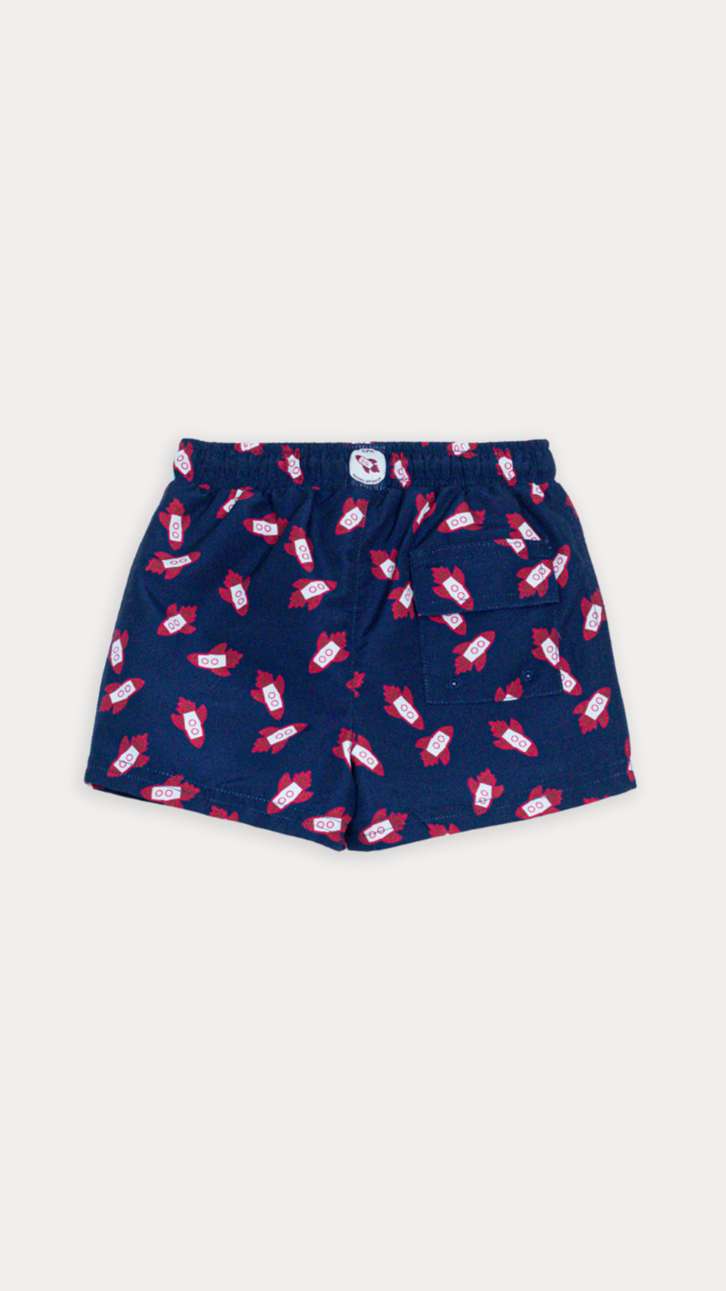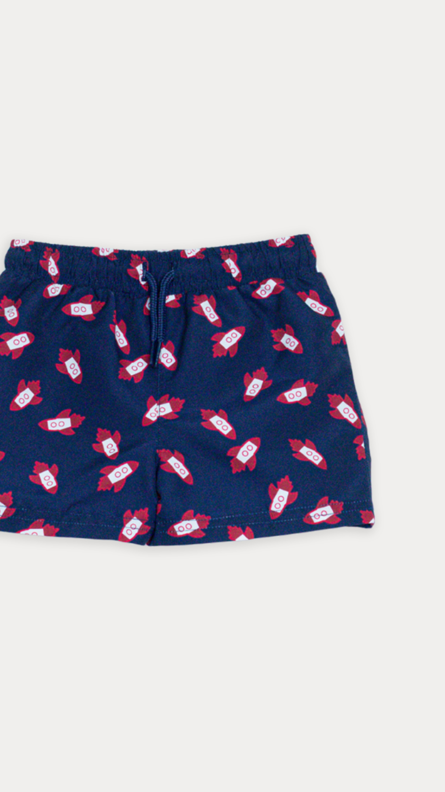 TRAJE DE BAÑO AZUL MARINO CON ESTAMPADO DE COHETES PARA BEBE NIÑO