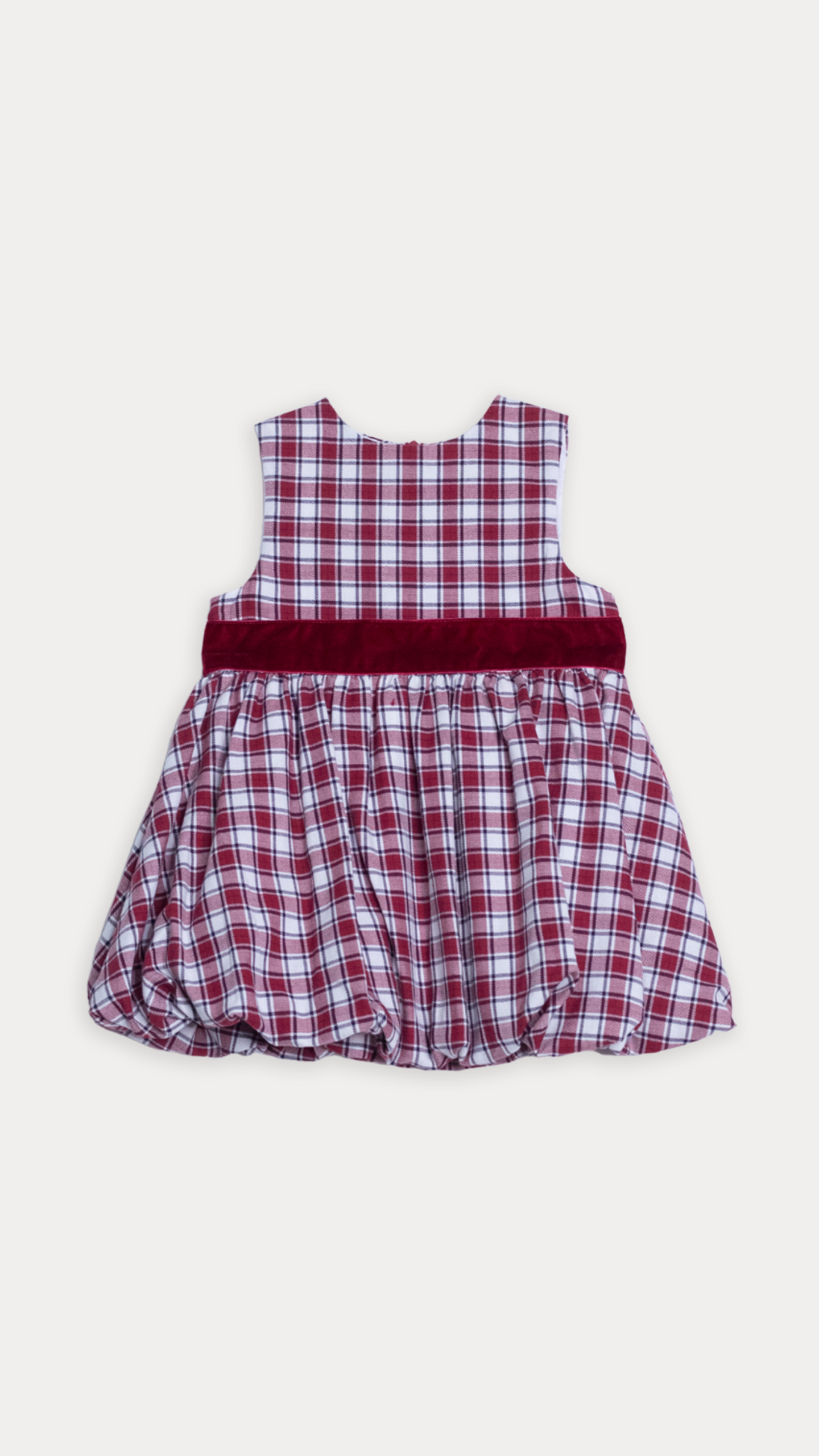 VESTIDO DE FLANNEL TWILL CON ESTAMPADO DE CUADROS ROJOS PARA BEBE NIÑA