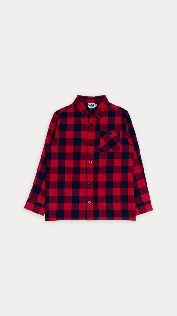 VESTIDO DE FLANNEL TWILL CON ESTAMPADO DE CUADROS VINOTINTO Y AZUL MARINO PARA BEBE NIÑA