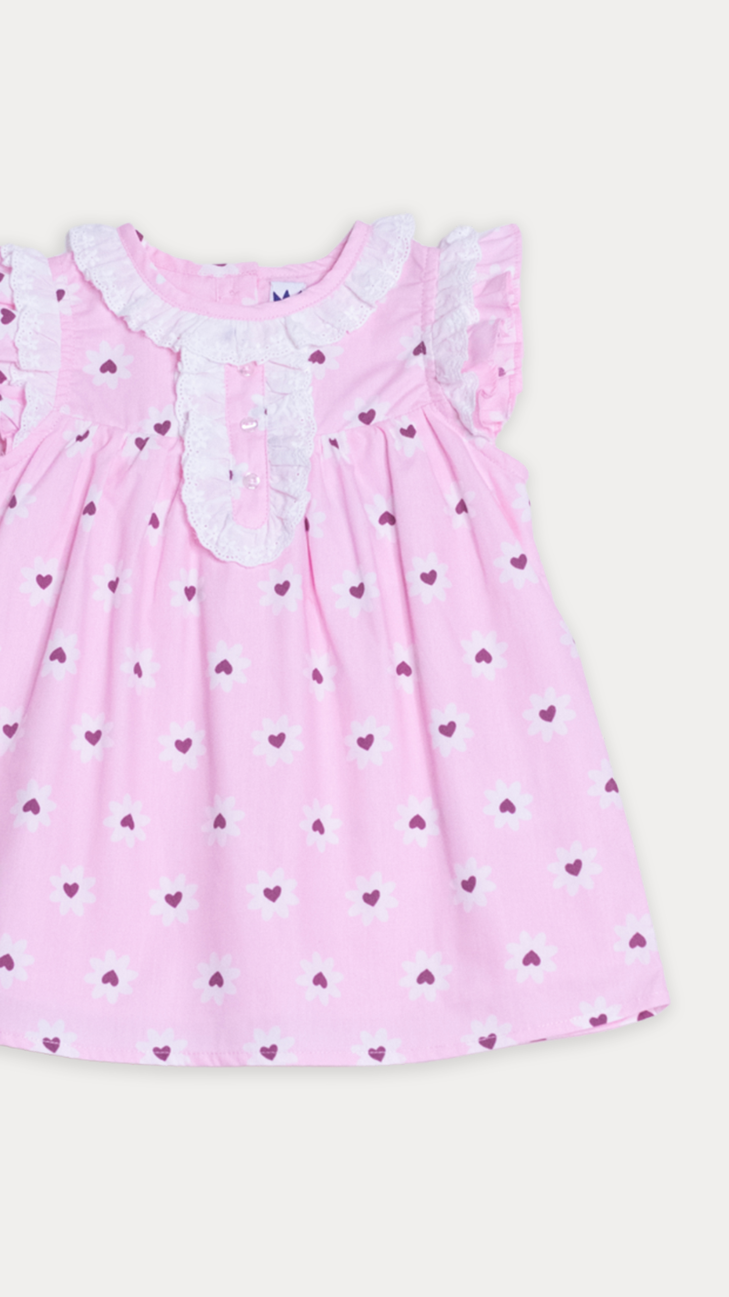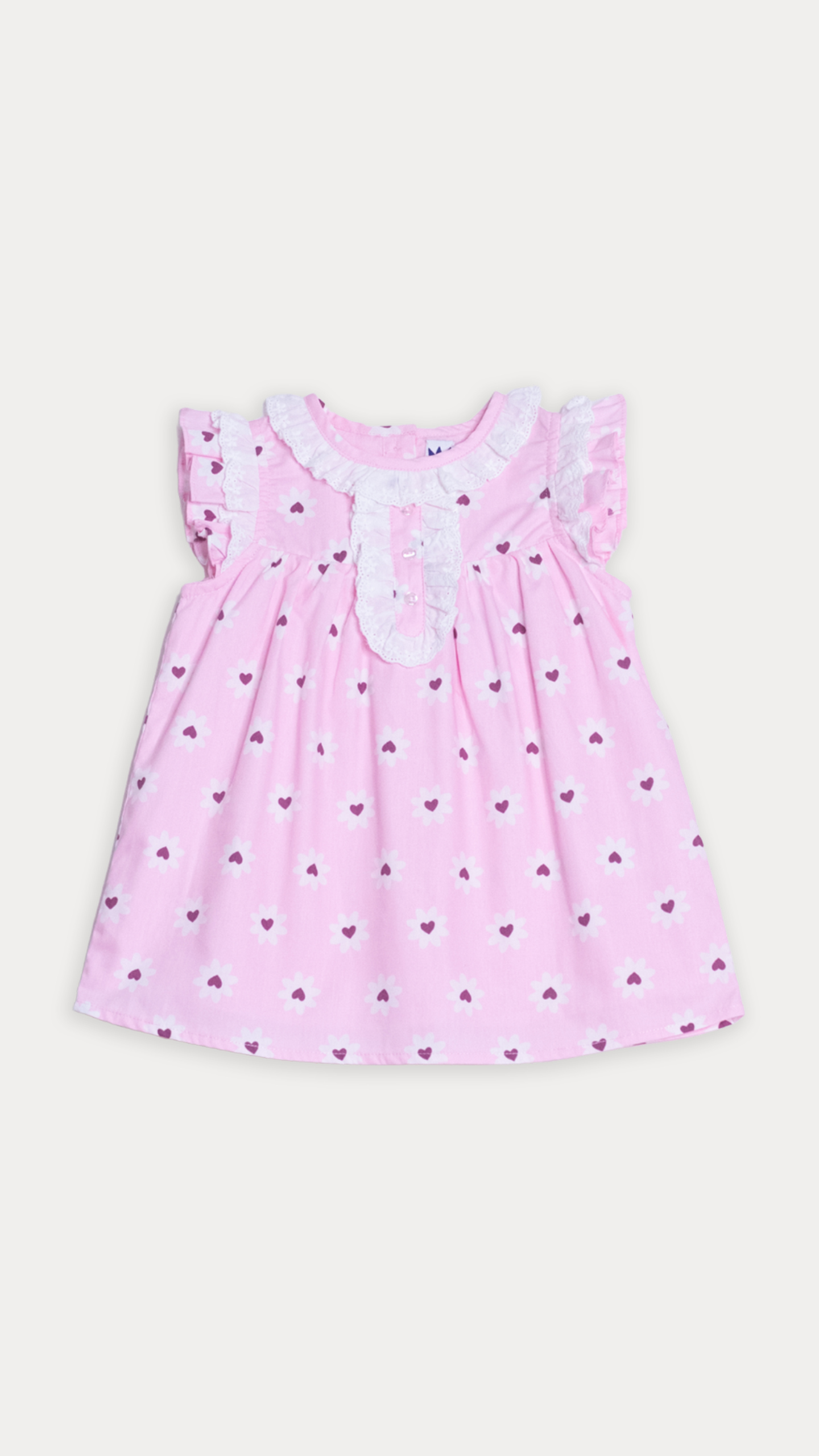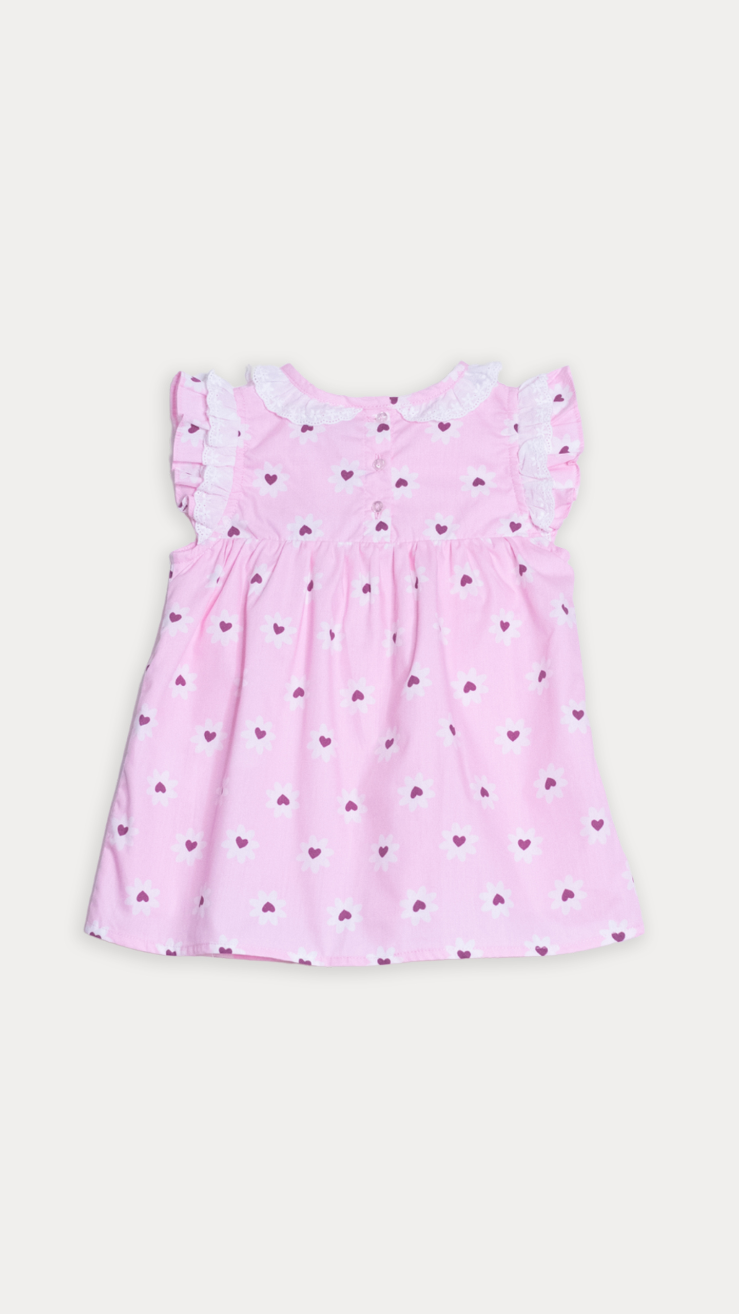 VESTIDO DE POPELINA ROSADO CON ESTAMPADO DE FLORES BLANCAS PARA BEBE NIÑA