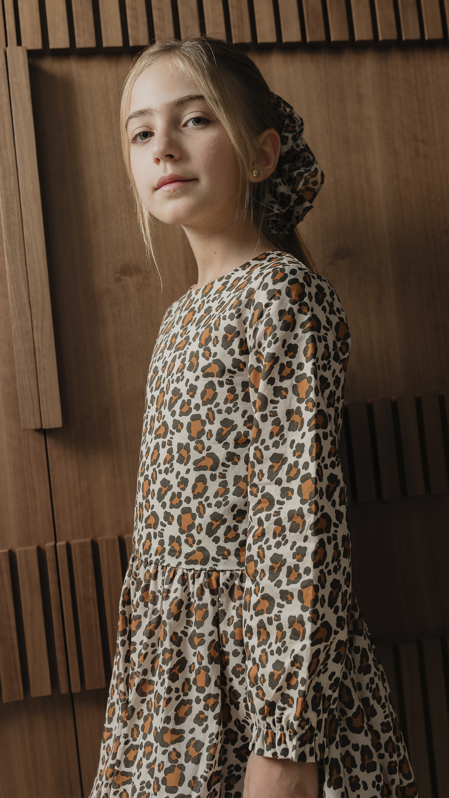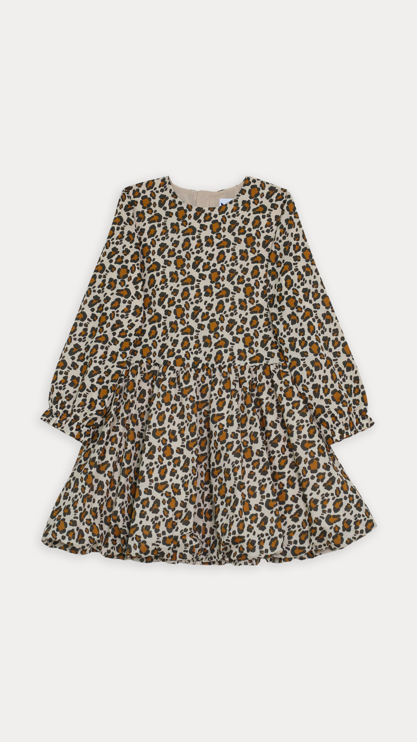 VESTIDO DE POPELINA LIGERA MANGA LARGA CON ESTAMPADO DE LEOPARDO PARA NIÑA