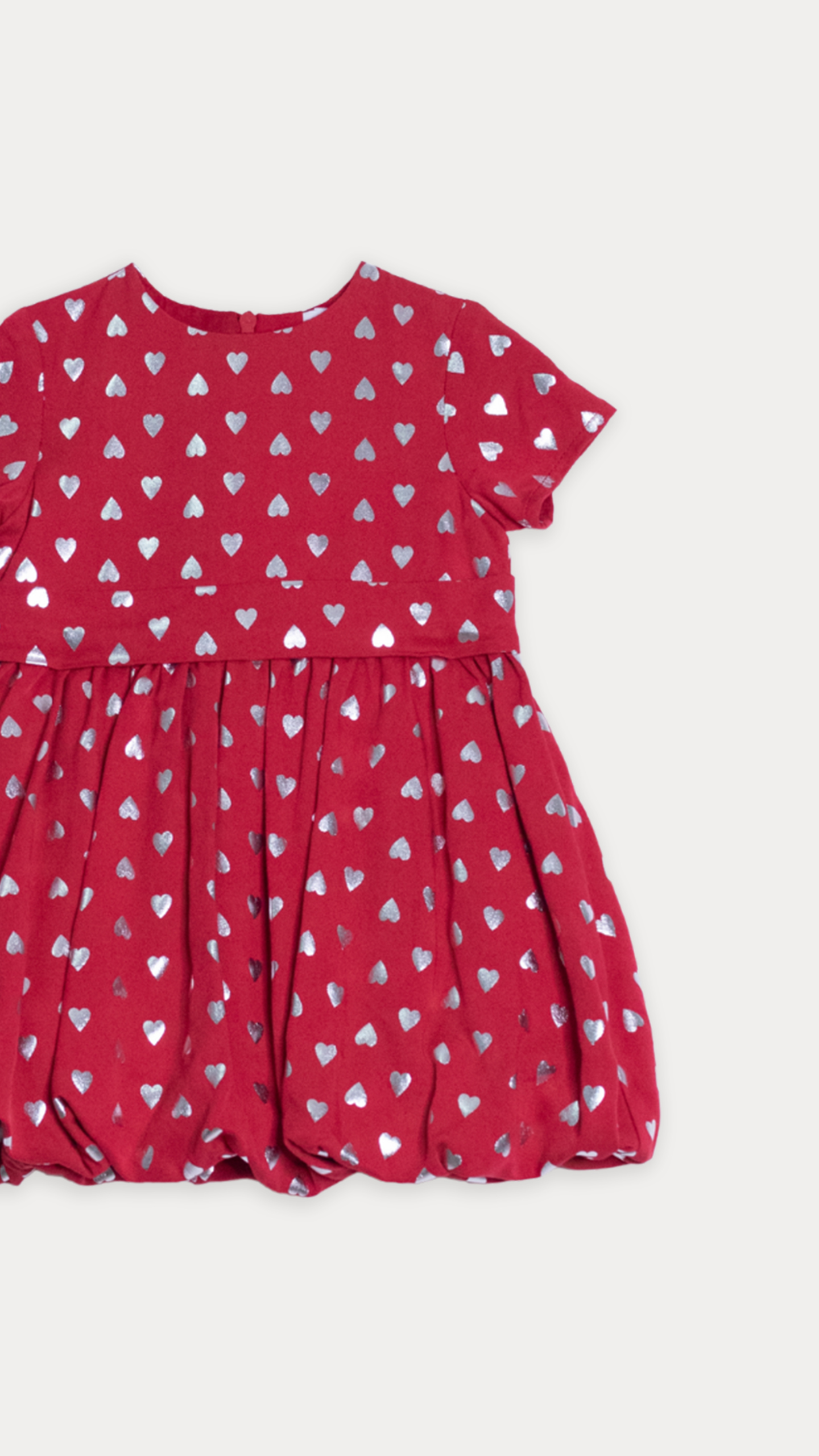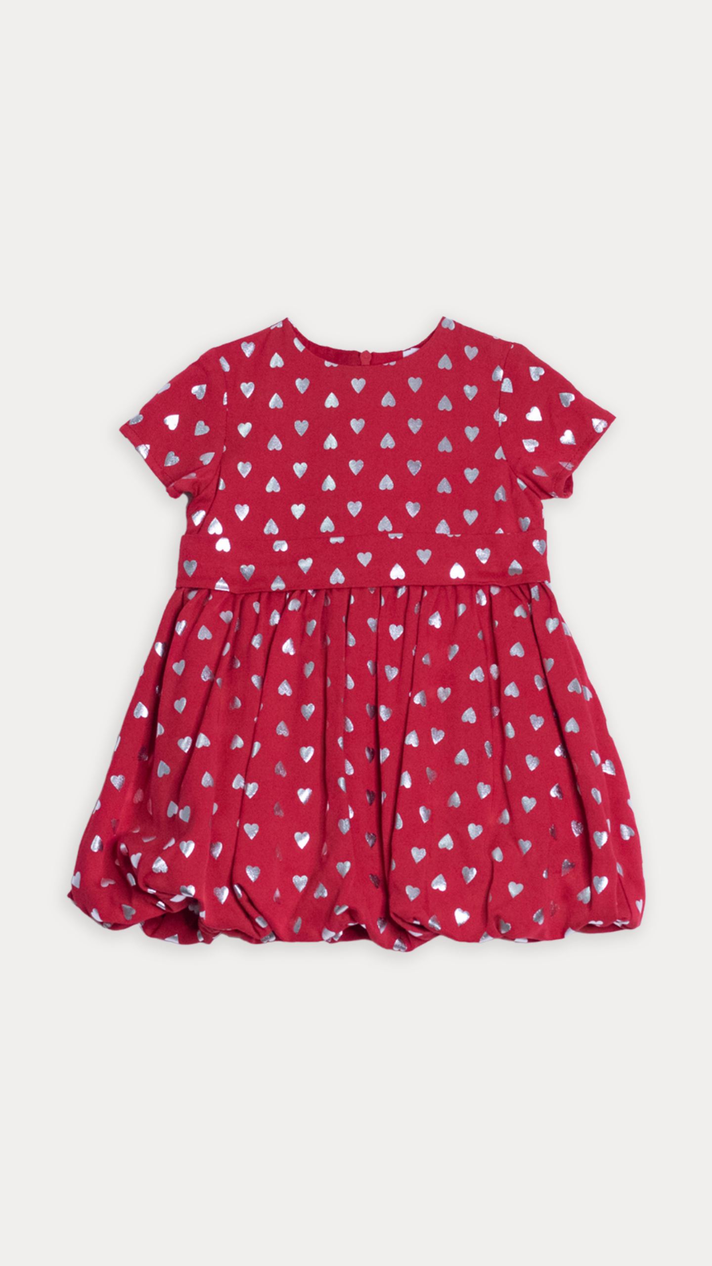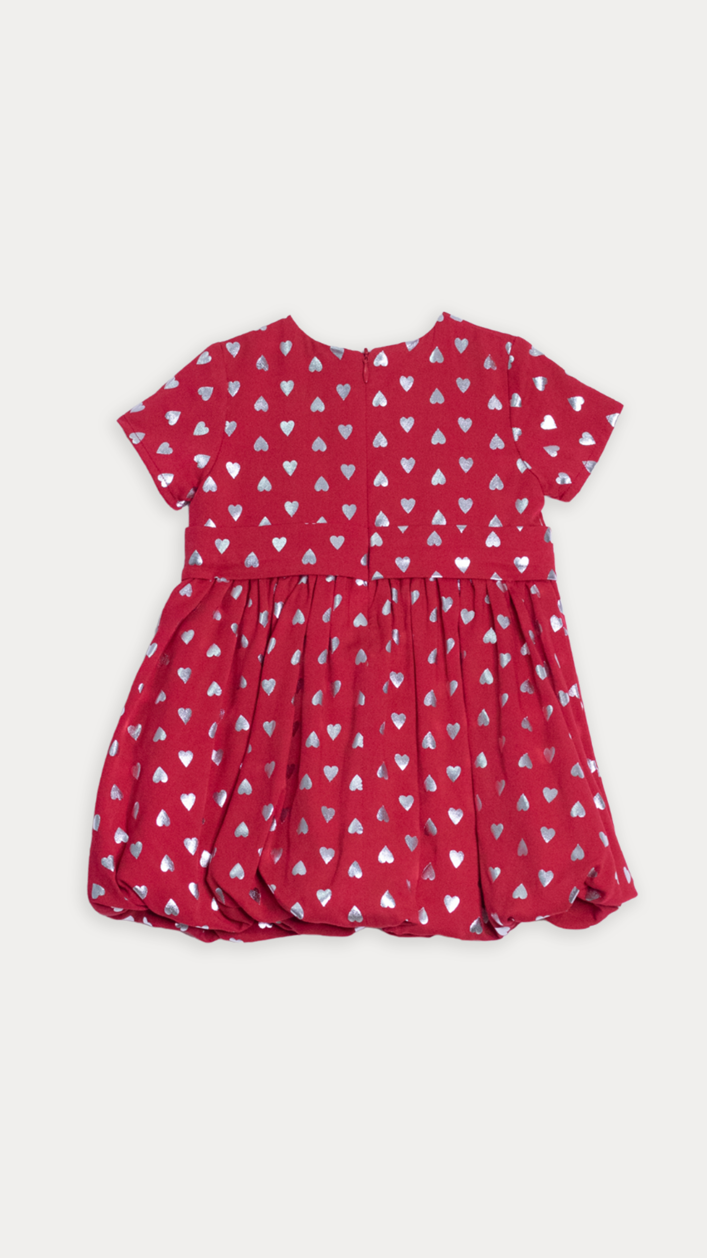 VESTIDO DE TELA LIGERA ROJA CON ESTAMPADO DE CORAZONES PLATEADOS METÁLICOS PARA BEBE NIÑA